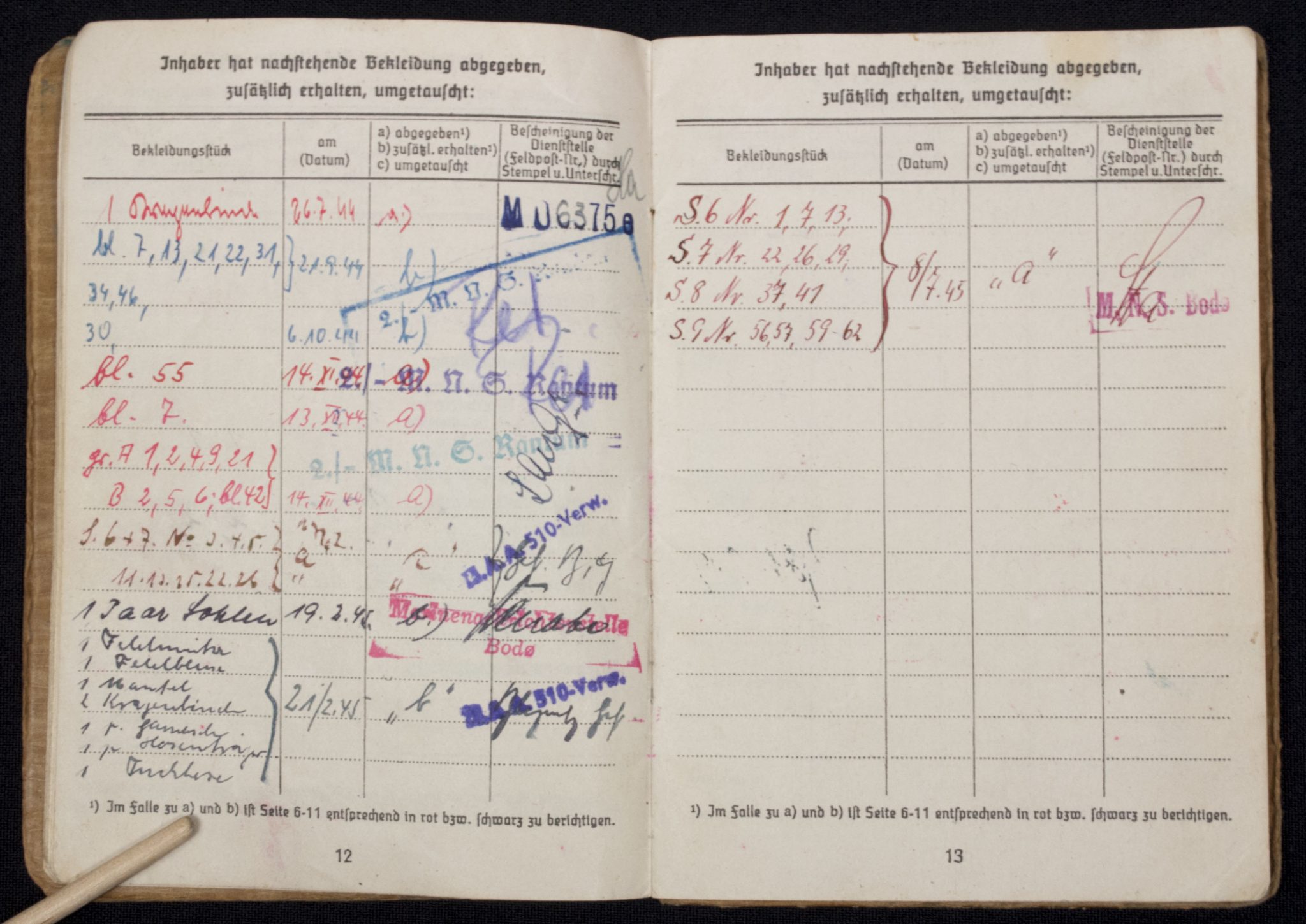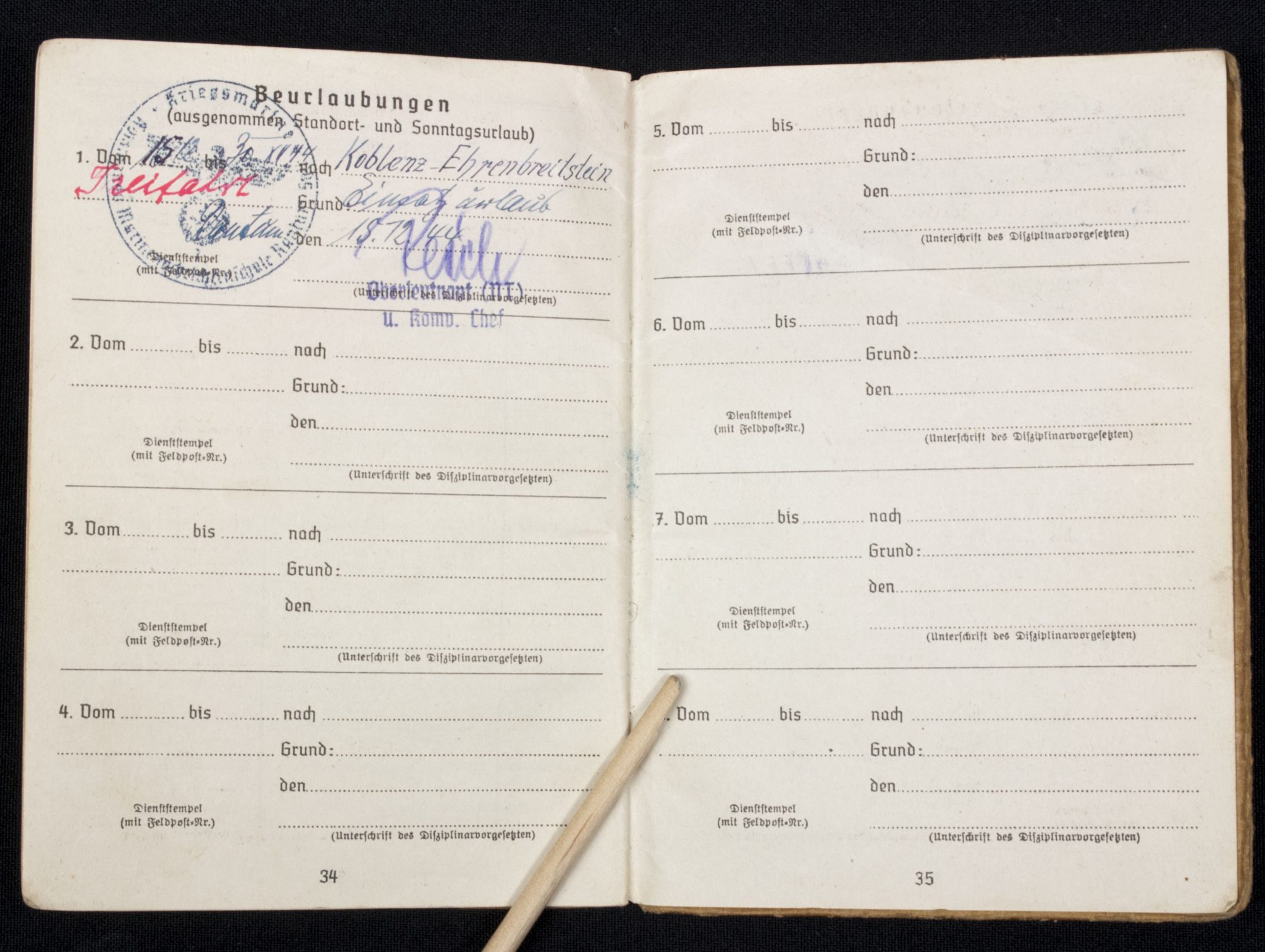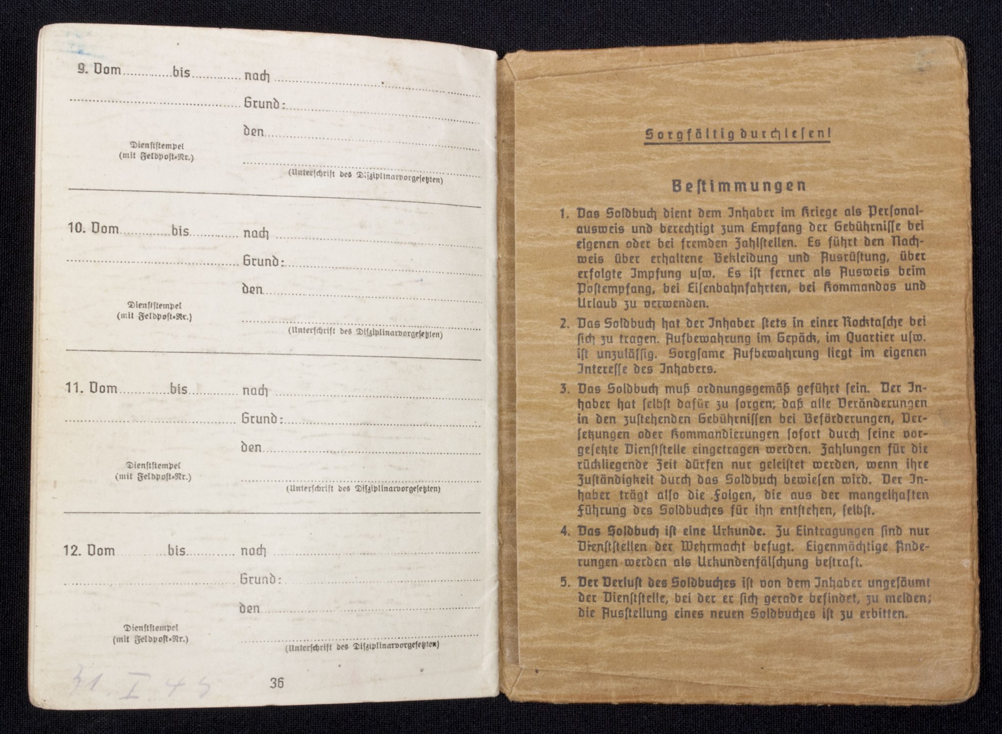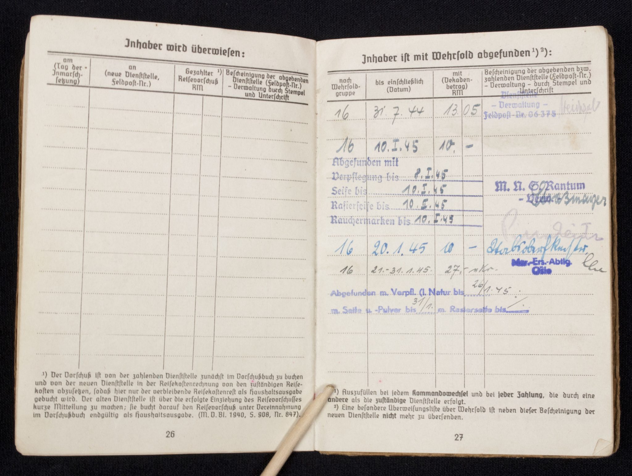 Kriegsmarine (KM) Soldbuch, opened 18 June 1944. Marine Funkstelle Bodo.