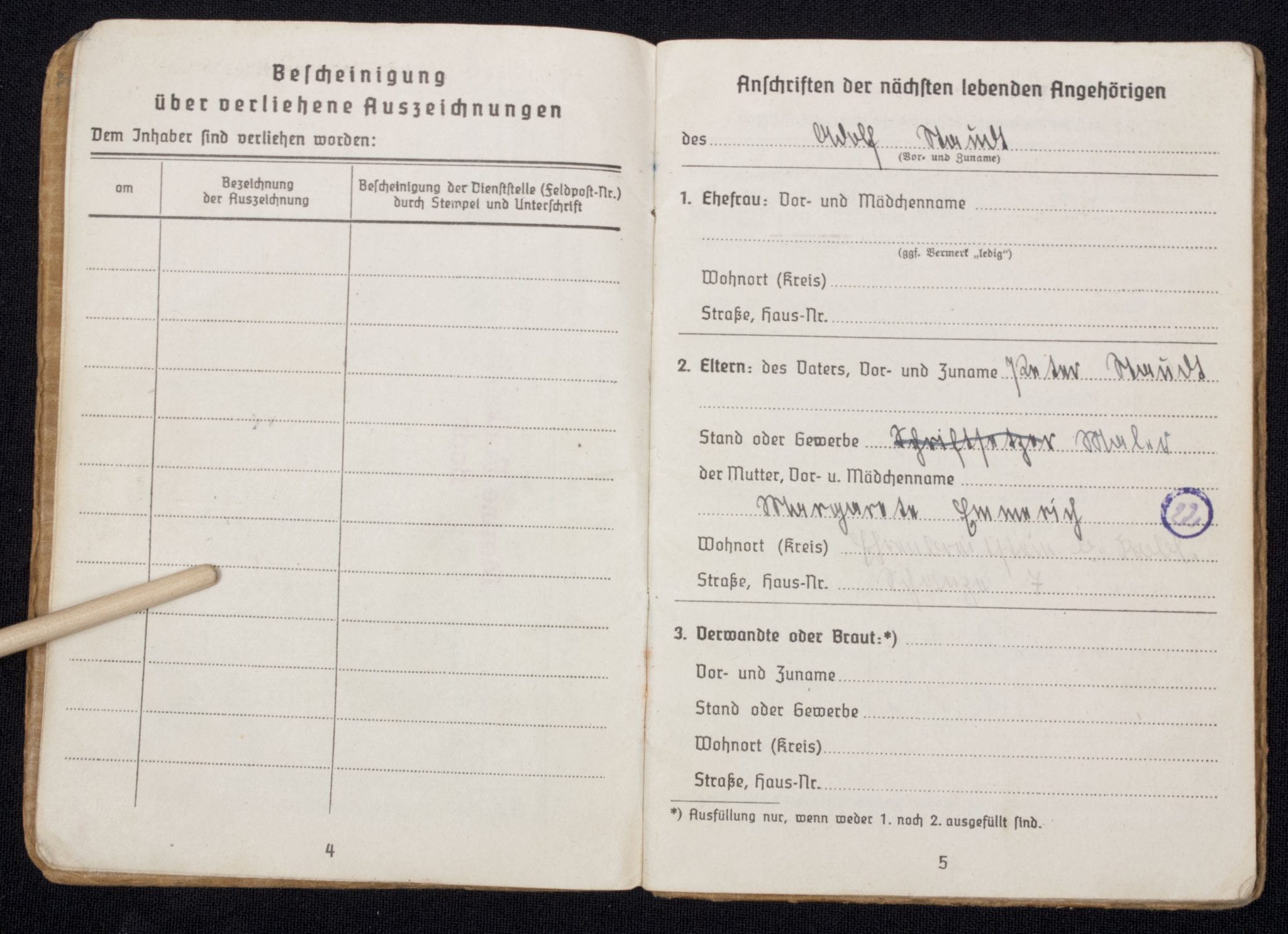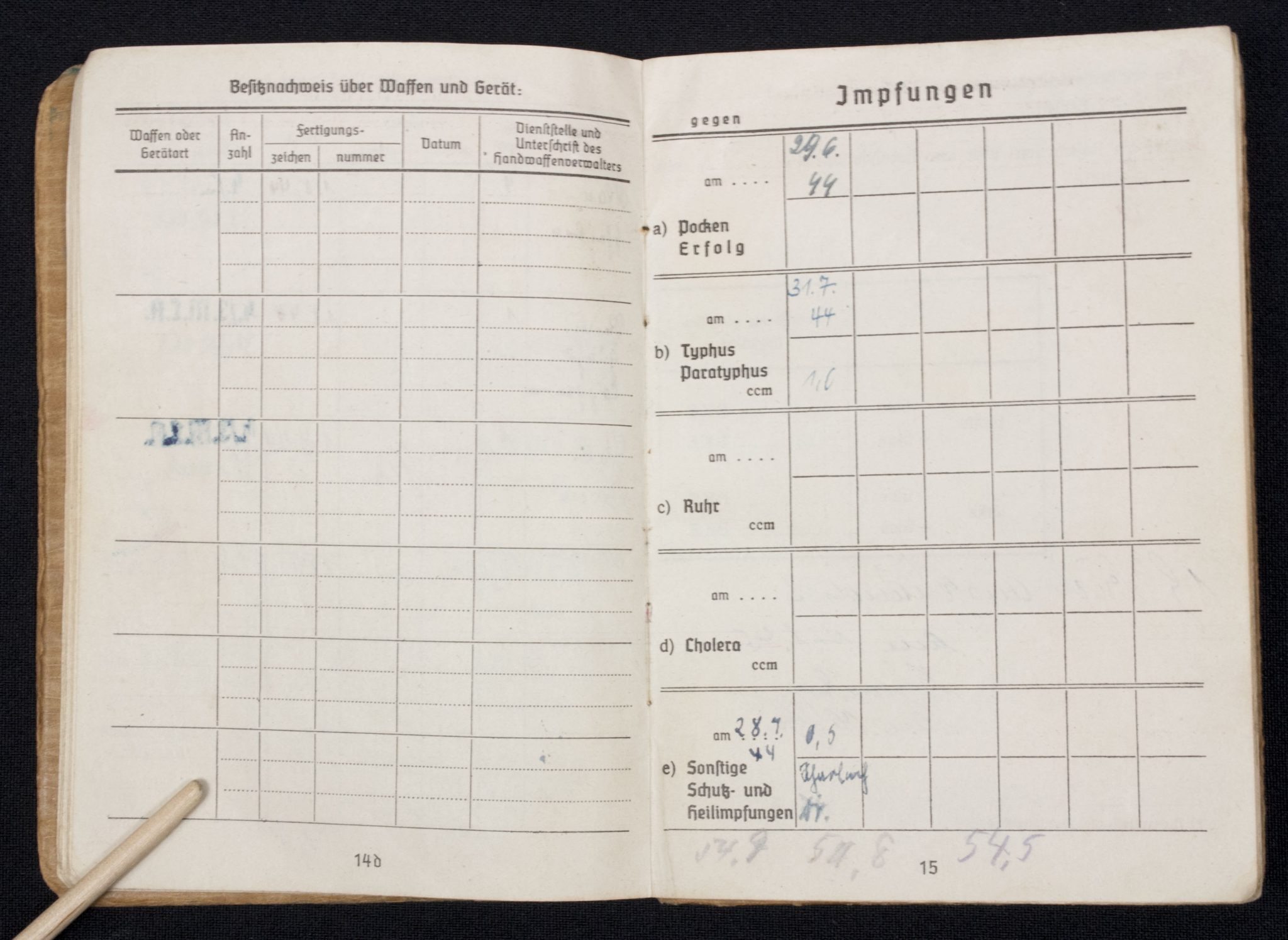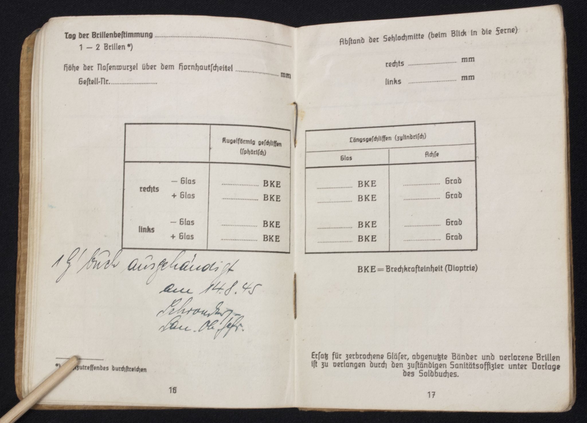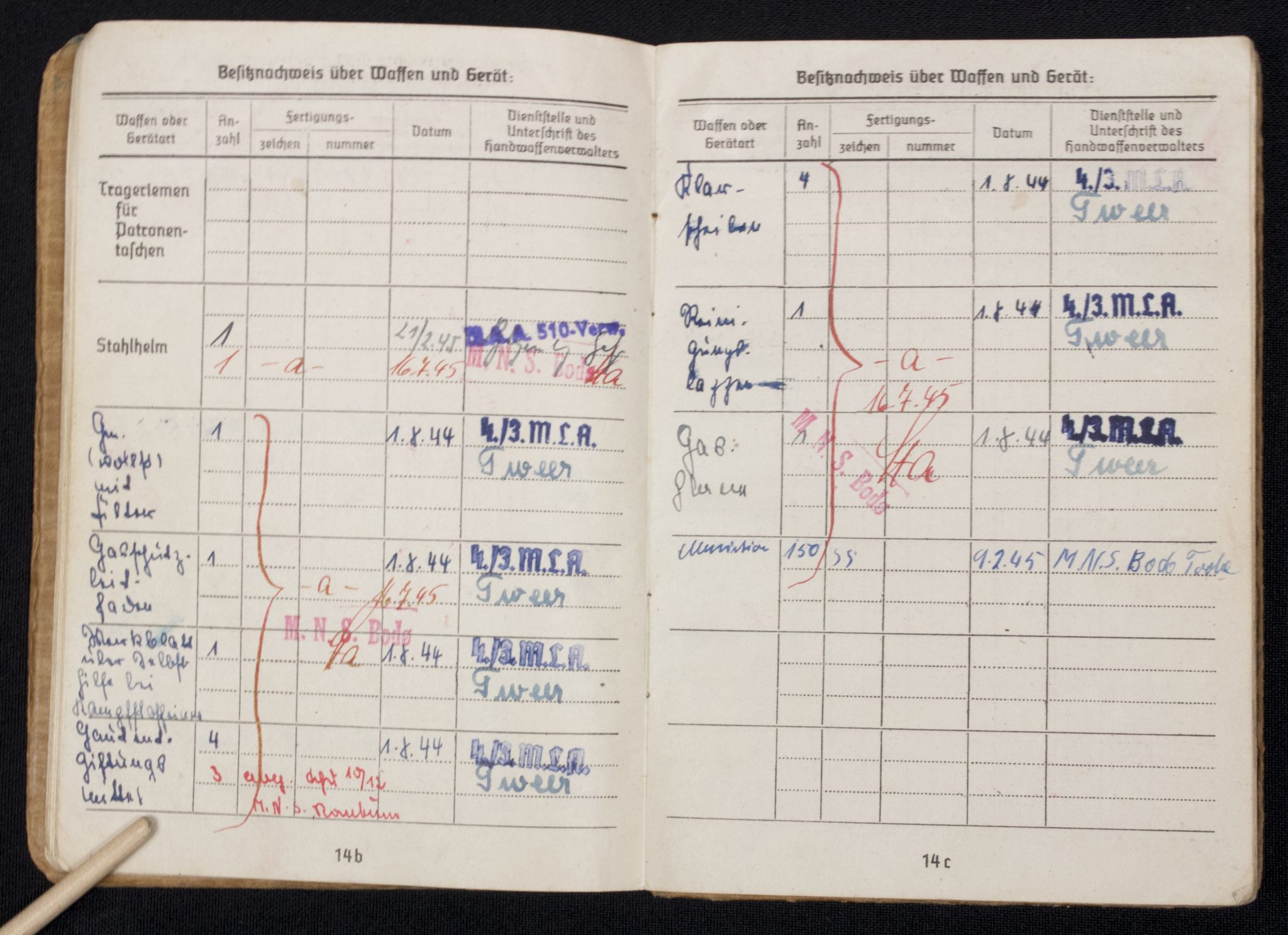 Kriegsmarine (KM) Soldbuch, opened 18 June 1944. Marine Funkstelle Bodo.