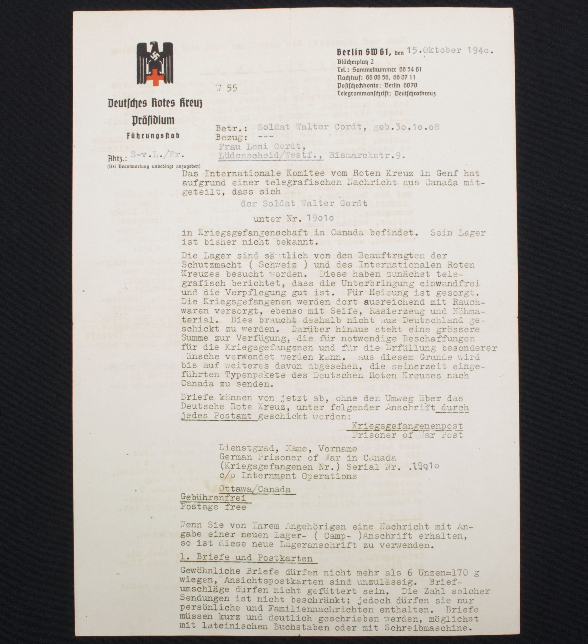 (Letter) Deutsches Rotes Kreuz Präsidium Führungsstab letter (1940).