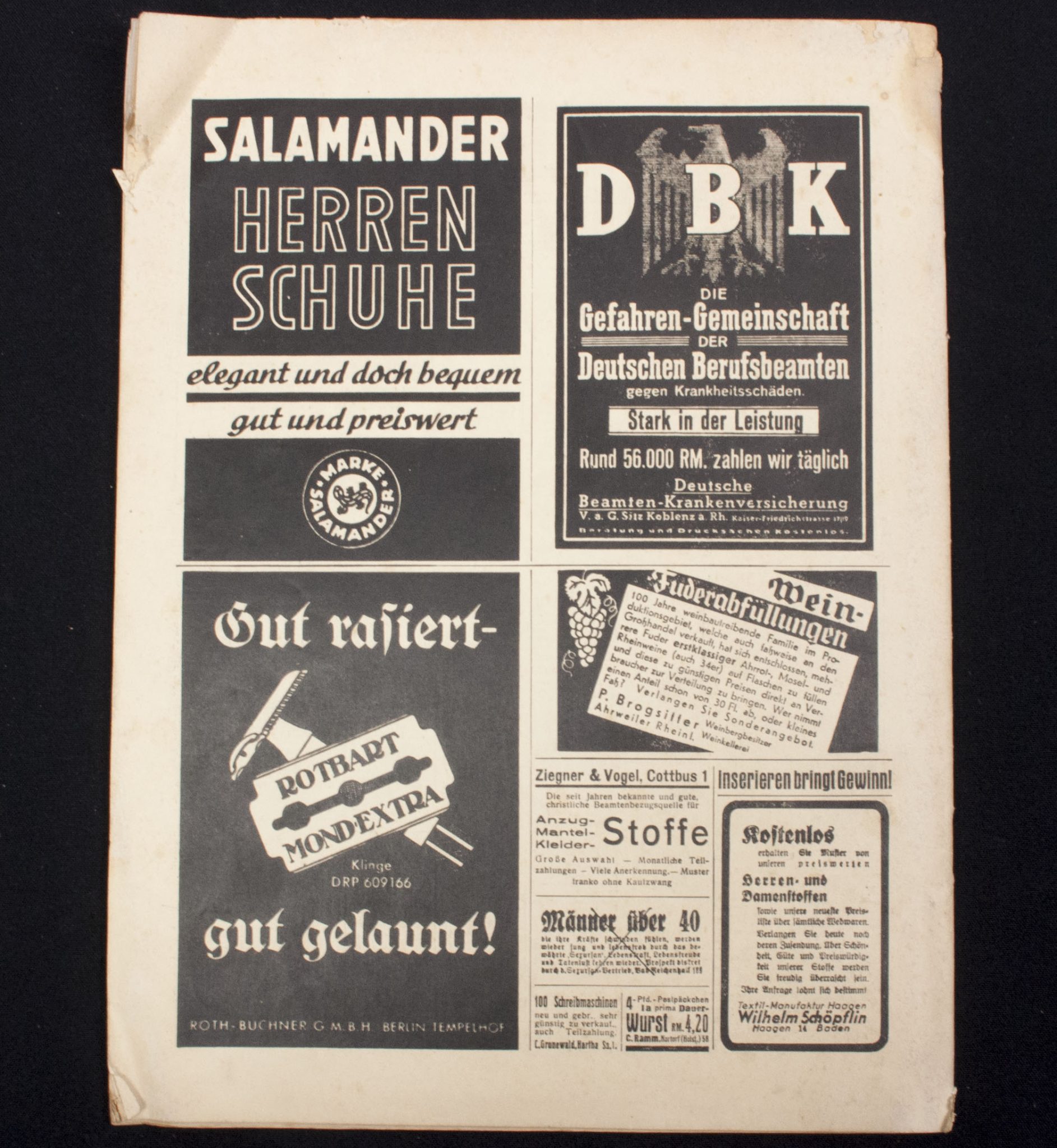 In used condition II. Discoloring, typical old used paper. One article cut out, priced accordingly.