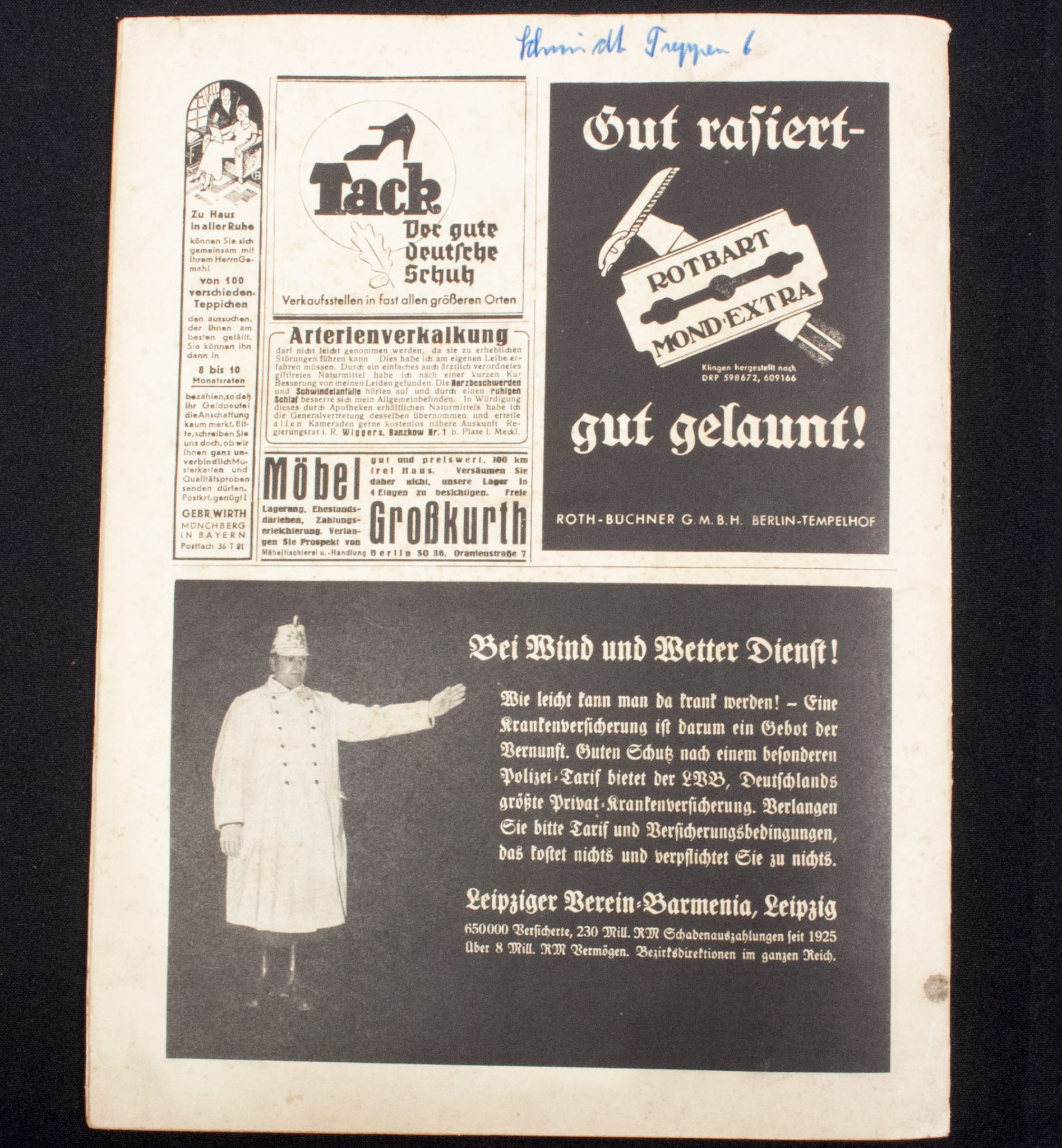 In used condition II. Discoloring, typical old used paper.