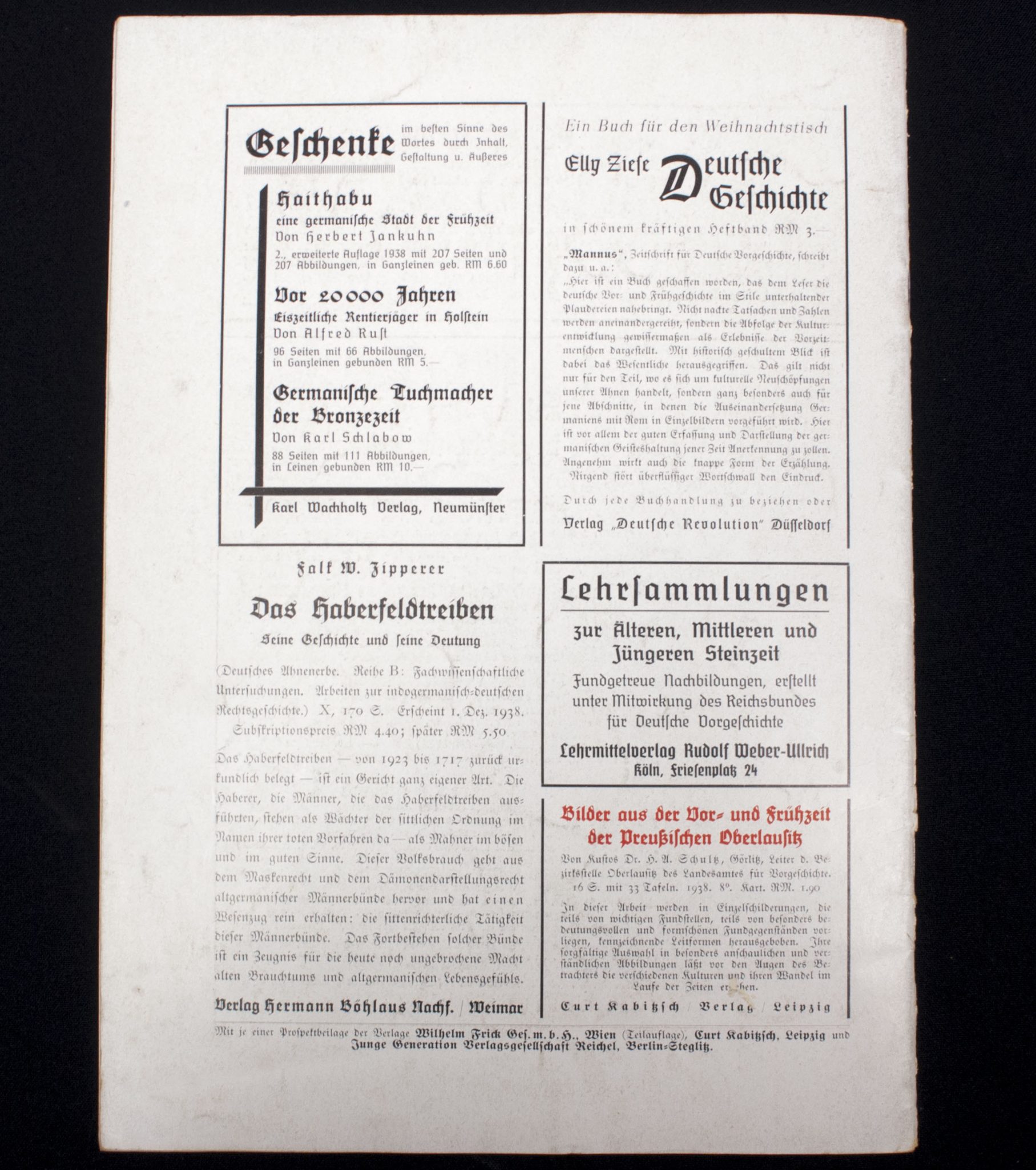 (Magazine) Germanen-Erbe – Monatshefte für deutsche Vorgeschichte 3. Jahrgang heft 11 november 1938.