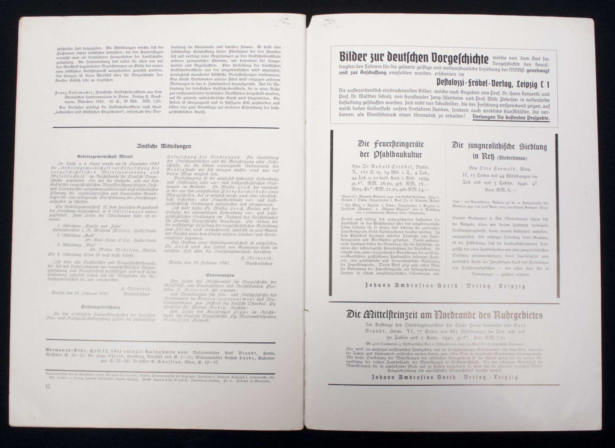 (Magazine) Germanen-Erbe – Monatshefte für deutsche Vorgeschichte 6. Jahrgang heft 1/2 Februar 1941.