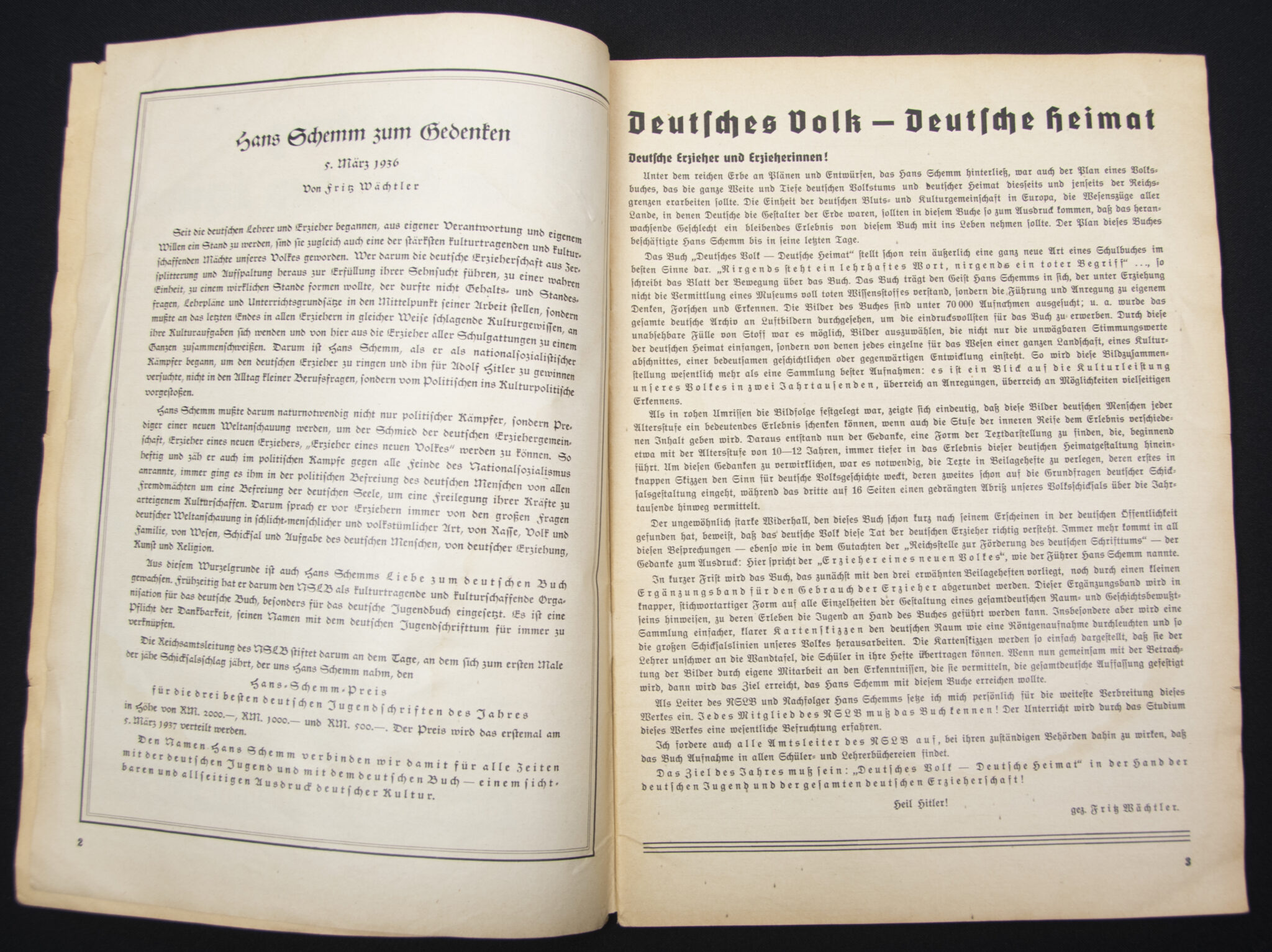 (Magazine) Reichszeitung der deutschen Erzieher – Nationalsozialistische Lehrerzeitung Nr.3, Verlag Bayreuth, (1936).