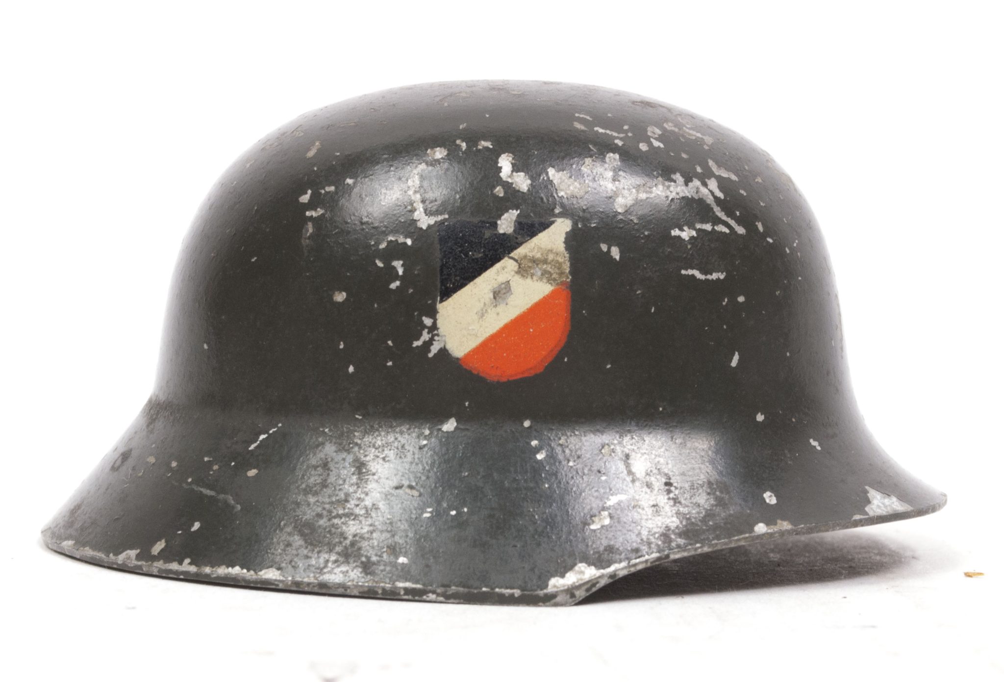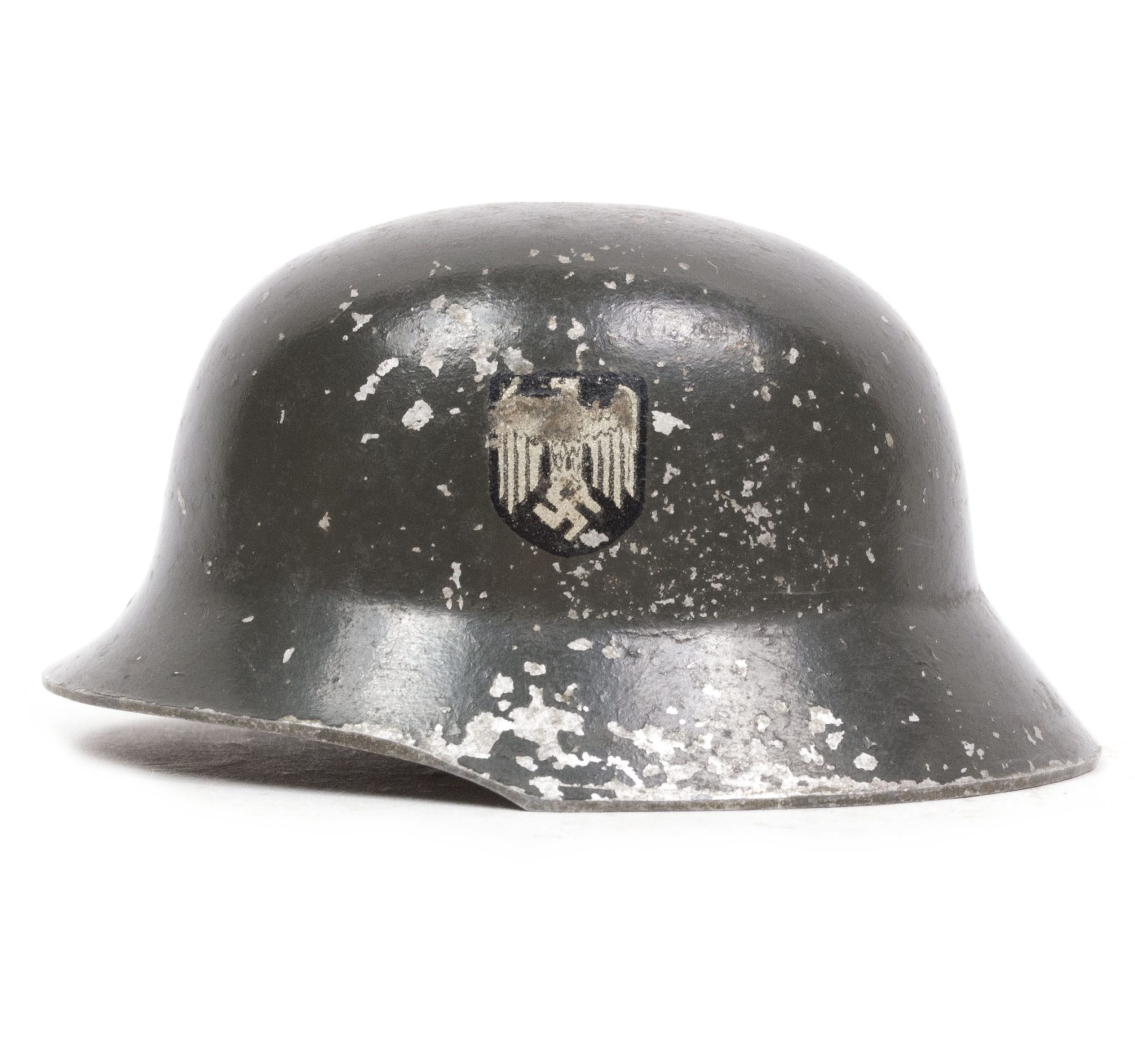 This is a miniature Heer double decal Ferntrauungshelm Weddinghelmet. These were used when the soldier was at the front and his future wife was at home. In his absence a small helmet was during the wedding ceremony placed near the woman and she married him (the helmet).