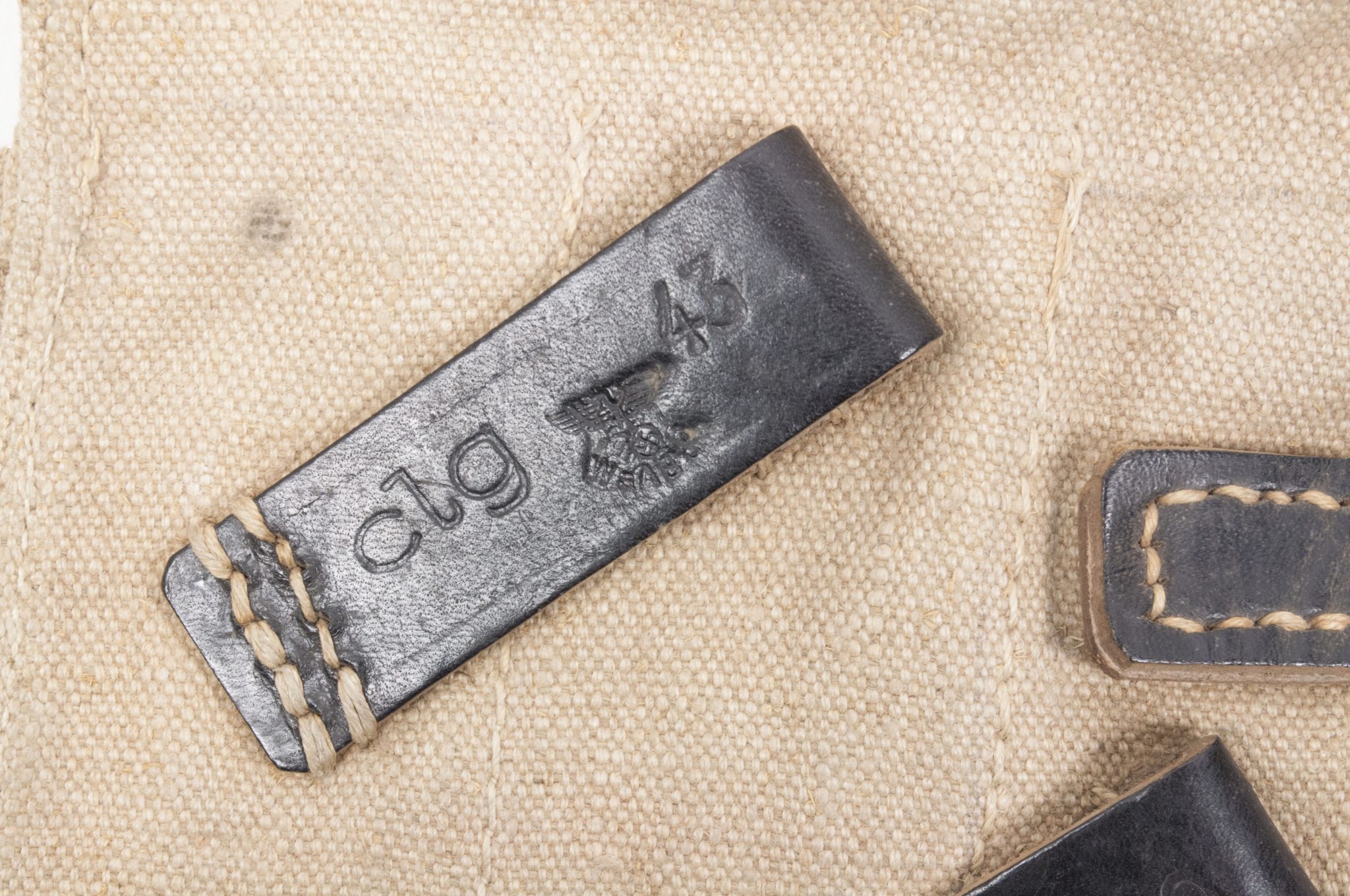 On the back maker marked with: “CLG 43”, which stands for maker Ernst Melzig Lederwaren Liegnitz.