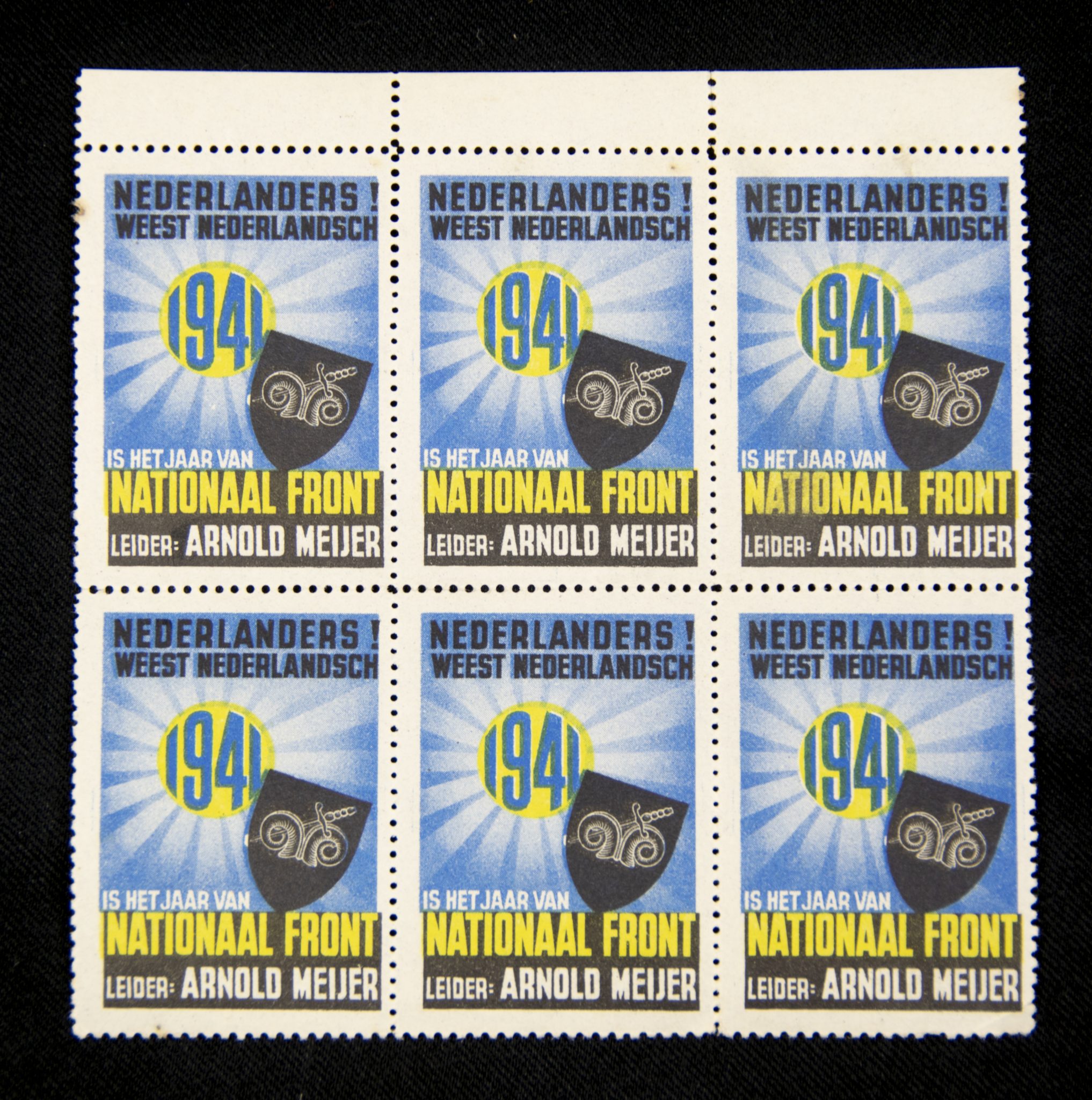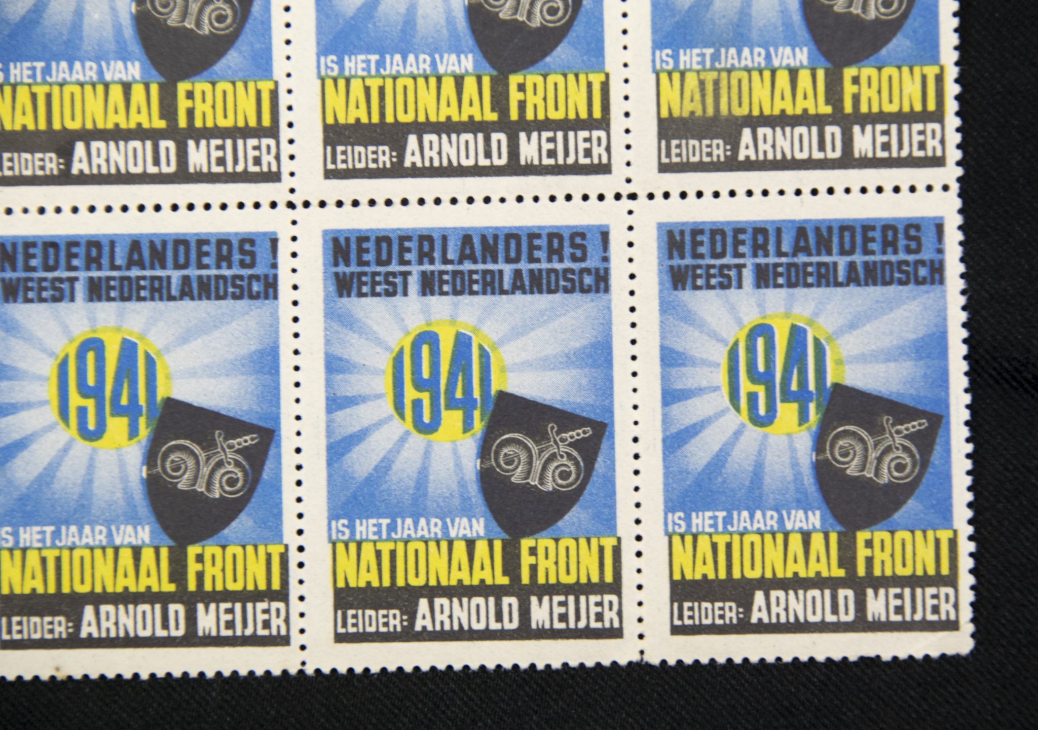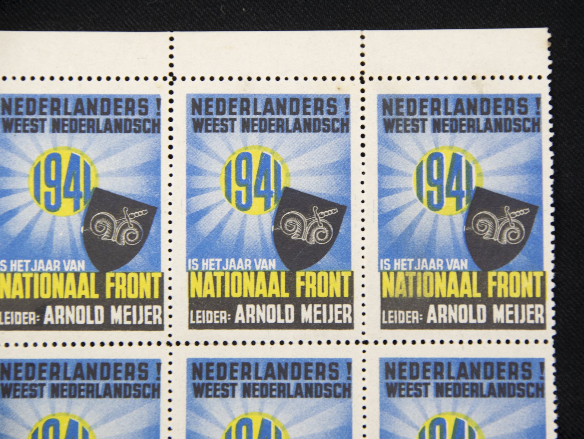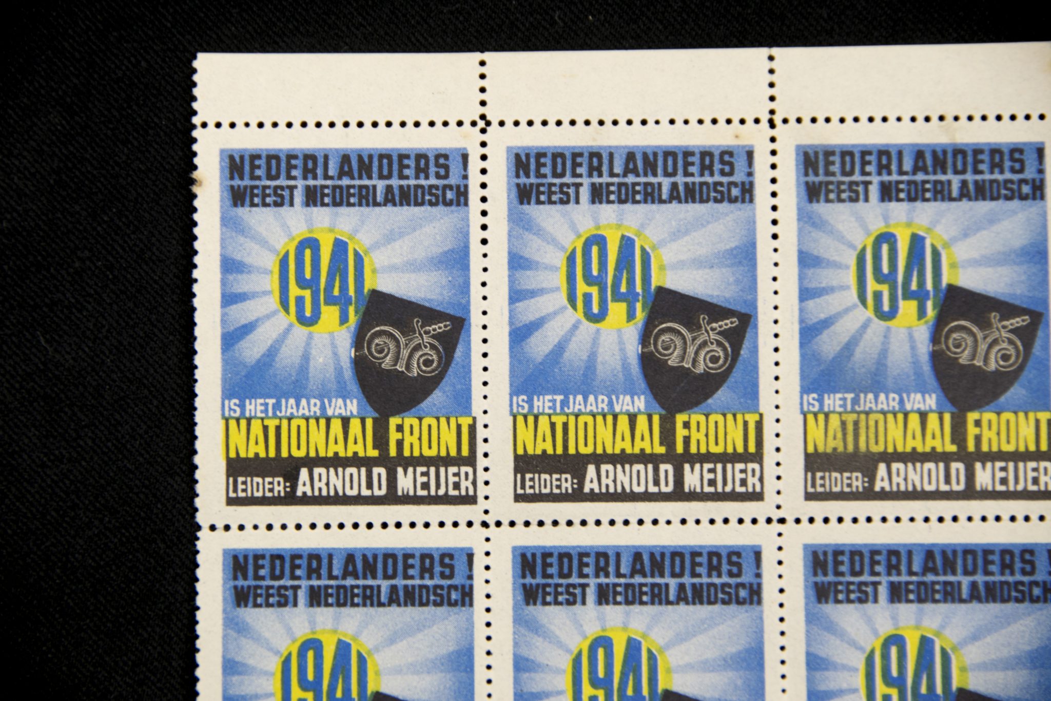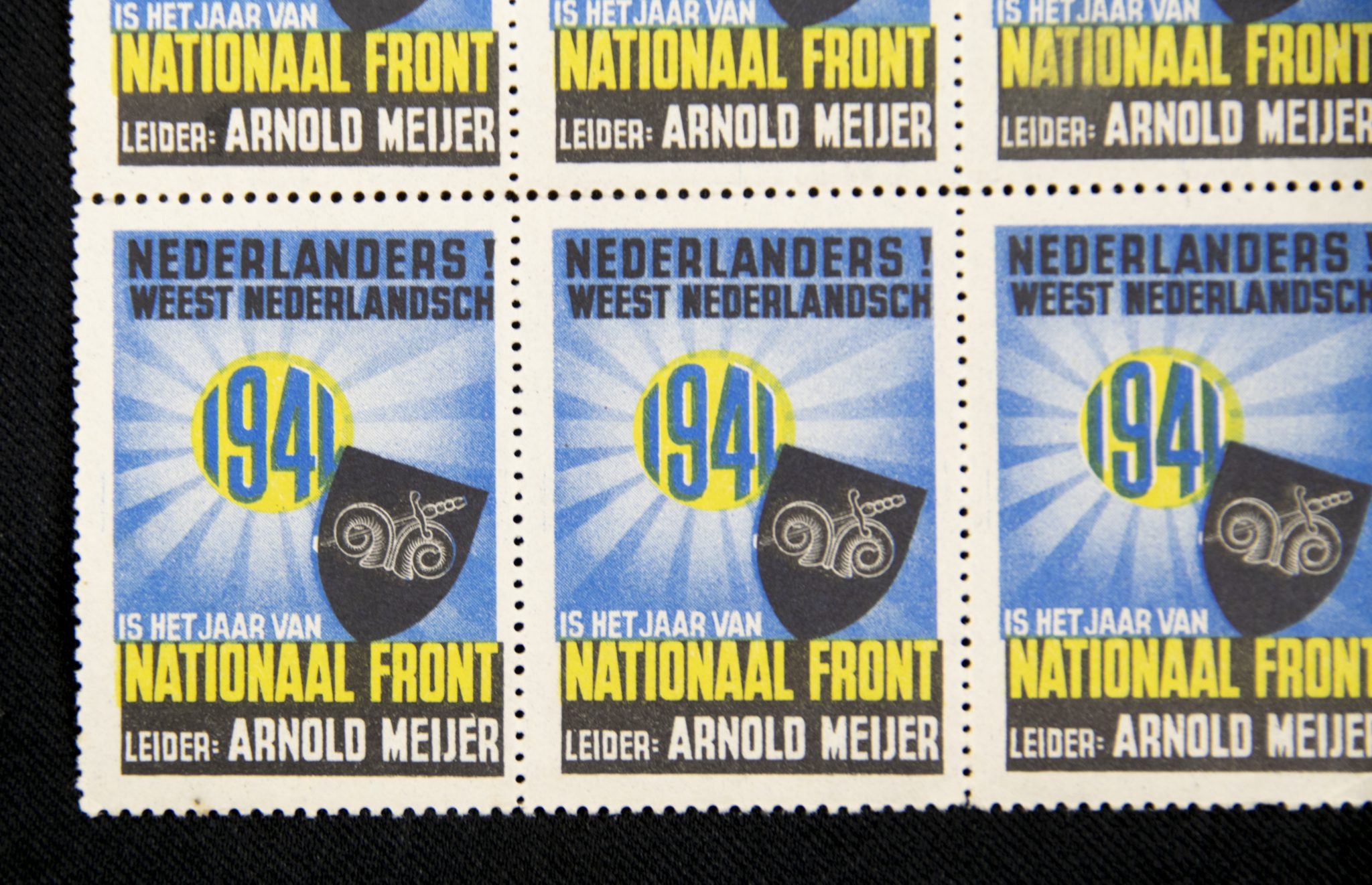 Nationaal Front – Sheet of size stamps of Arnold Meijers wartime succesor of “Zwart Front” (1941).
