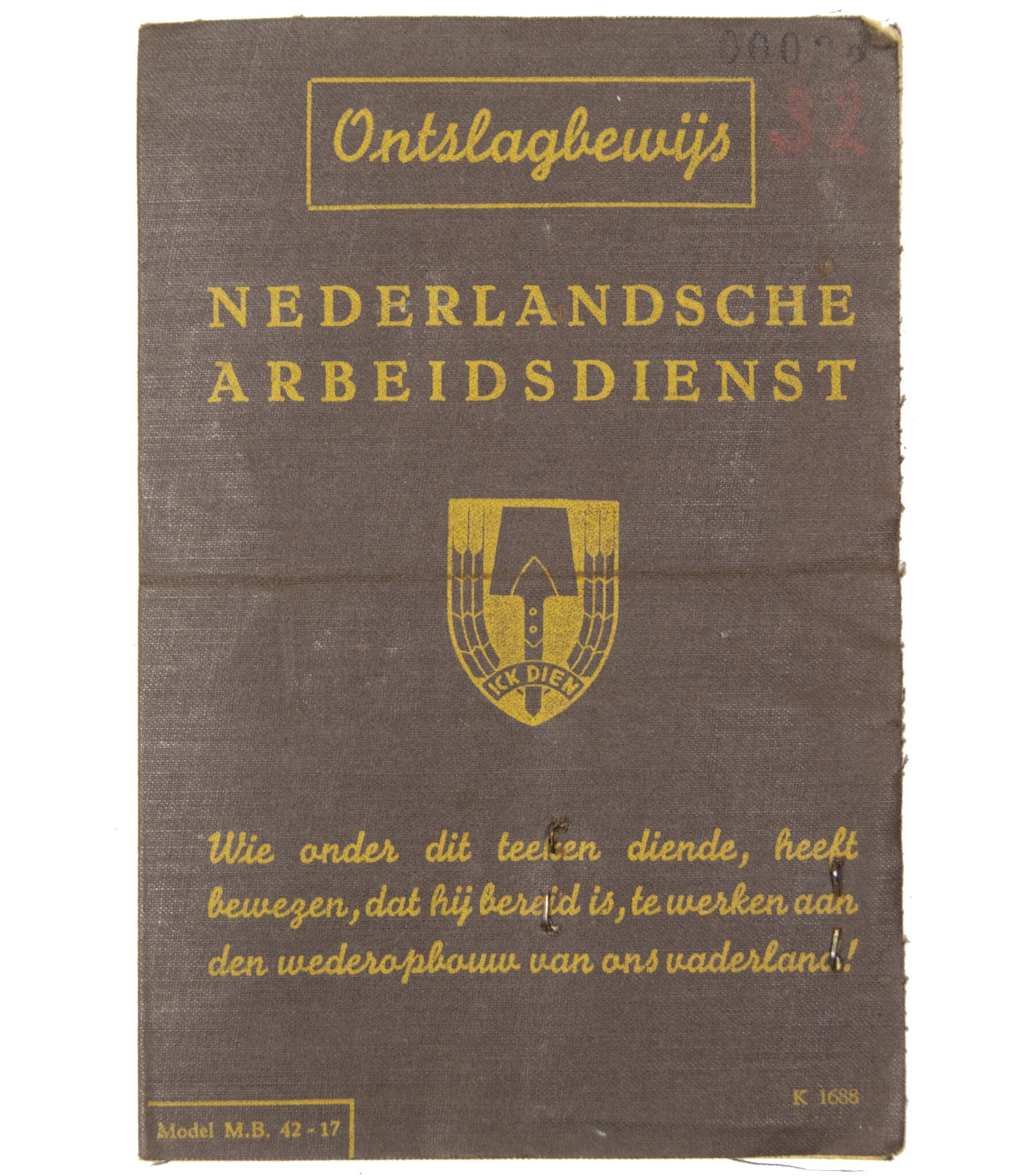 Nederlandsche Arbeidsdienst (NAD) Ontslagbewijs (1943).