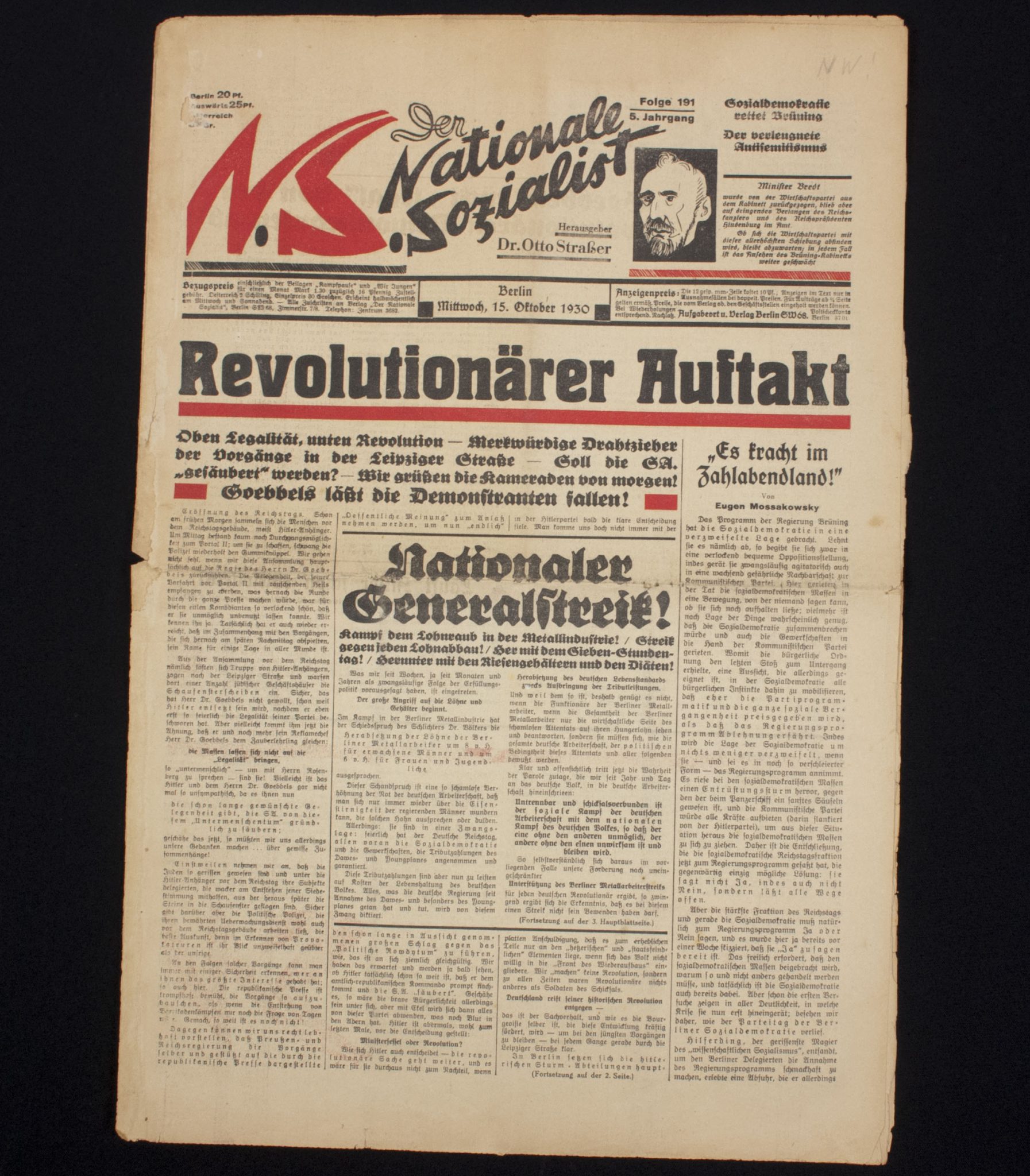 (Newspaper) Der Nationale Sozialist – Berlin, 15. Oktober 1930 – RARE!