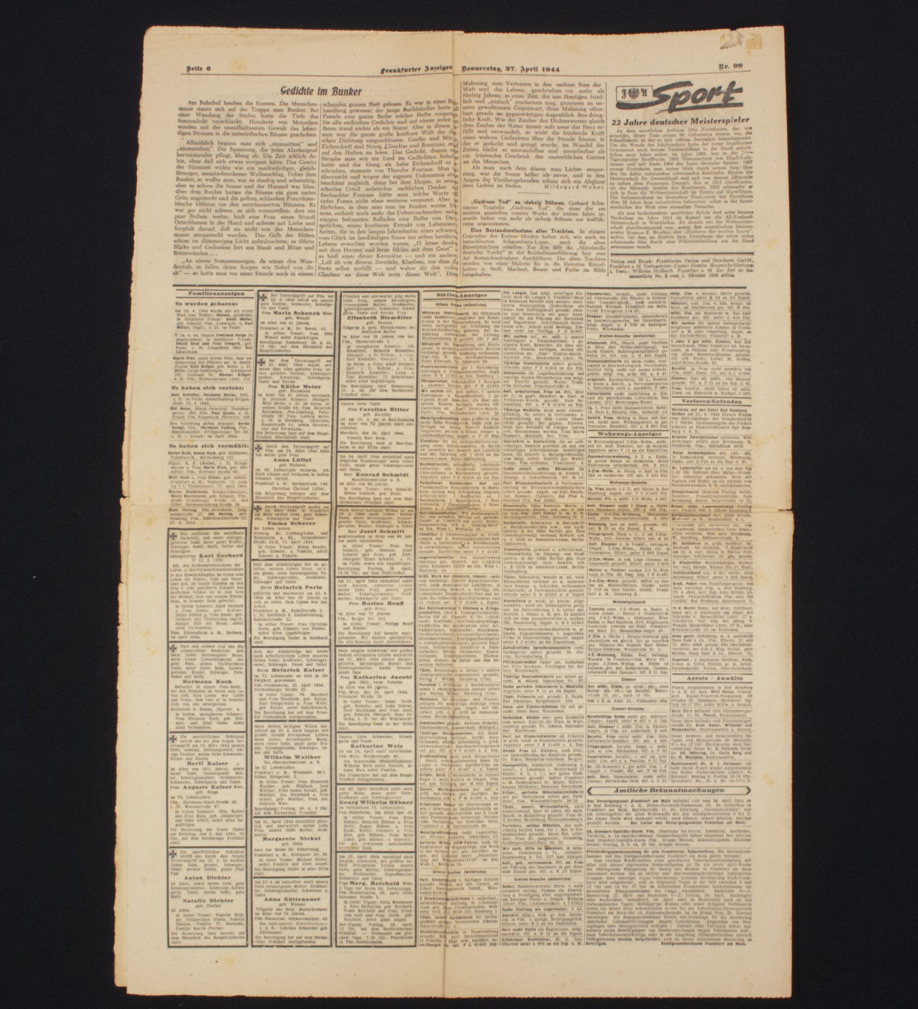 (Newspaper) Frankfurter Anzeiger 2 April 1944.