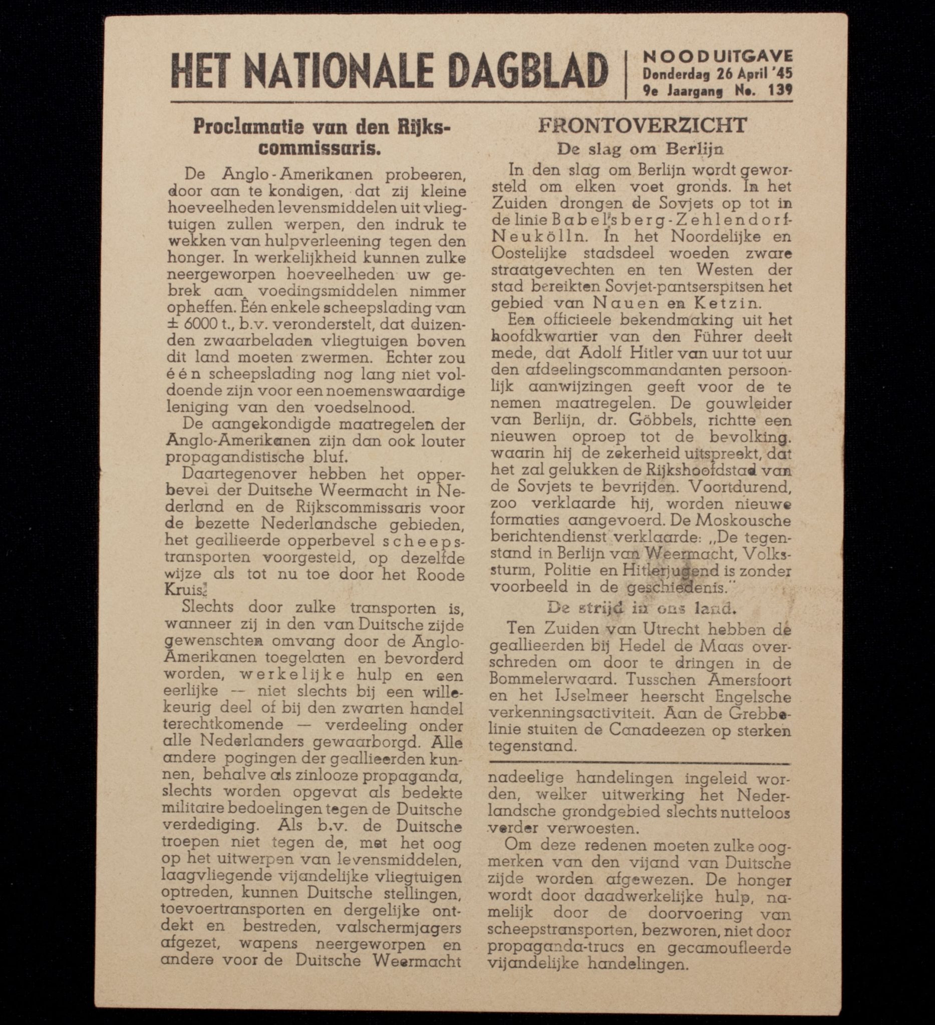 (Newspaper) Het Nationale Dagblad NOODUITGAVE 26 apil 1945.