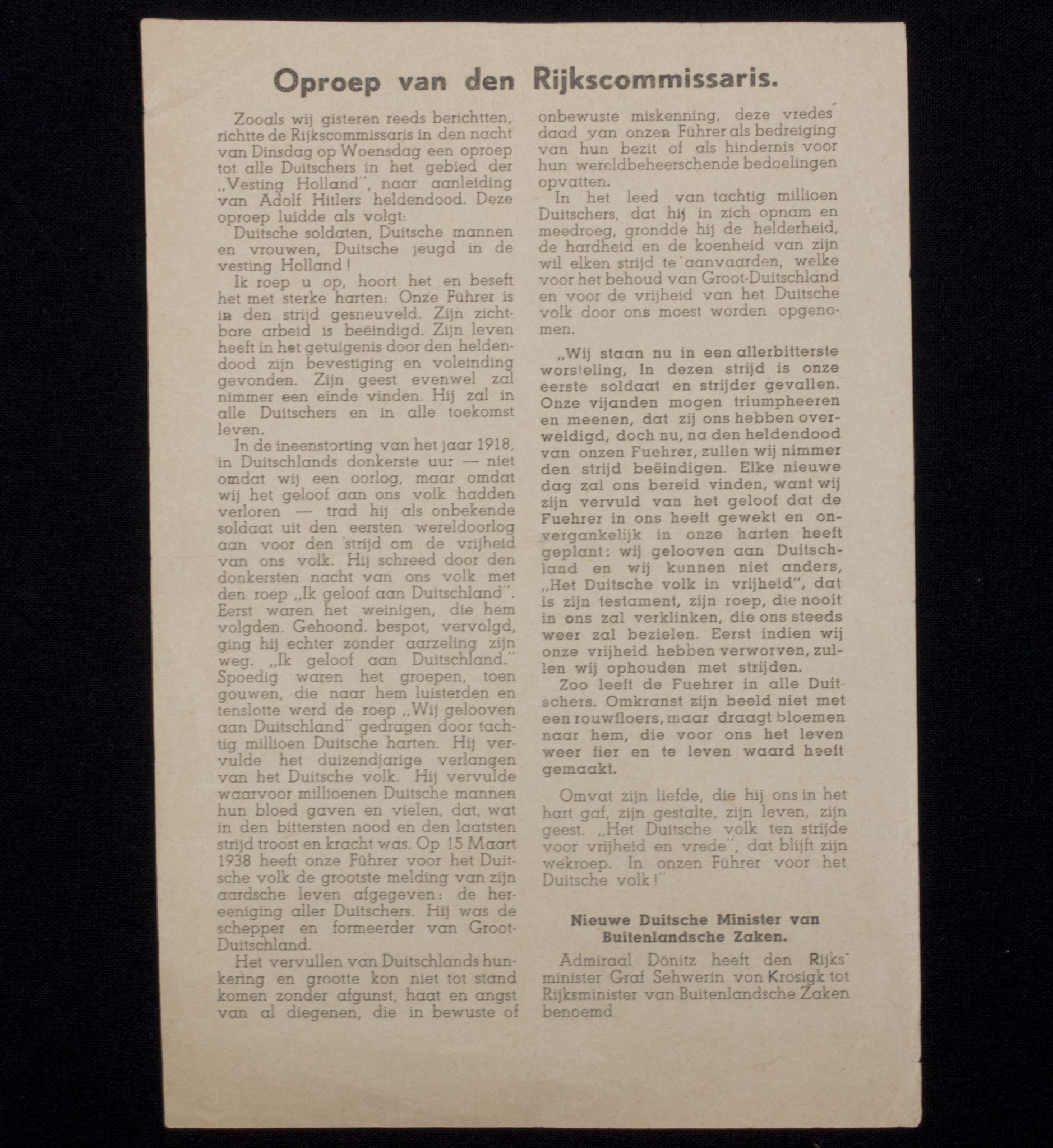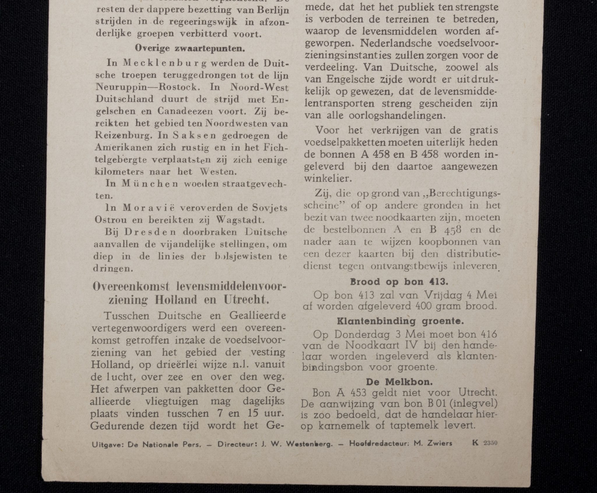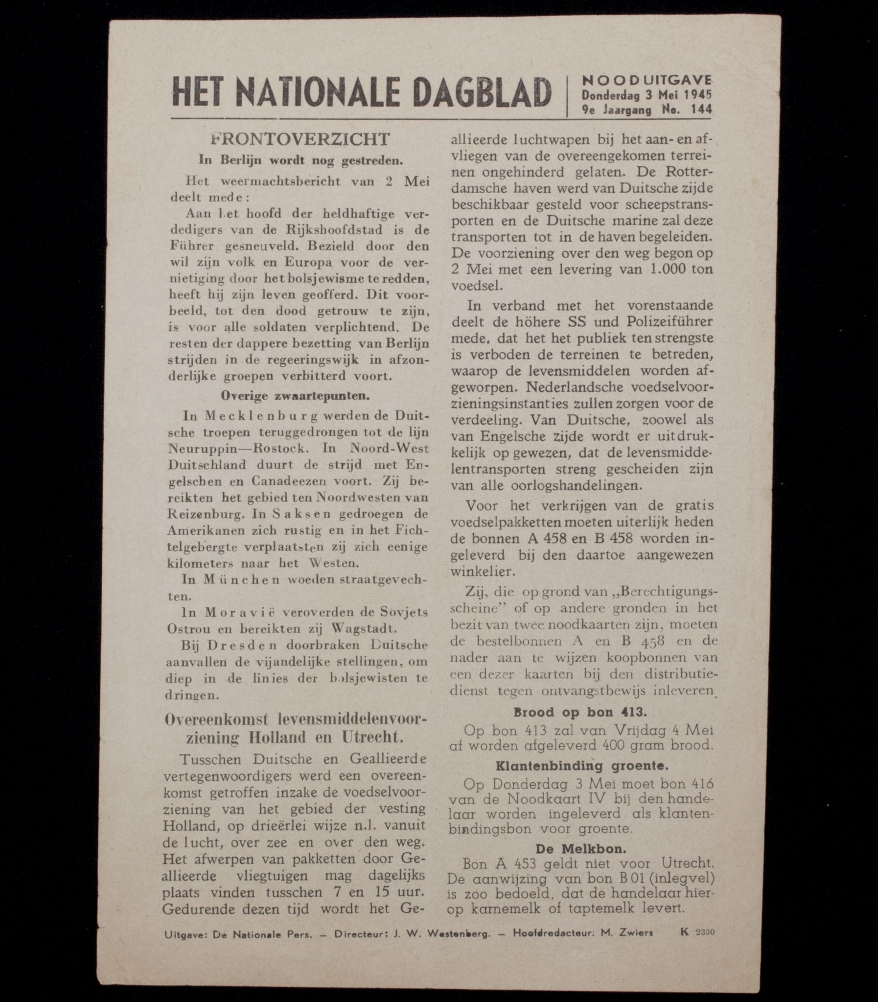 (Newspaper) Het Nationale Dagblad NOODUITGAVE 3 Mei 1945.