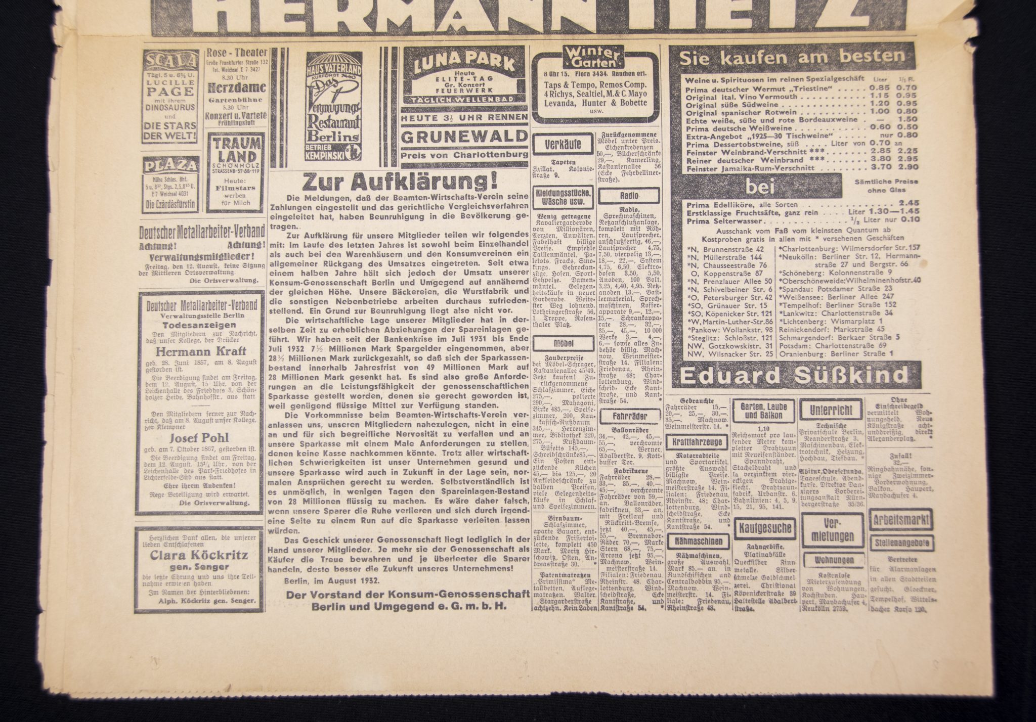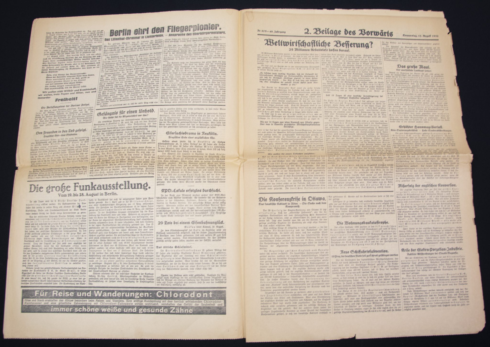 (Newspaper) Vorwärts Berliner Volksblatt – 11. August 1932.