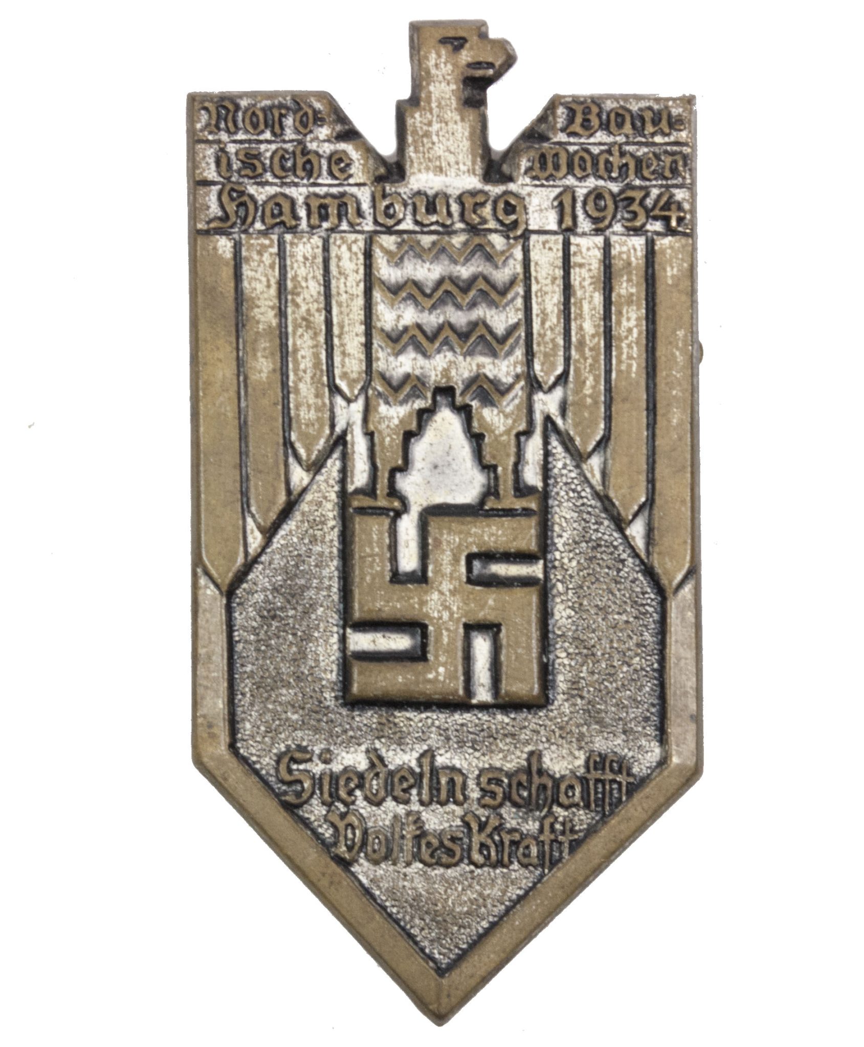 Category: WW2 German Badges and Memberpins Tag: Nordische Bauwochen Hamburg 1934 Siedeln schaft Volkeskraft