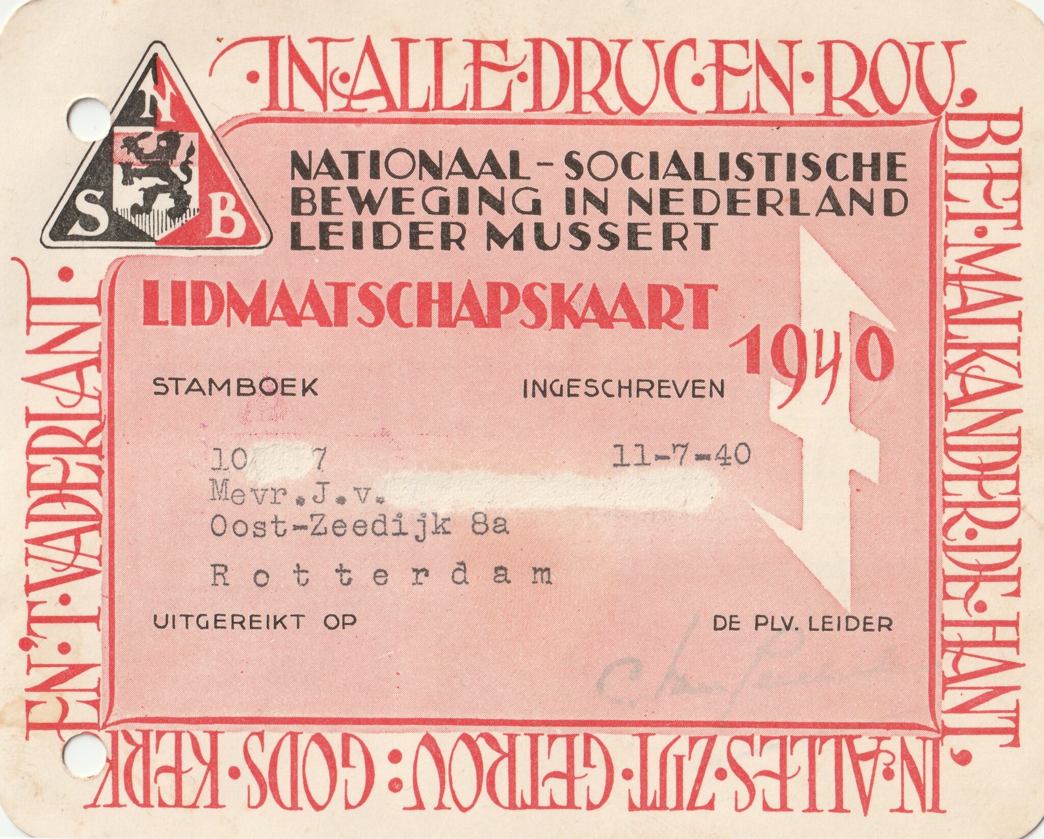 NSB Lidmaatschapskaart / NSB Membercard 1940.