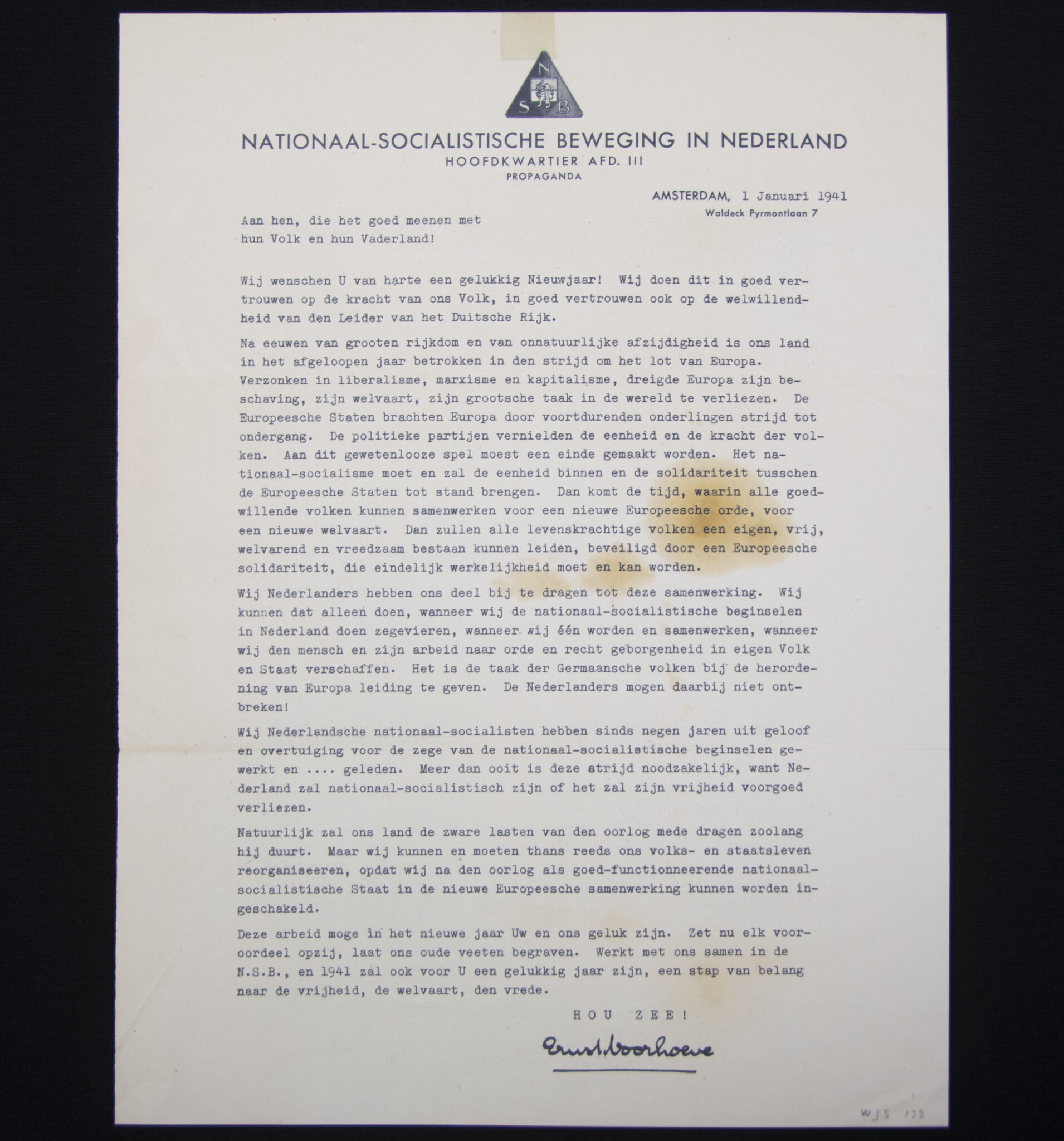 (NSB) Propaganda Letter by NSB speaker Ernst Voorhoeve (1941).