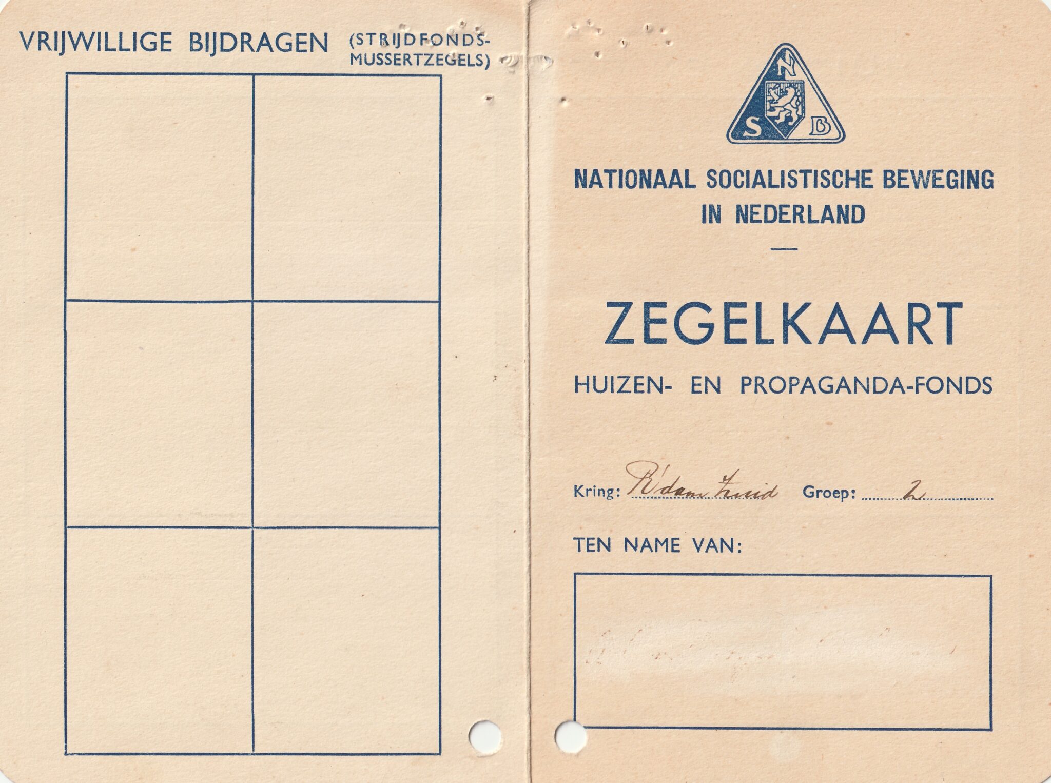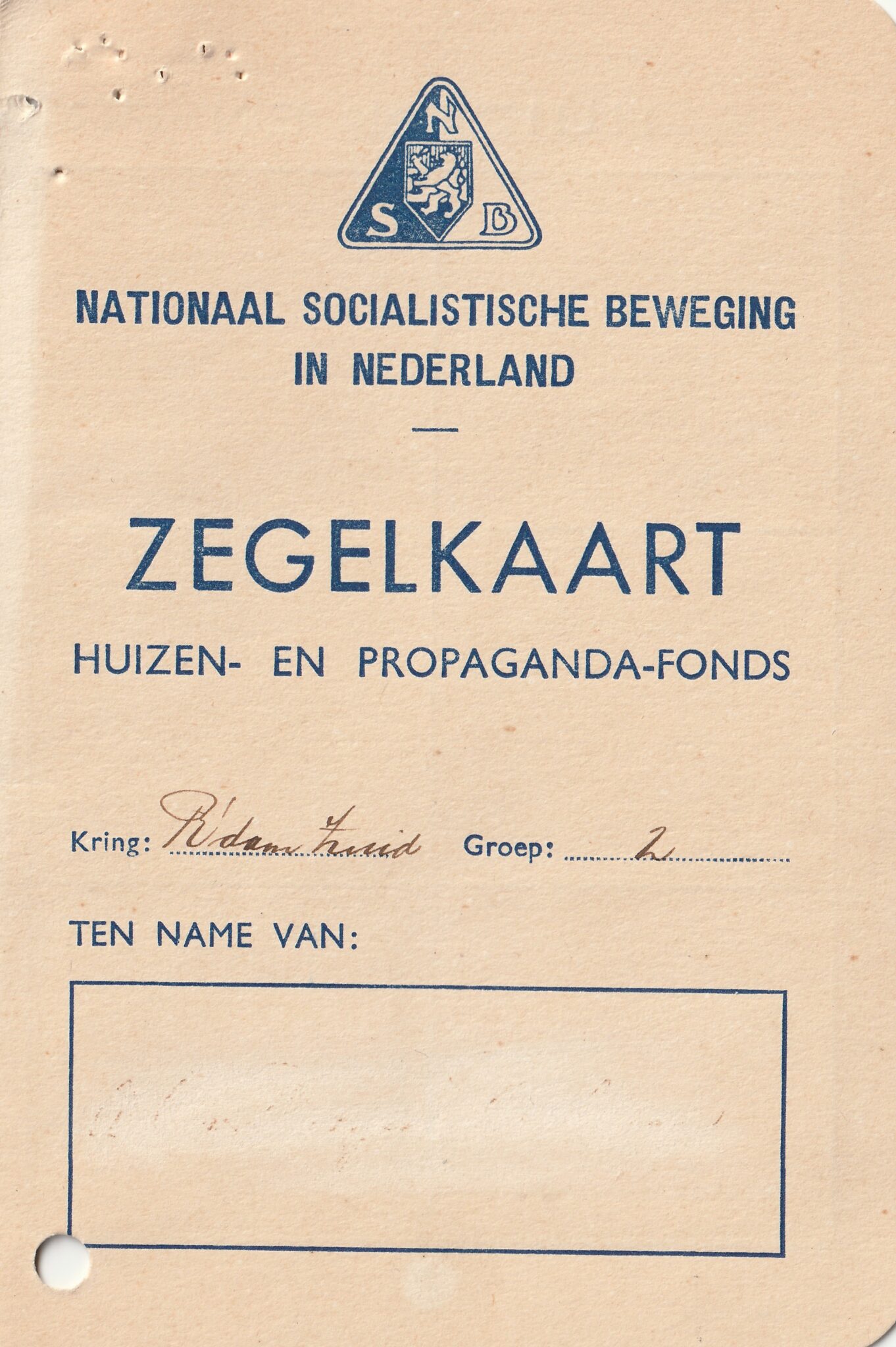 NSB Zegelkaart Huizen- en Propaganda-Fonds (Kring Rotterdam-Zuid)..