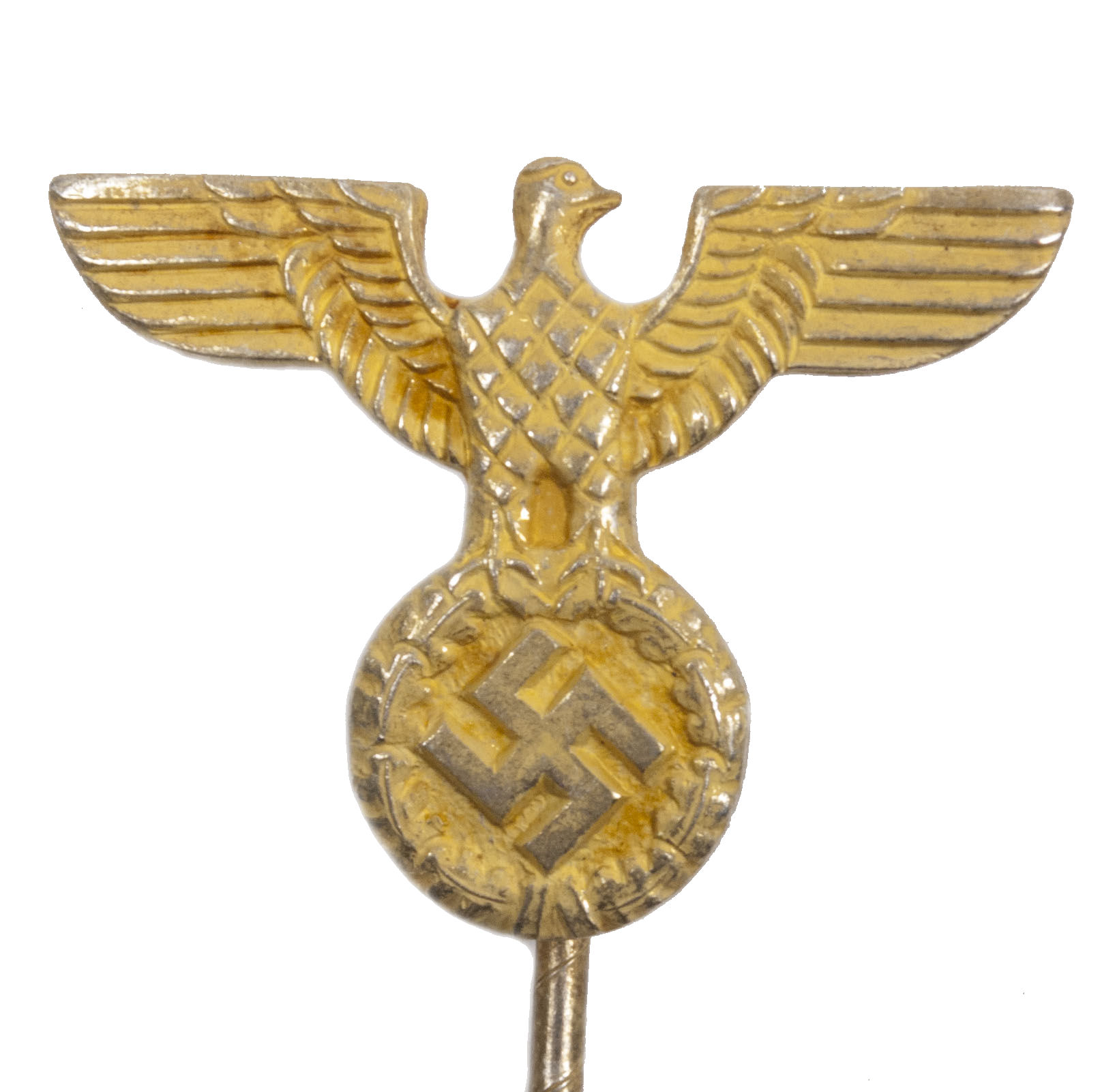 You are here: Home / WW2 German Badges and Memberpins / NSDAP political eagle stickpin gold color