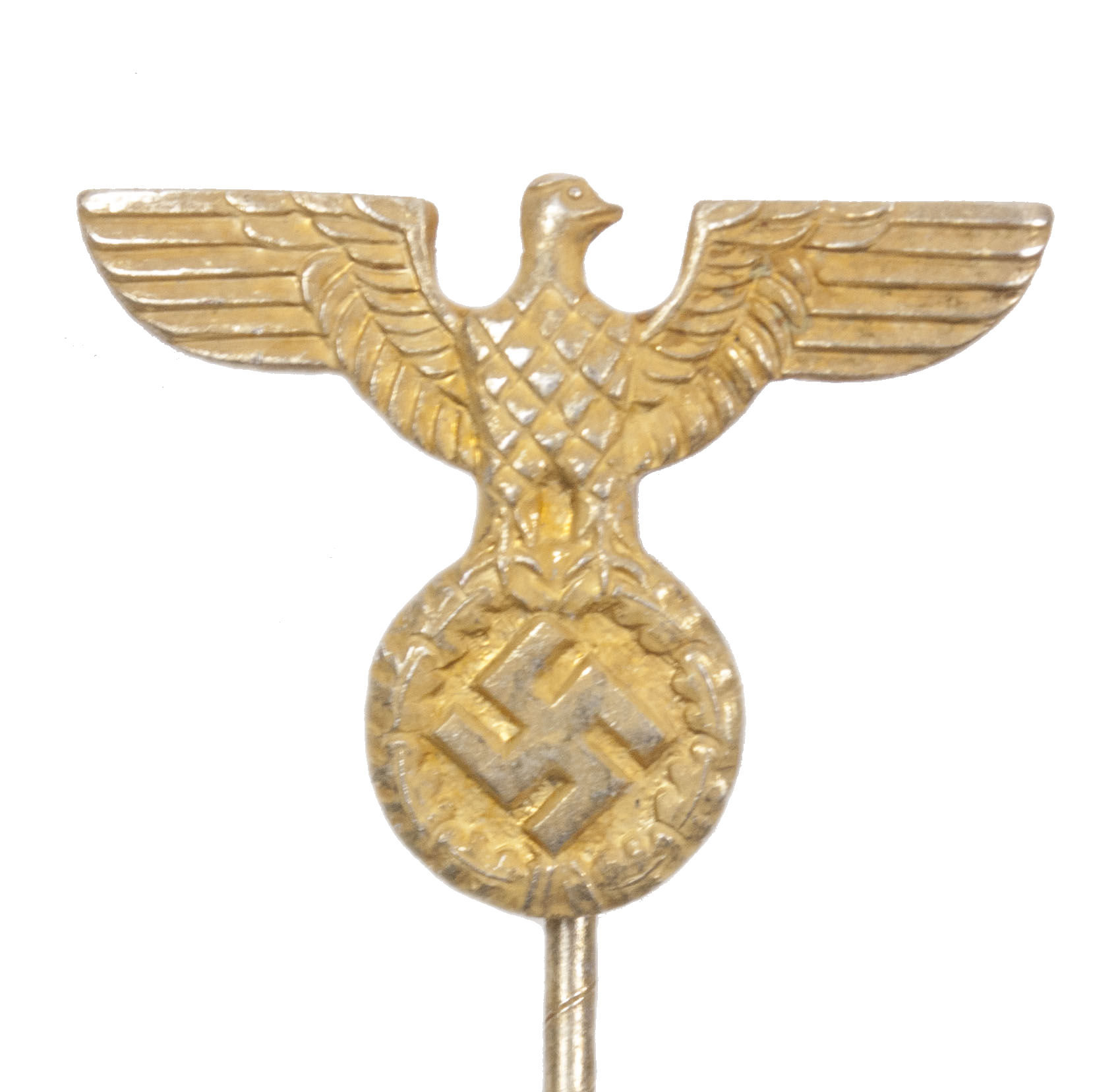 You are here: Home / WW2 German Badges and Memberpins / NSDAP political eagle stickpin gold color