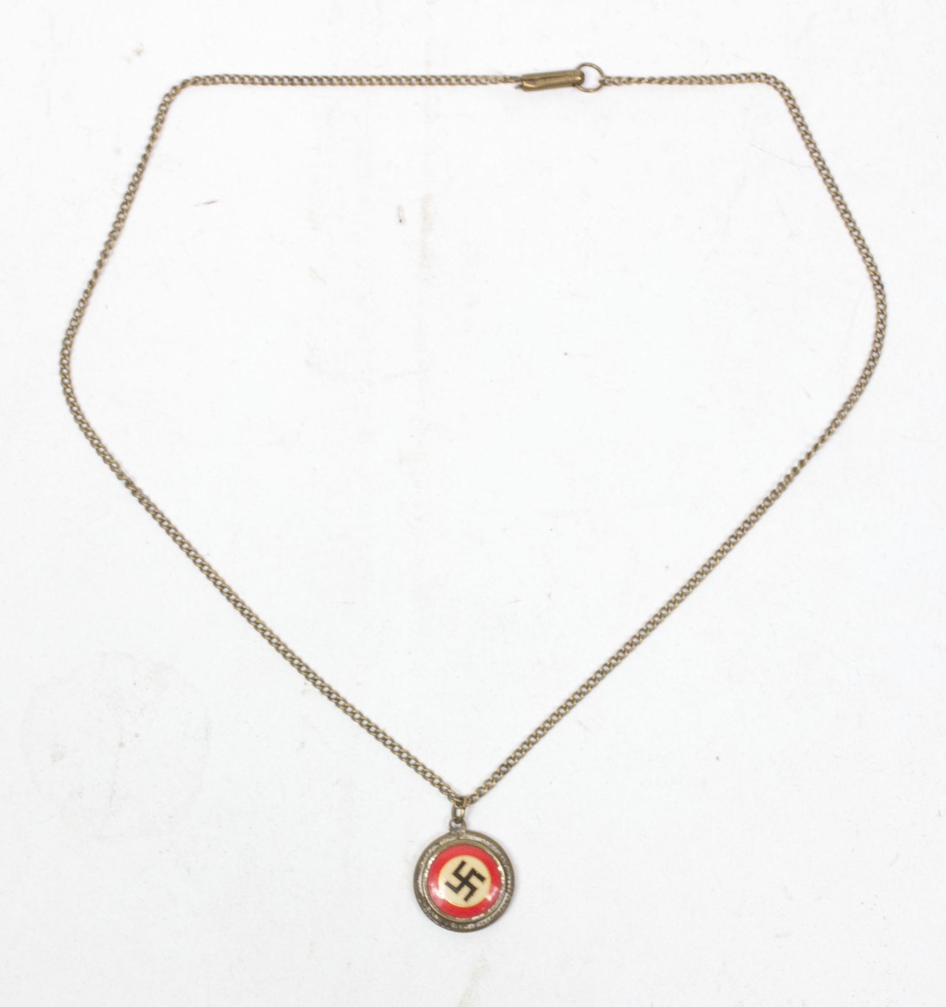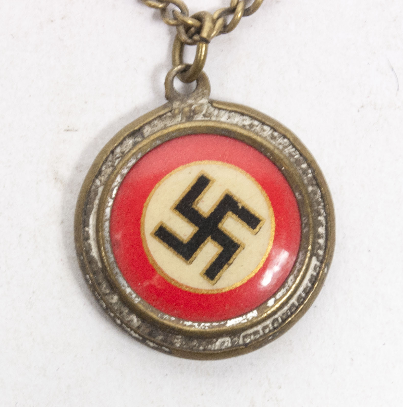 NSDAP Sympathisers badge on necklace – very rare celluloid badge.