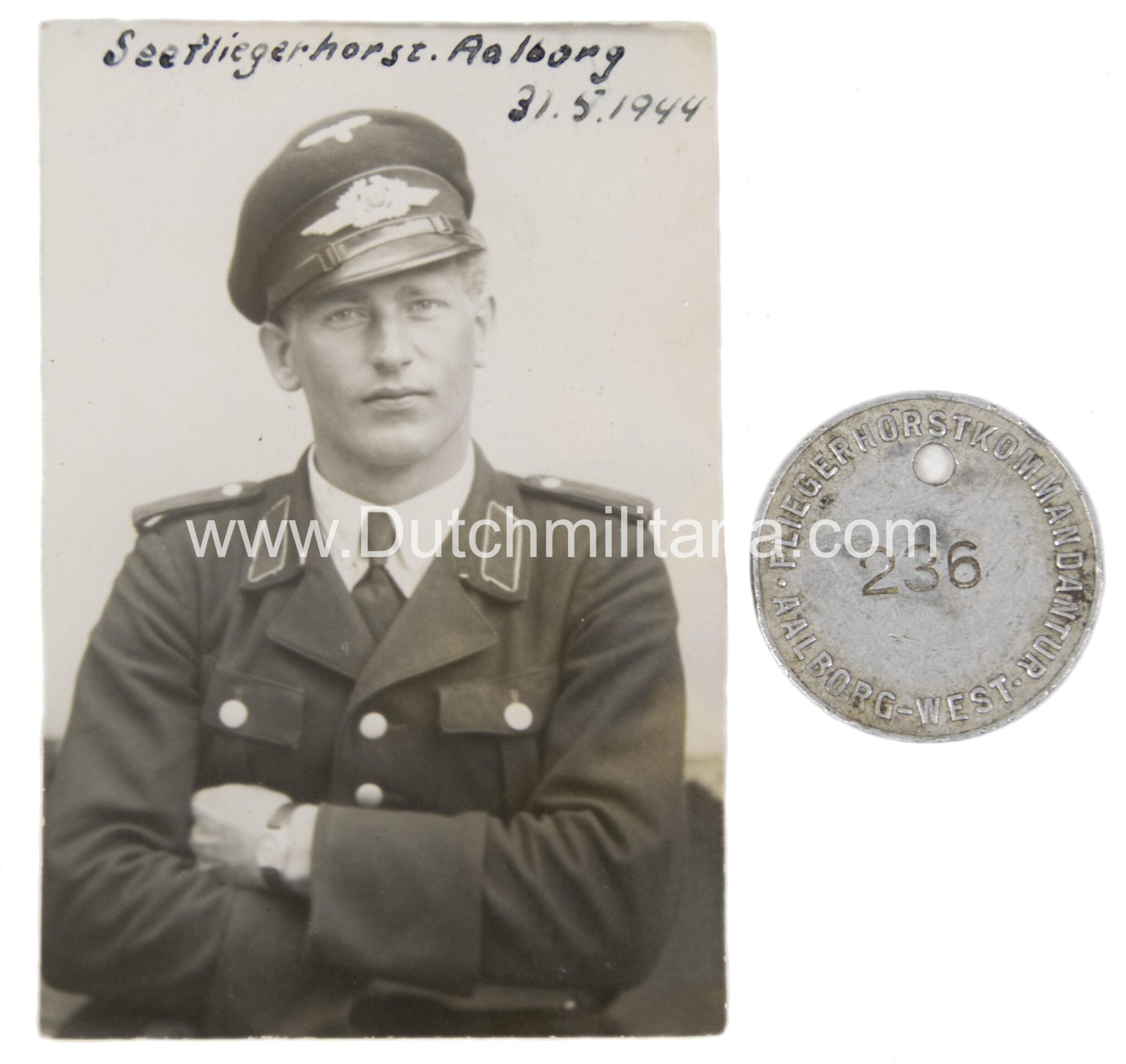 (Photo / Denmark) Luftwaffe Sommerkorpset / SS Schalburg Korpset photo + token Fliegerhorst Kommandantur Aalborg-West.