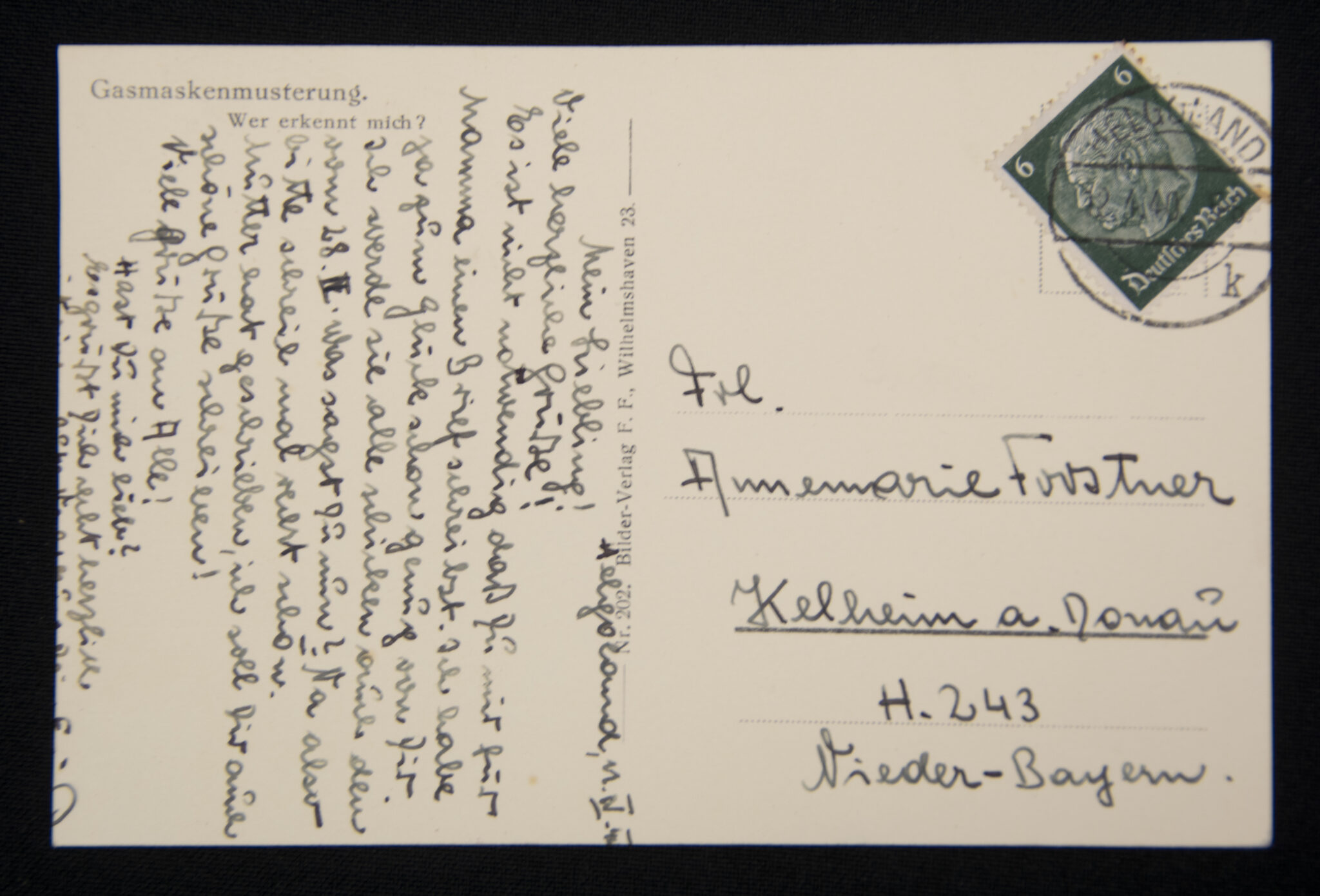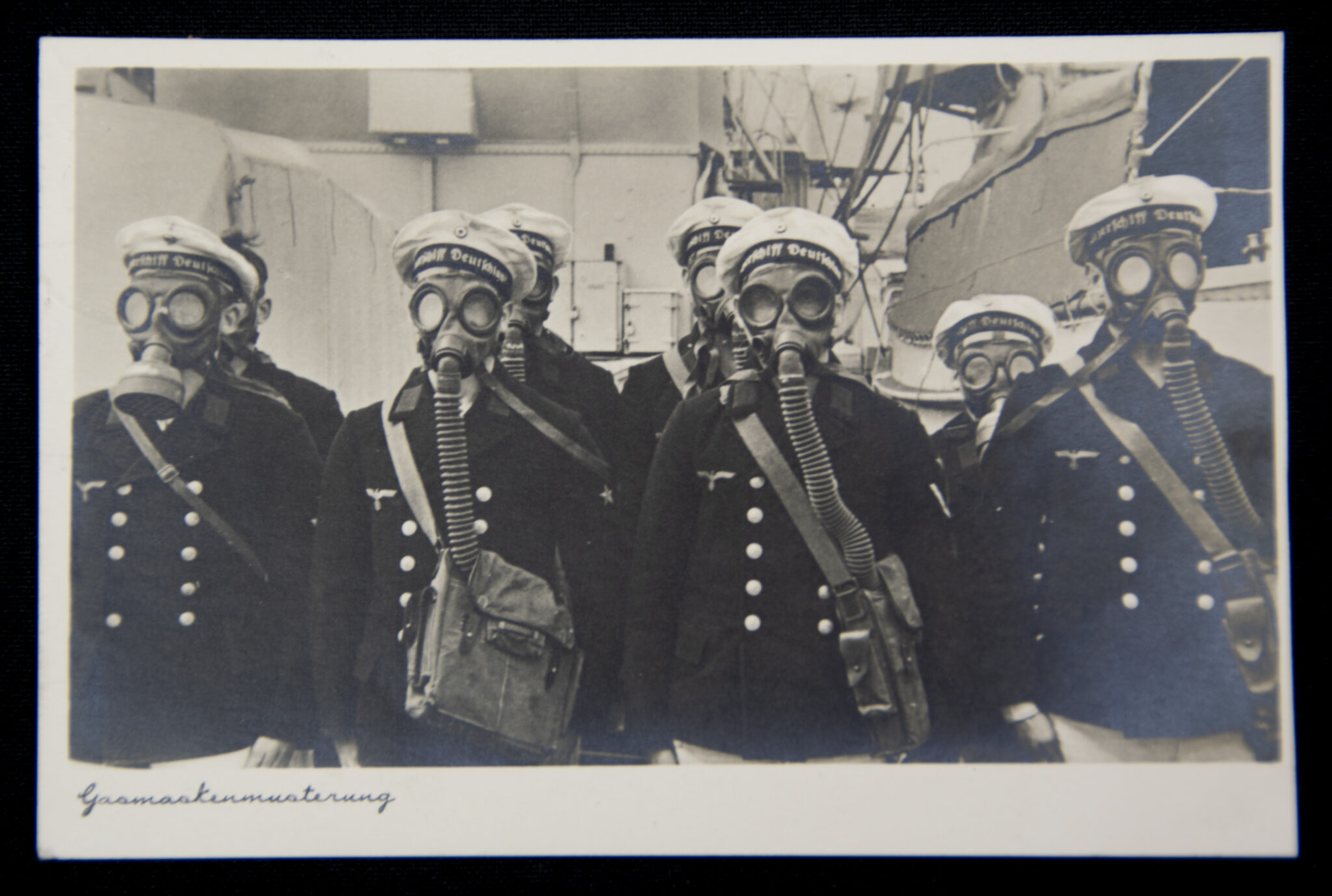 (Postcard) Gasmaskenmusterung.