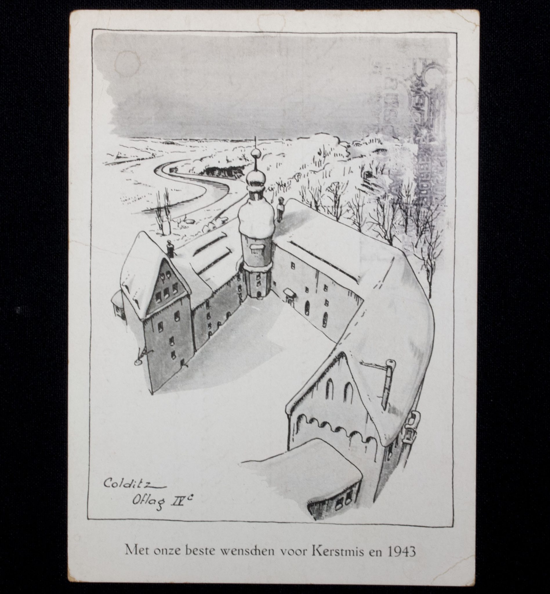 Category: Postcards and Photo's Tag: (PostcardKriegsgefangenenpost) Colditz Oflag IVc Met onze beste wenschen voor Kerstmis en 1943