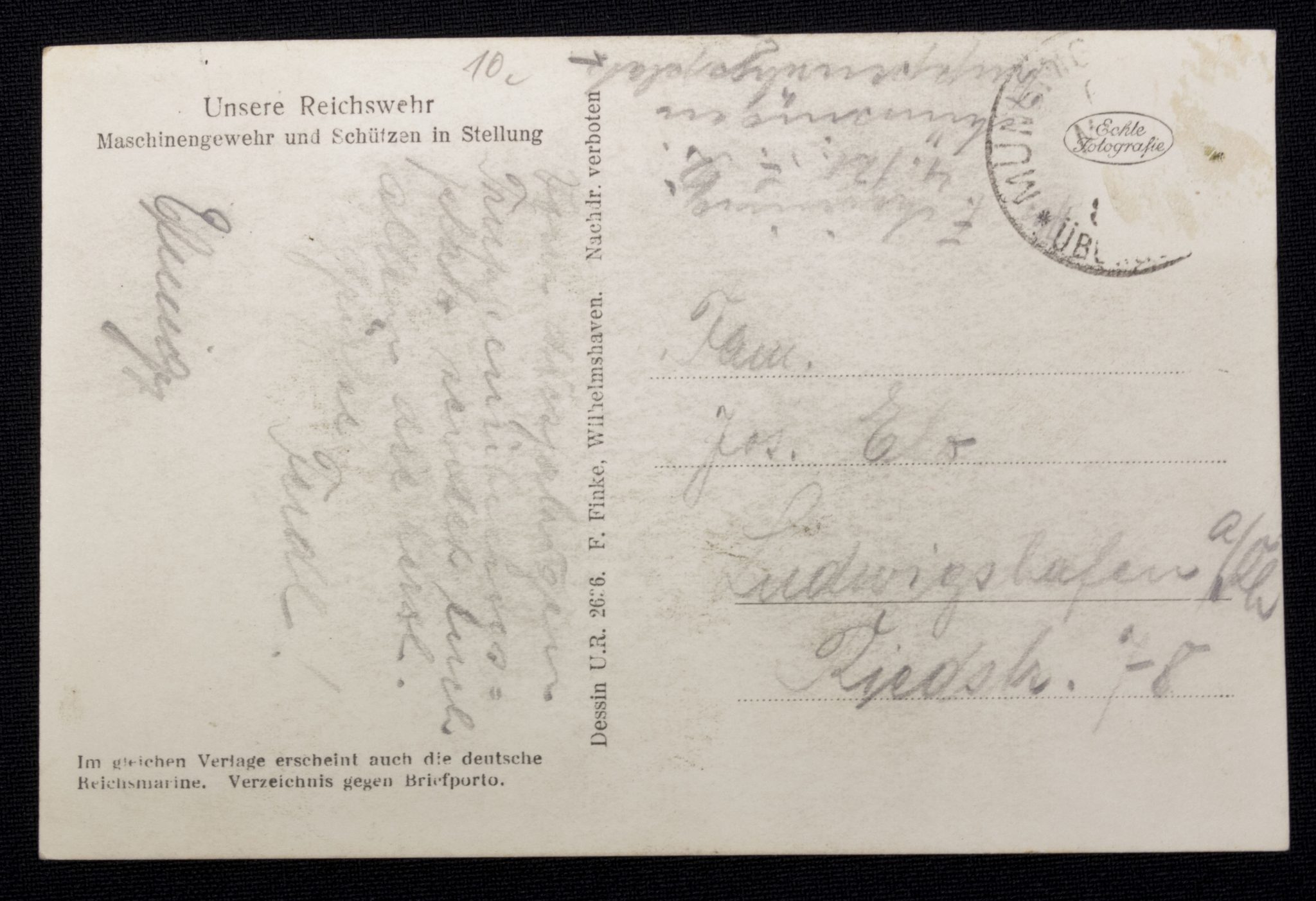 Category: Postcards and Photo's Tag: (Postcard) Unsere Reichswehr. Maschinengewehr und Schützen in Stellung