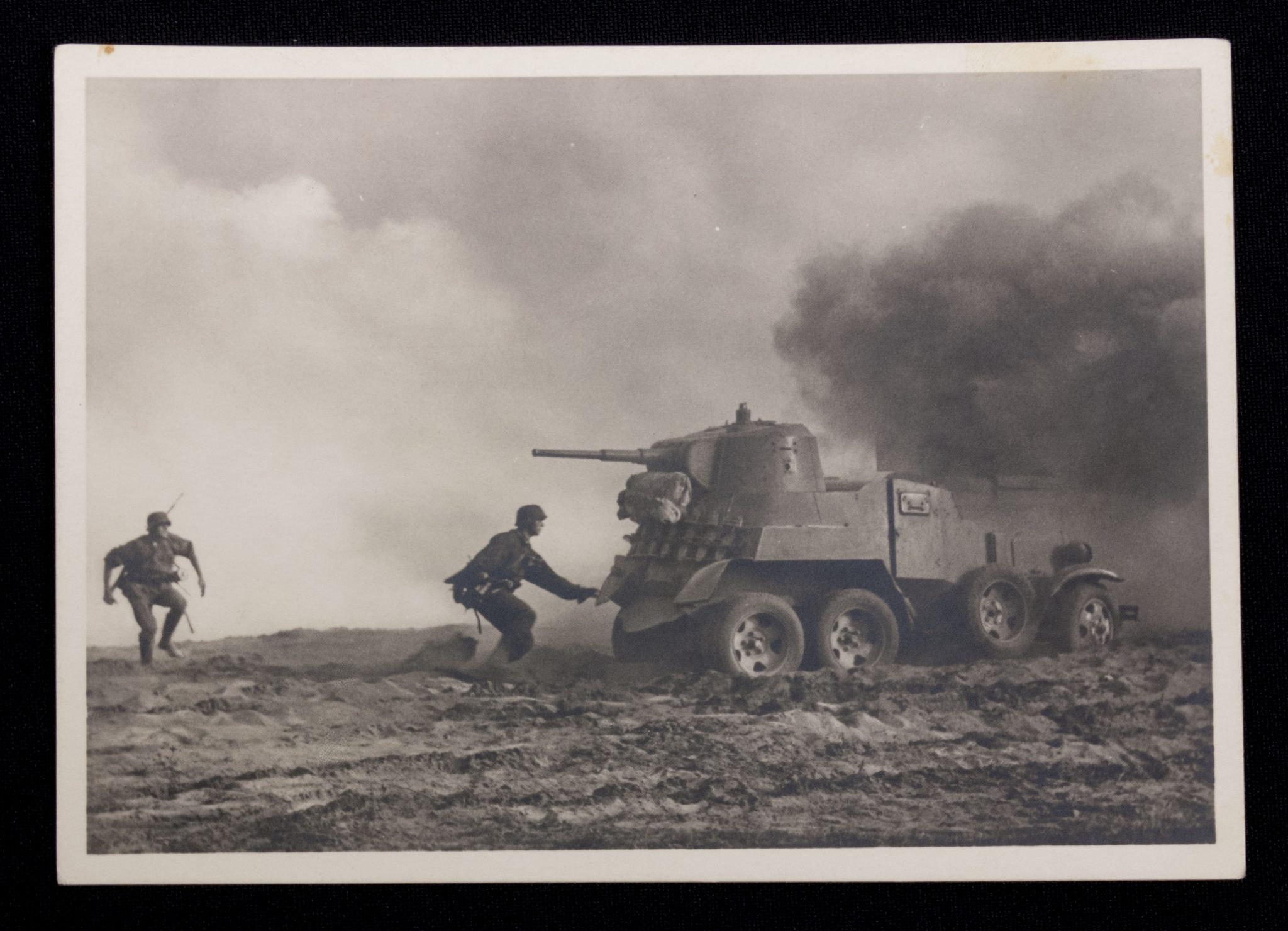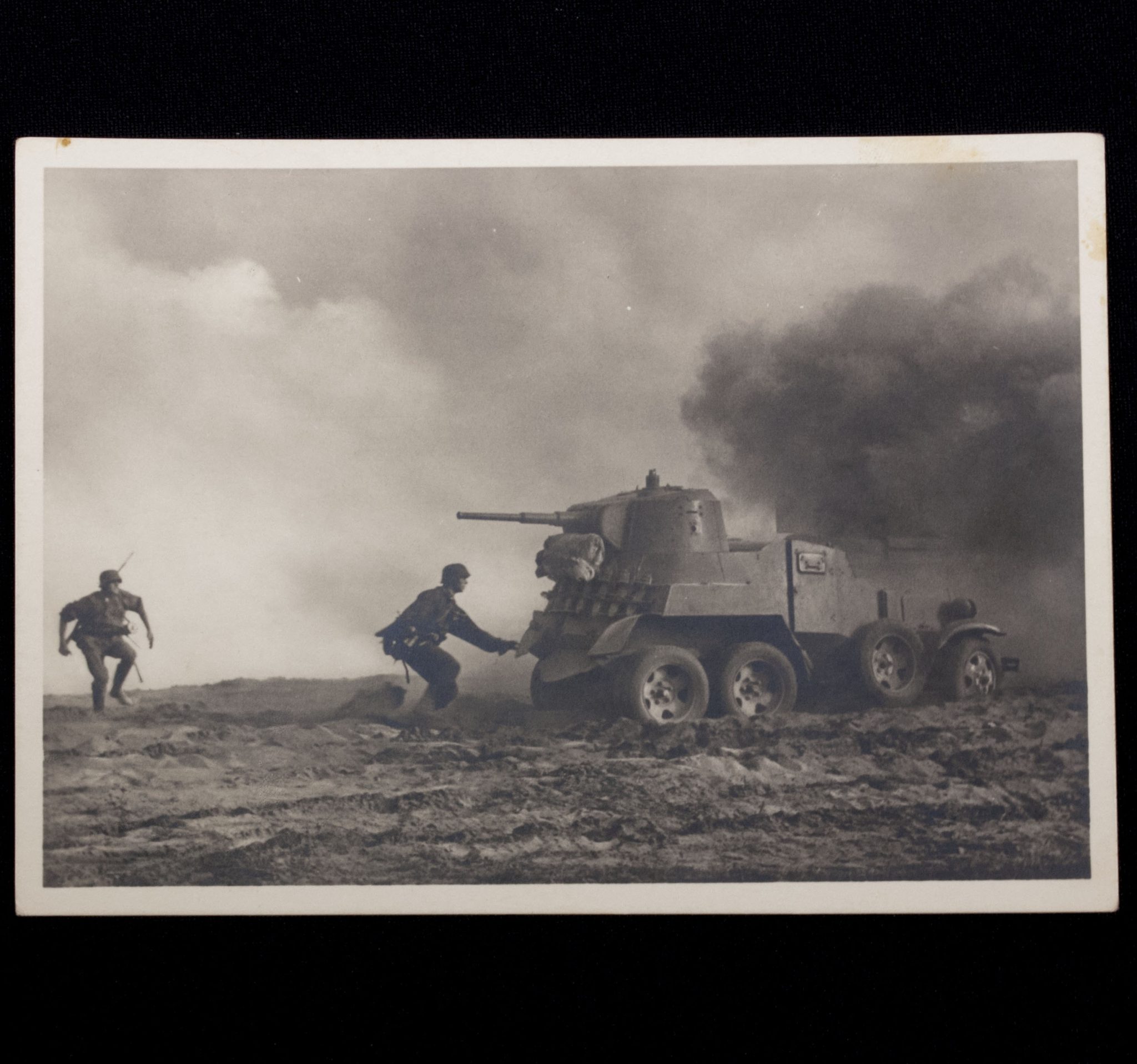 (Postcard) Waffen-SS Mann gegen Sowjetpanzer.