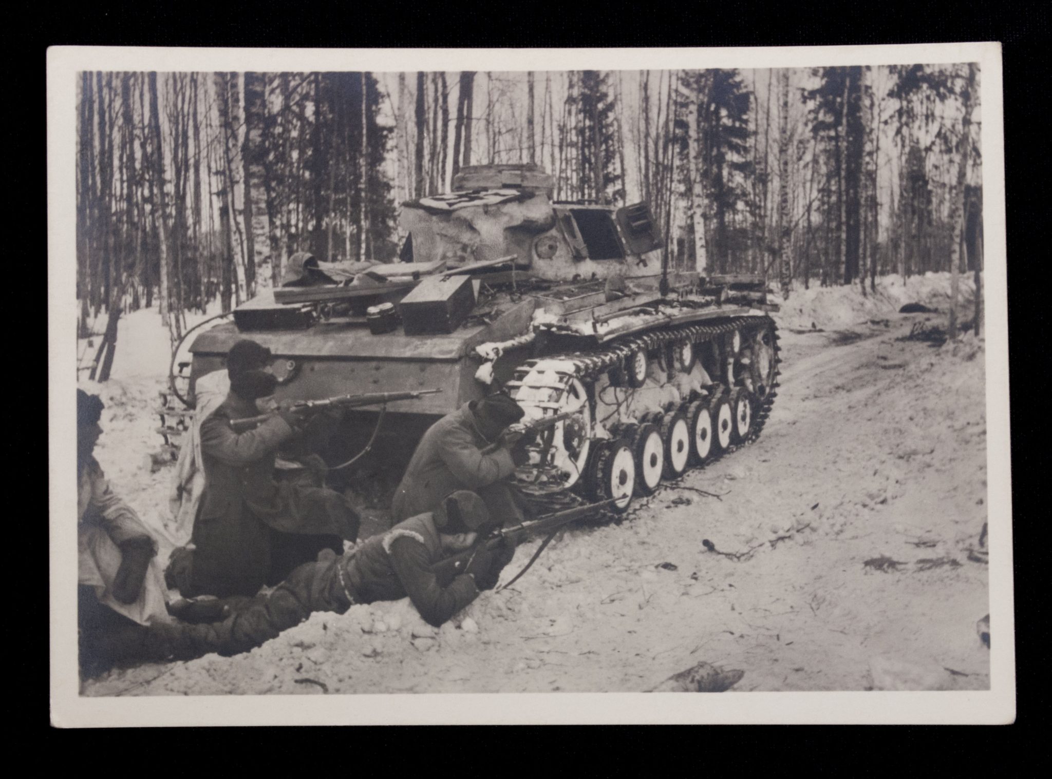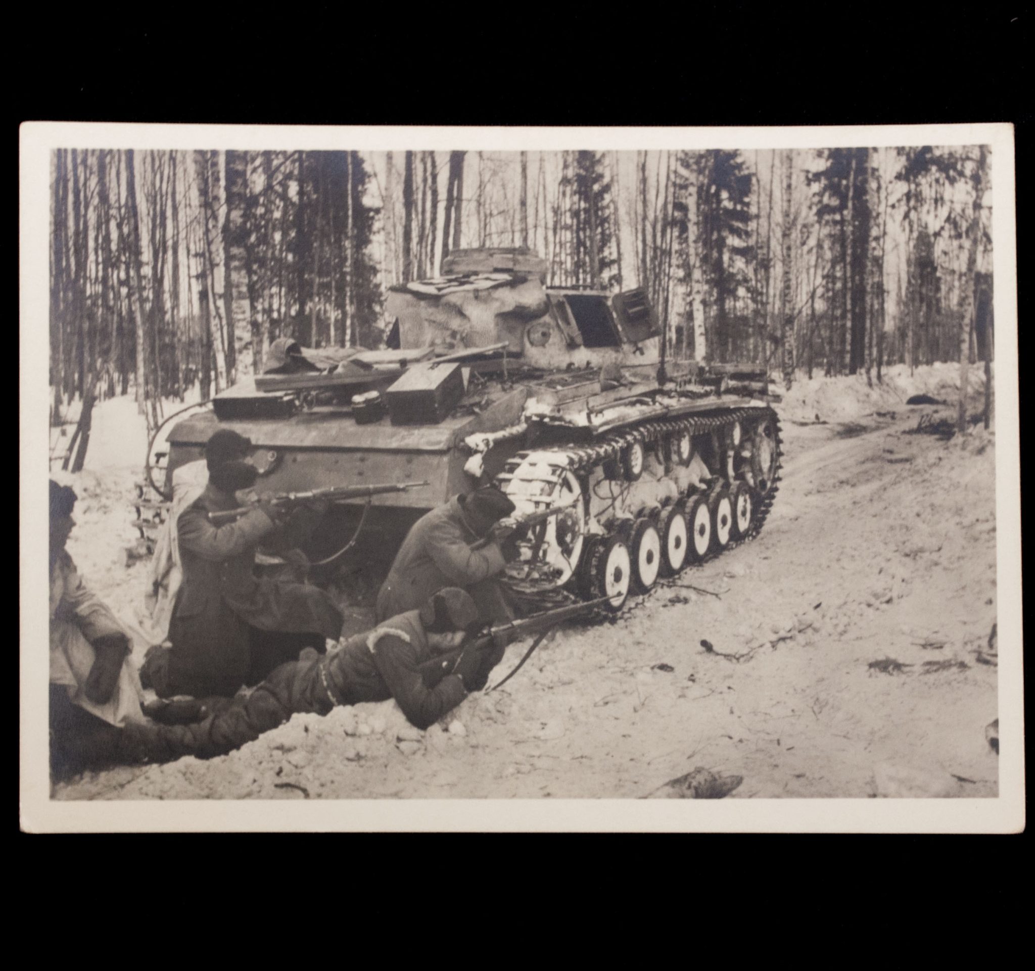 (Postcard) Waffen-SS Spähtrupp im Karelischen Wald.
