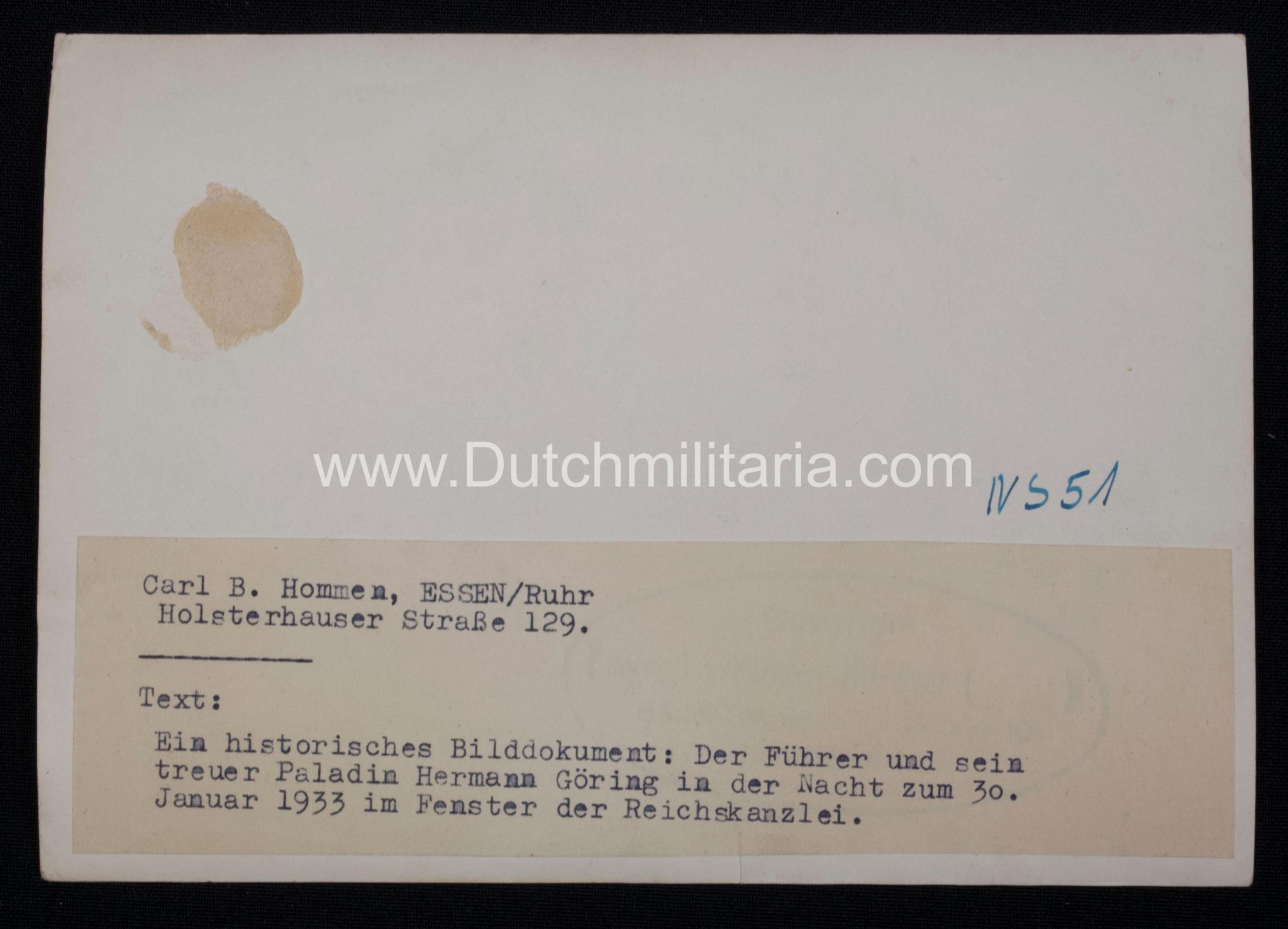 (Pressphoto) Der Führer nd sein treuer Paladin Hermann Göring in der Nacht zum 30. Januar 1933 im Fenster der Reichskanzlei.