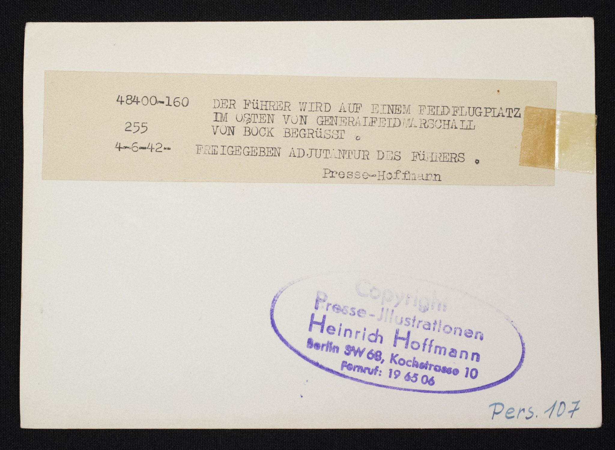 (Pressphoto) Der Führer wird von Generalfeldmarschall von Bock begrüsst.