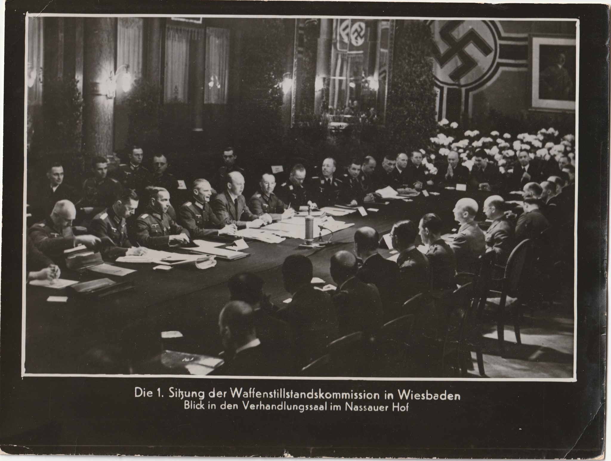(Pressphoto) Die 1. Sitzung der Waffenstillstandskommission in Wiesbaden (24×18 cm).