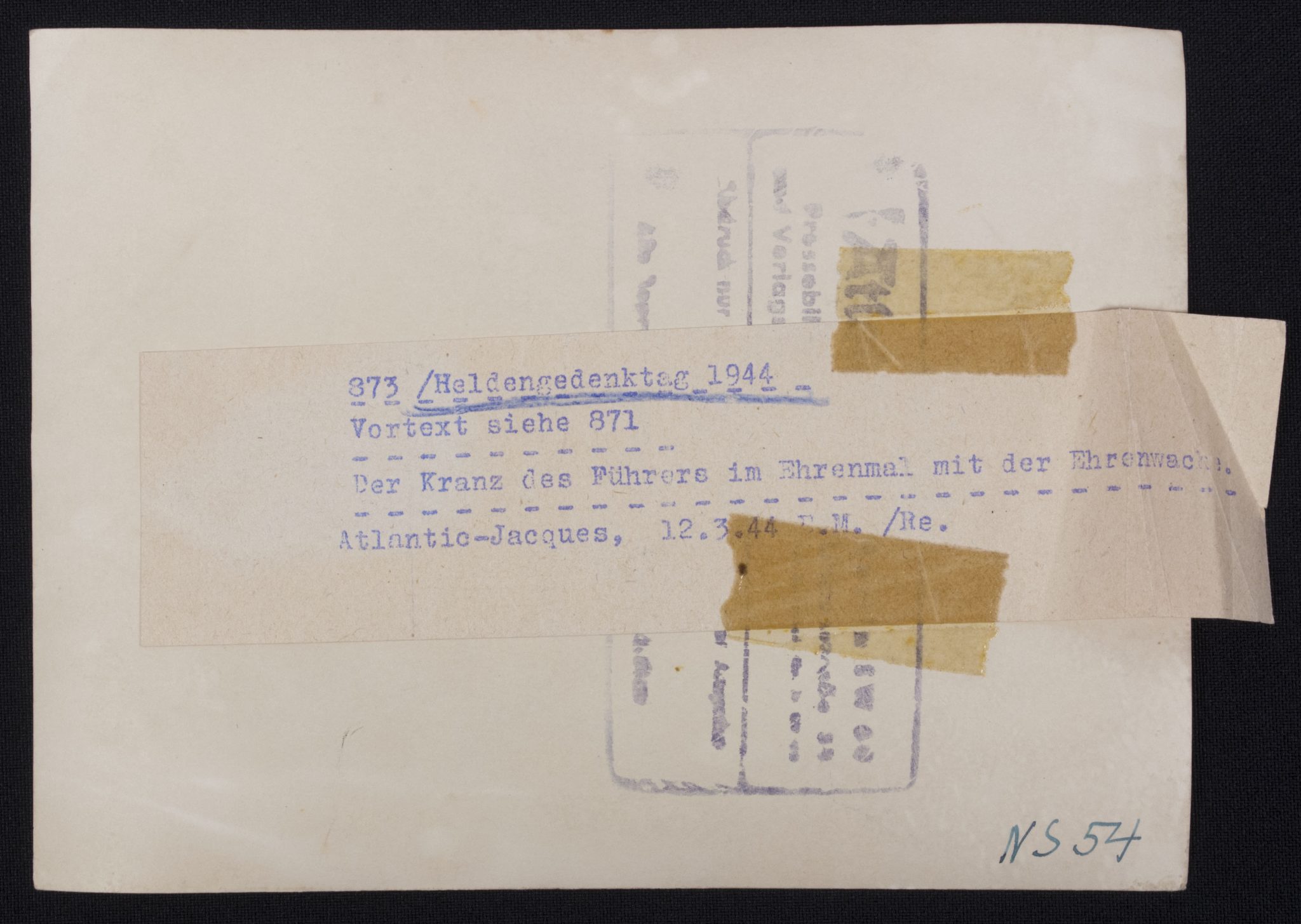 (Pressphoto) Heldengedenktag 1944 – Der Kranz des Führers im Ehrenmal mit der Ehrenwacht
