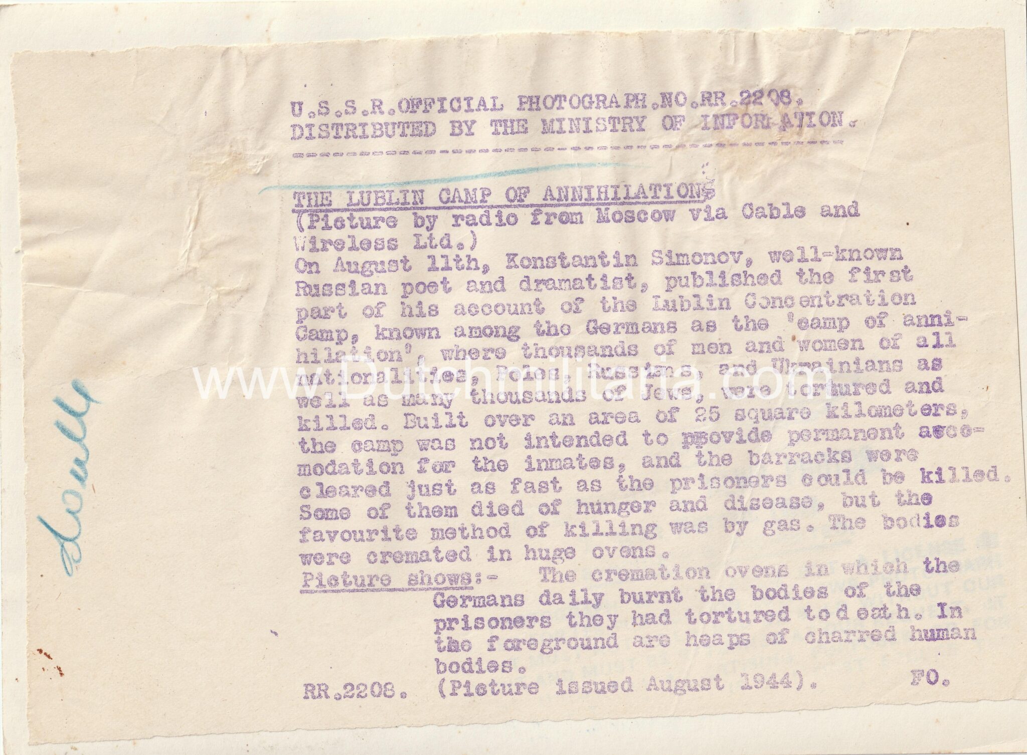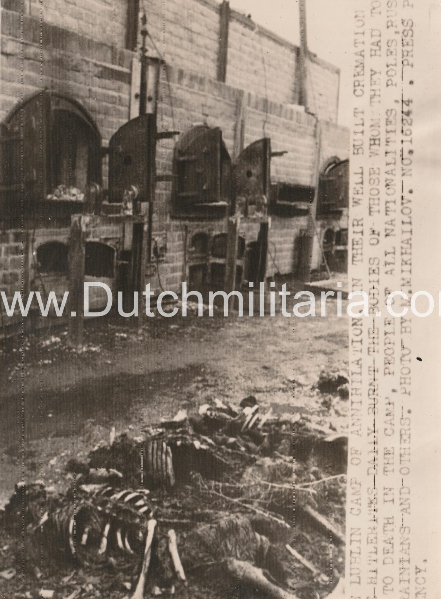 Category: Postcards and Photo's Tag: (Pressphoto) The Lublin Camp of Annihilation camp cremation ovens (20x15cm) - rare original photo