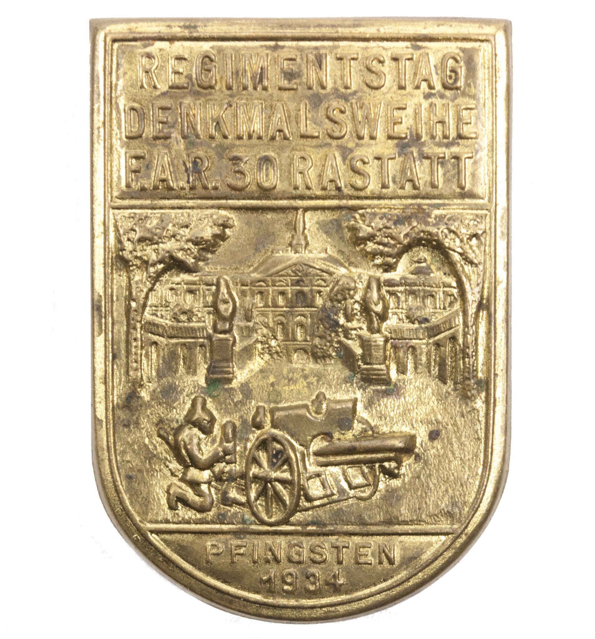 Regimentstag Denkmalsweihe F.A.R. 30 Rastatt Pfingsten 1934 abzeichen.