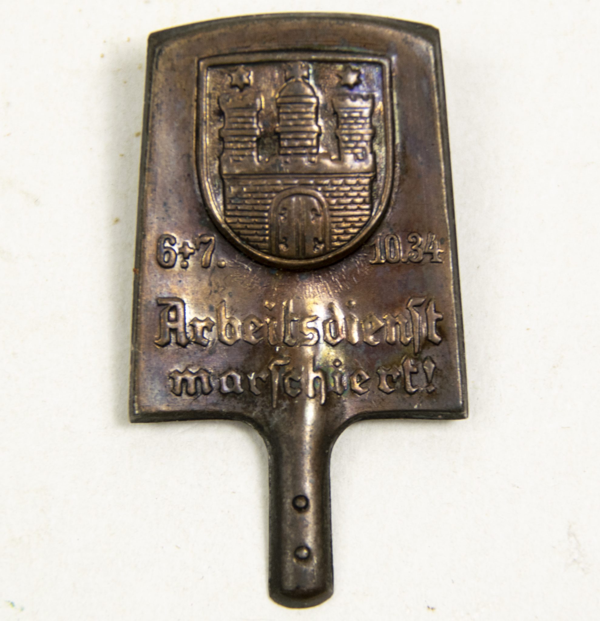 Category: WW2 German Badges and Memberpins Tag: Reichsarbeitsdienst (RAD) 6.+7.10.34 Arbeitsdienst Marchiert!
