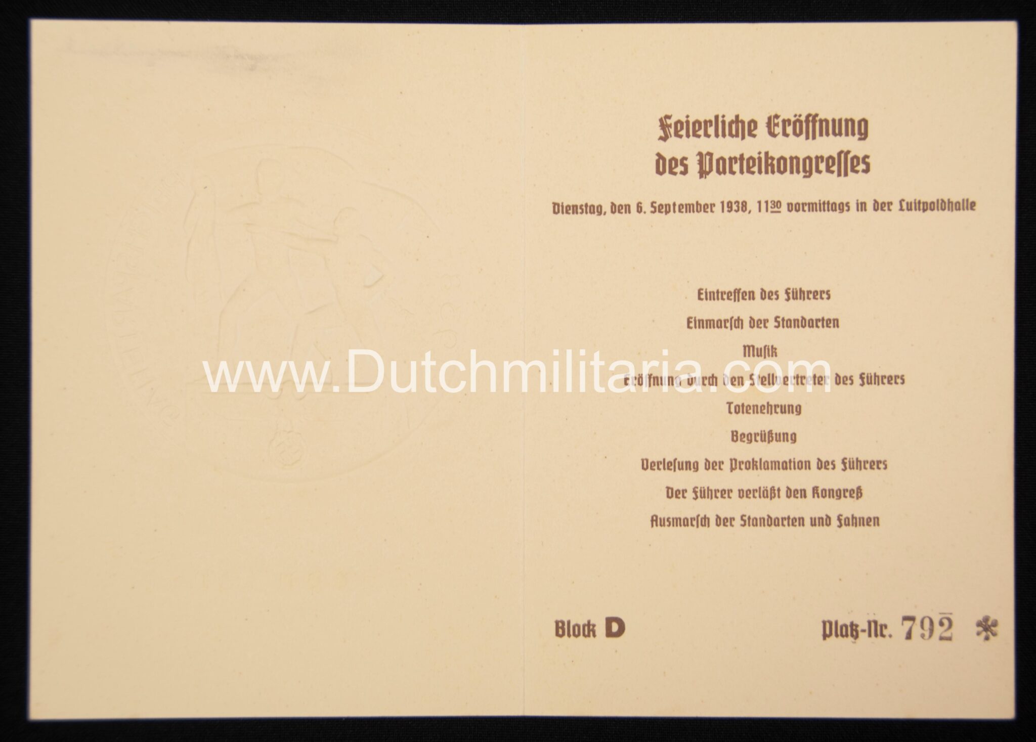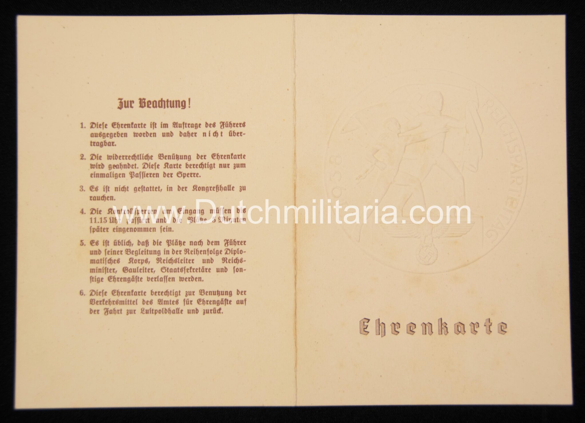 Reichsparteitag 1938 Ehren-Karte + Map – extremely rare.