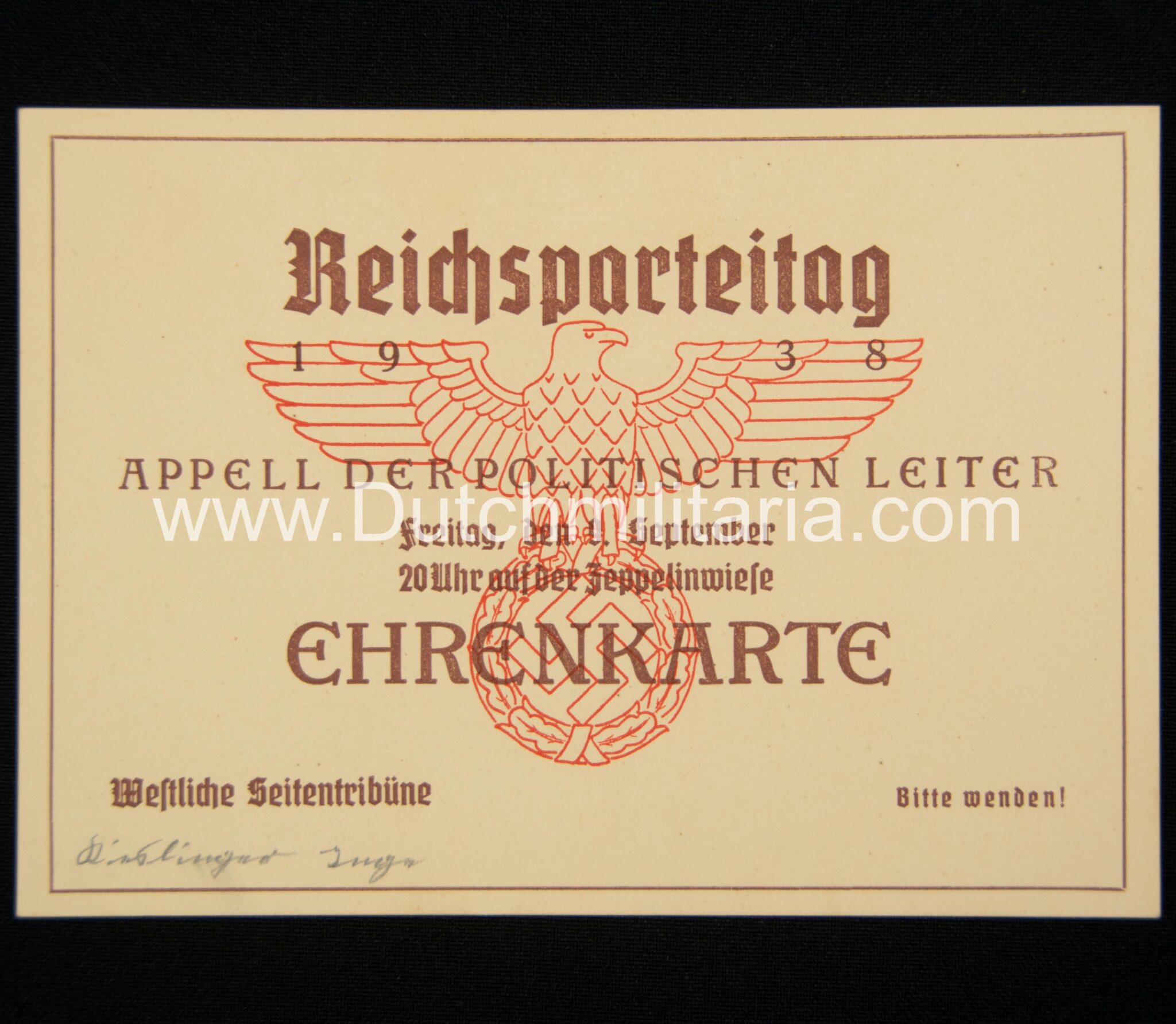 Reichsparteitag 1938 – Ehrenkarte – Appell der Politischen Leiter – RARE.