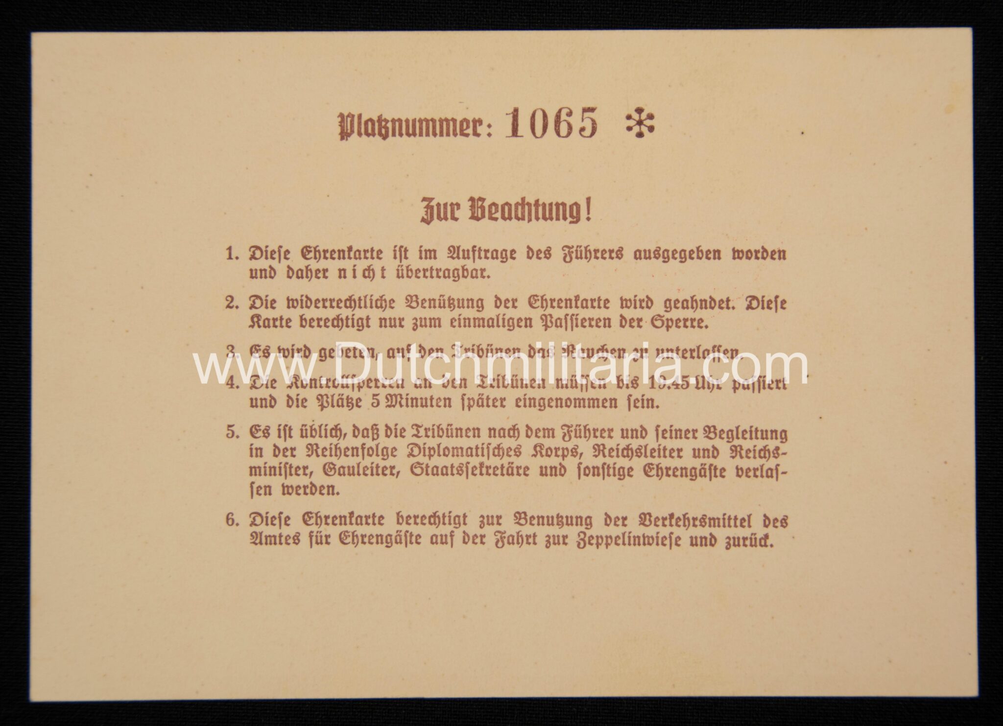 Ehrenkarte [Special Honored Guest].