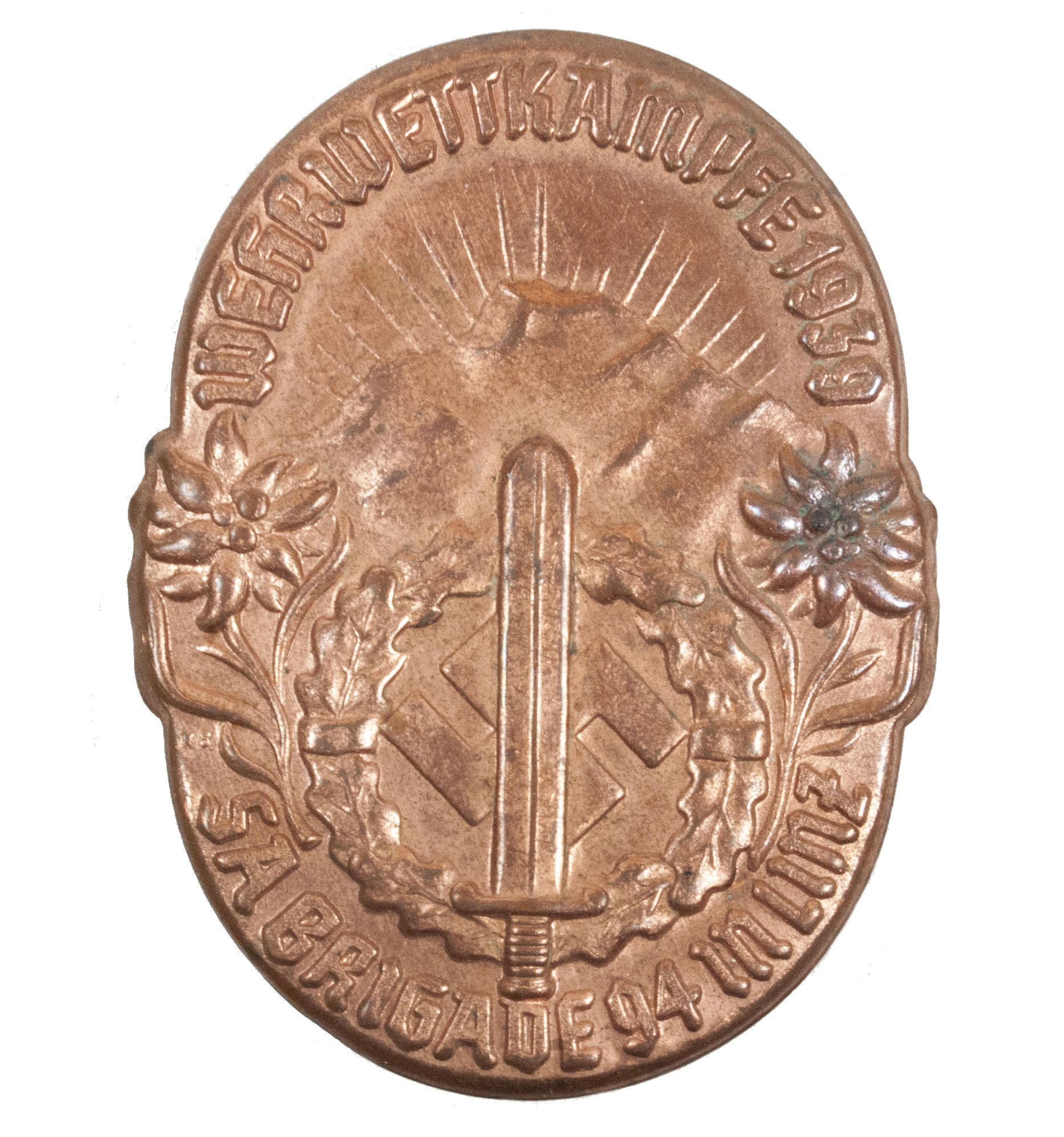 Category: WW2 German Badges and Memberpins Tag: SA Brigade 94 Munz - Wehrwettkämpfe 1939 abzeichen