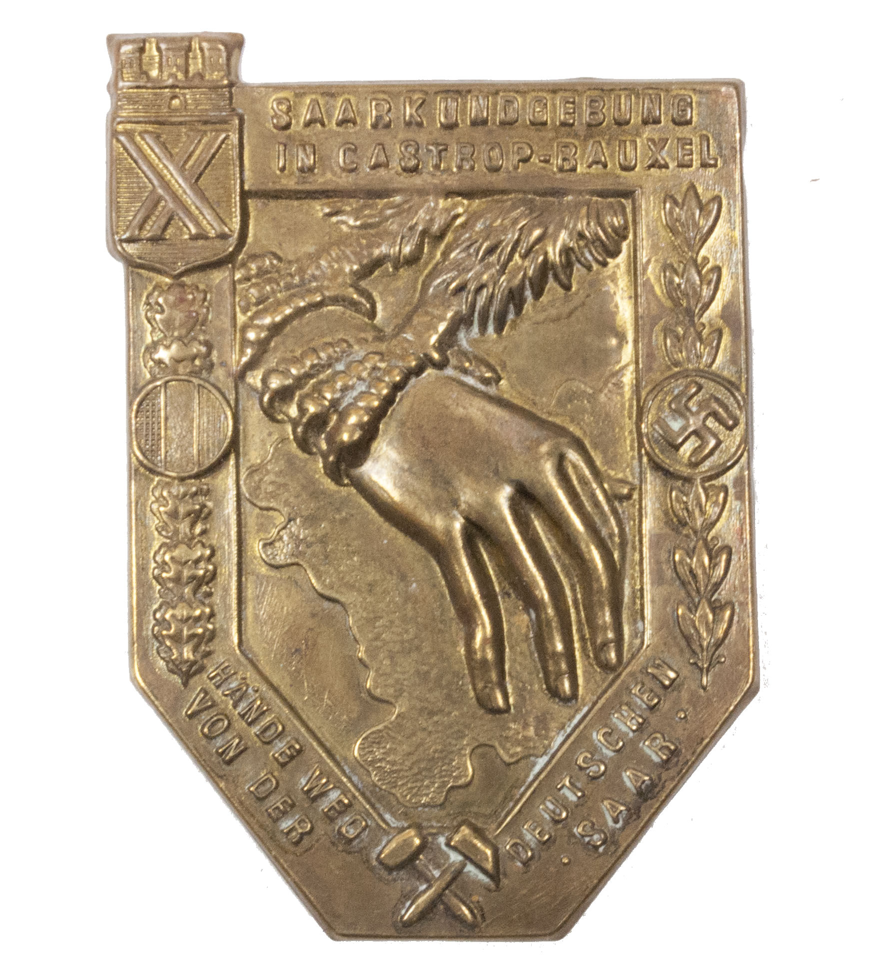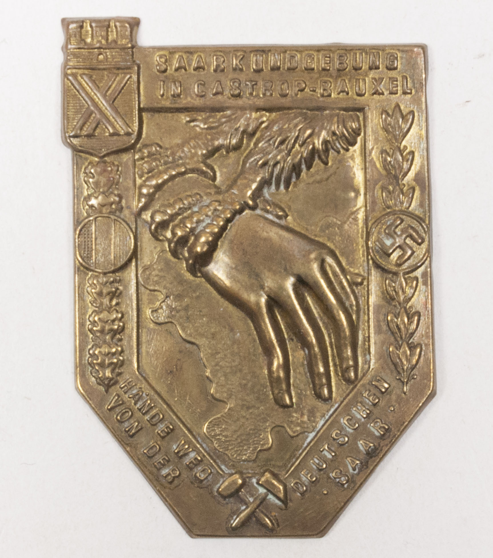 Category: WW2 German Badges and Memberpins Tag: Saarkundgebung in Castrop-Bauxel - Hände weg von der deutschen Saar