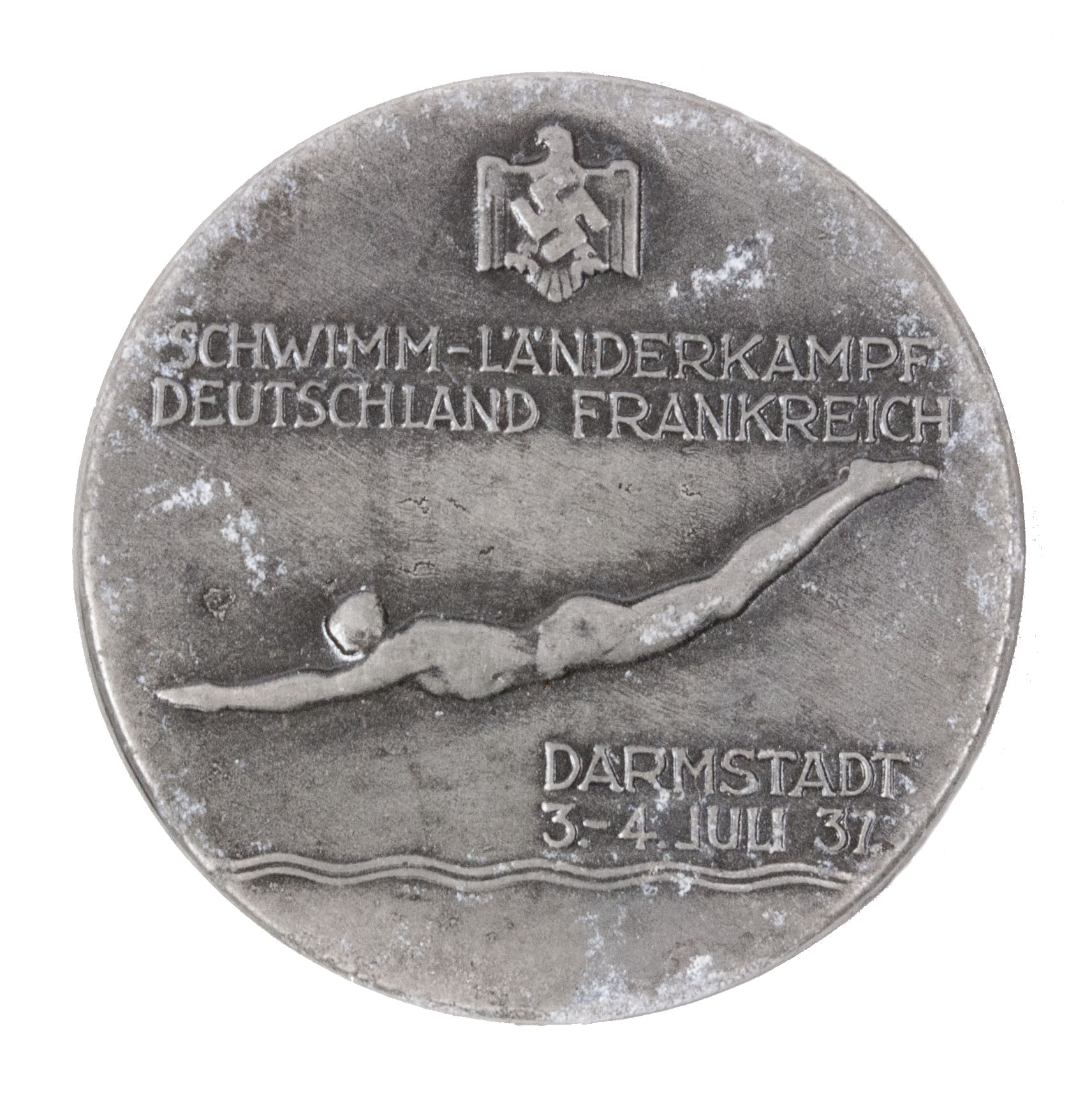 Category: WW2 German Badges and Memberpins Tag: Schwimm-Länderkampf Deutschland Frankreich Darmstadt 3.-4. Juli 1937 abzeichen
