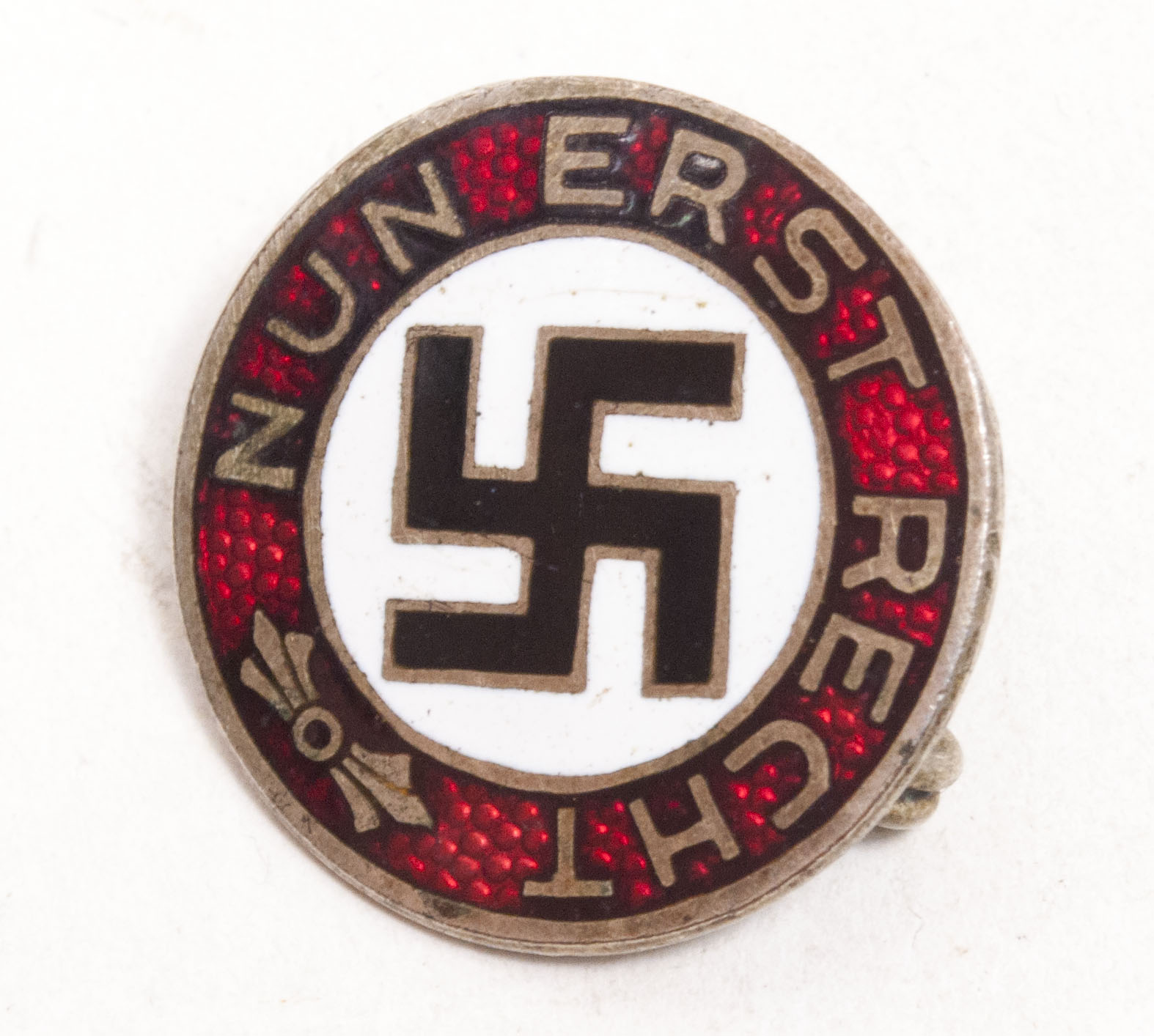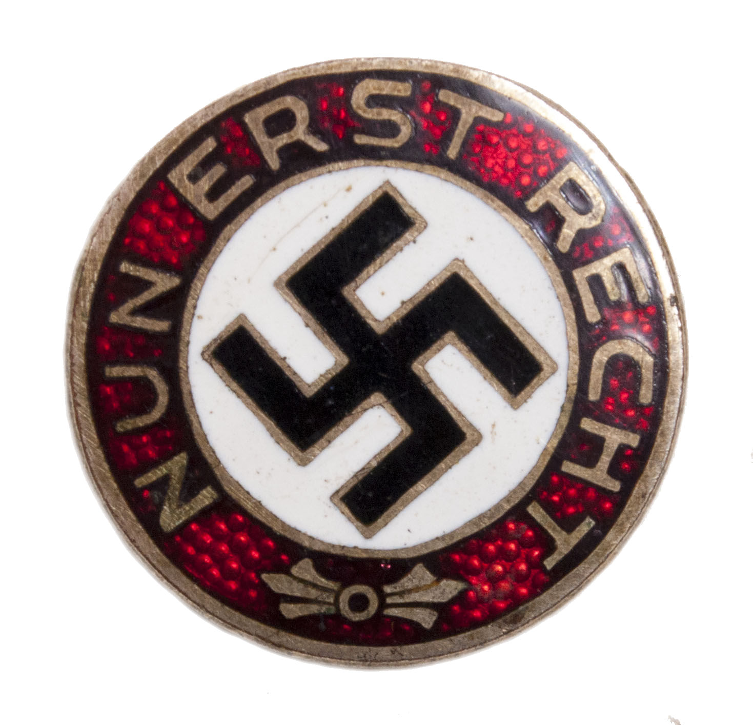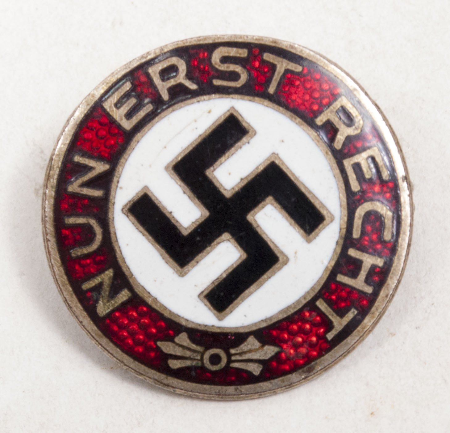 (Slogan) Full size NSDAP “Nun Erst Recht” badge.