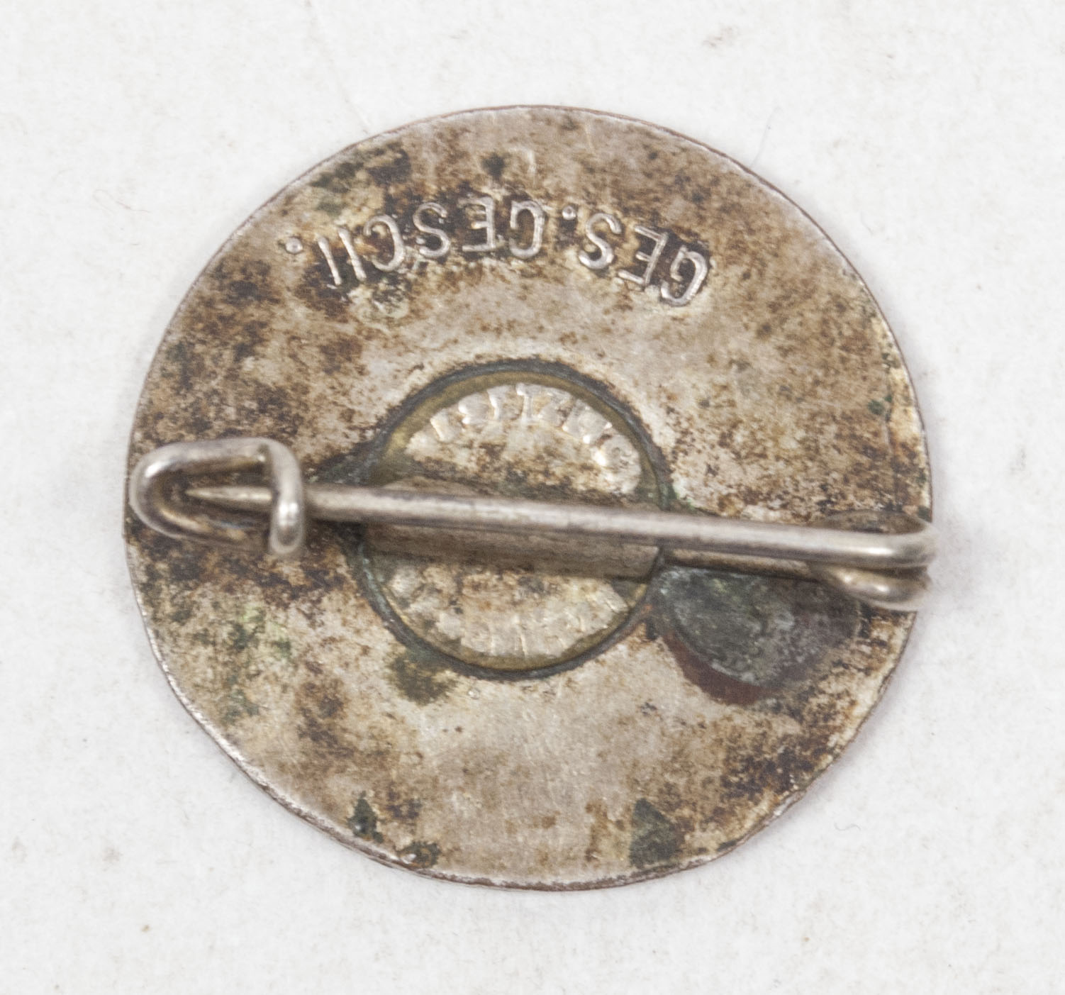 Double marked “Ges Gesch” on both the planchet and on the pinplate.