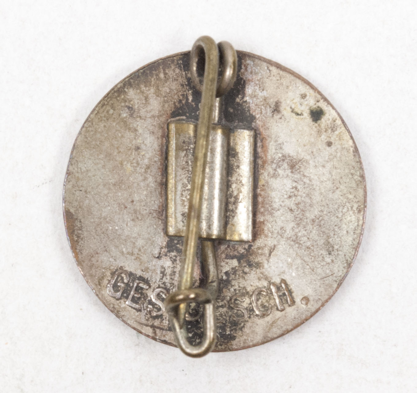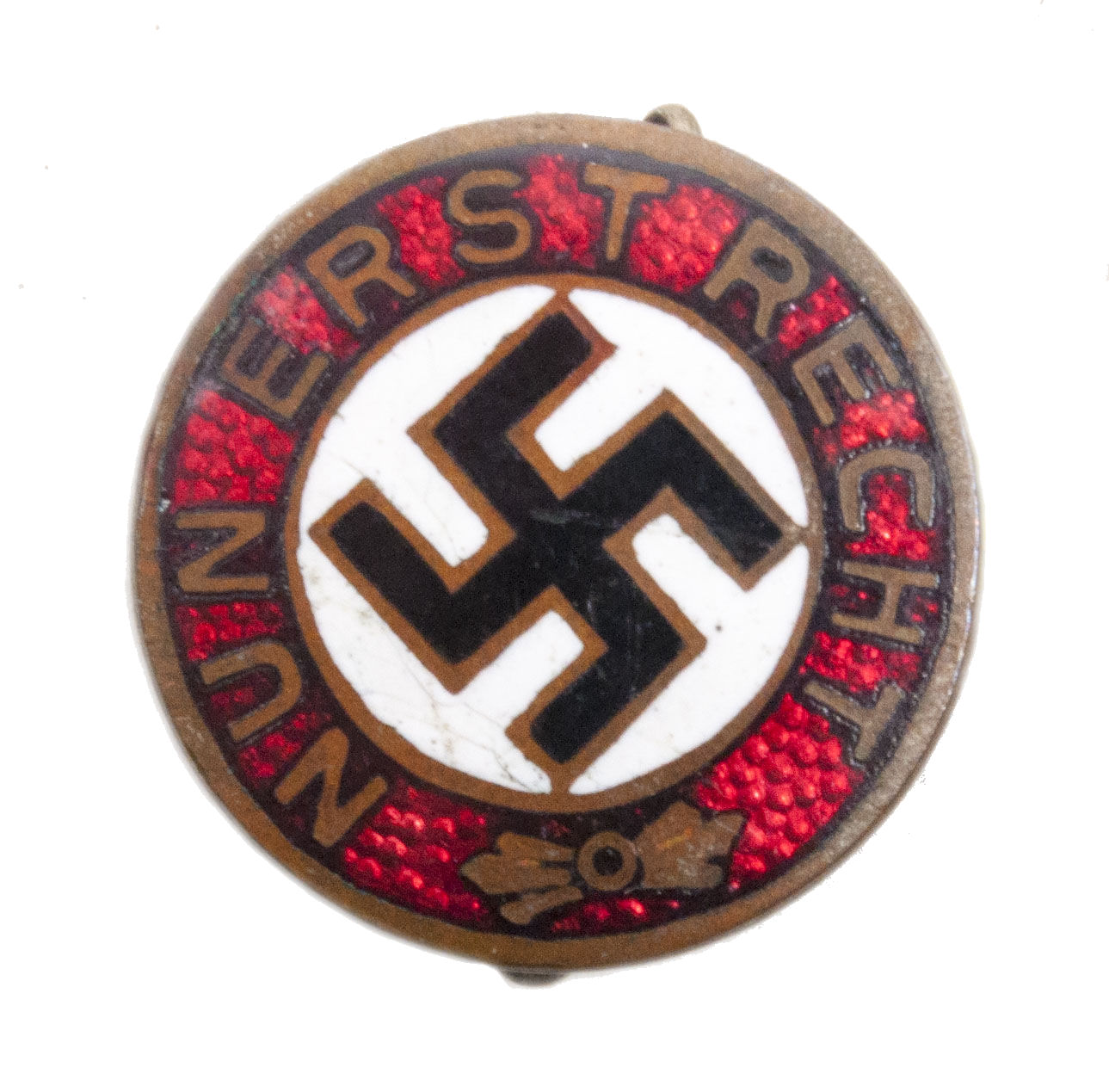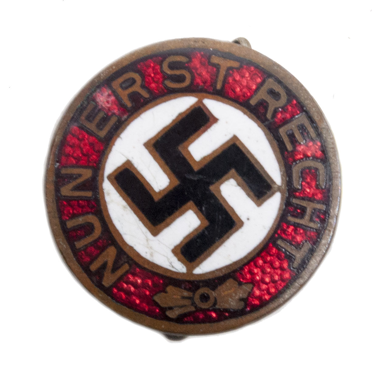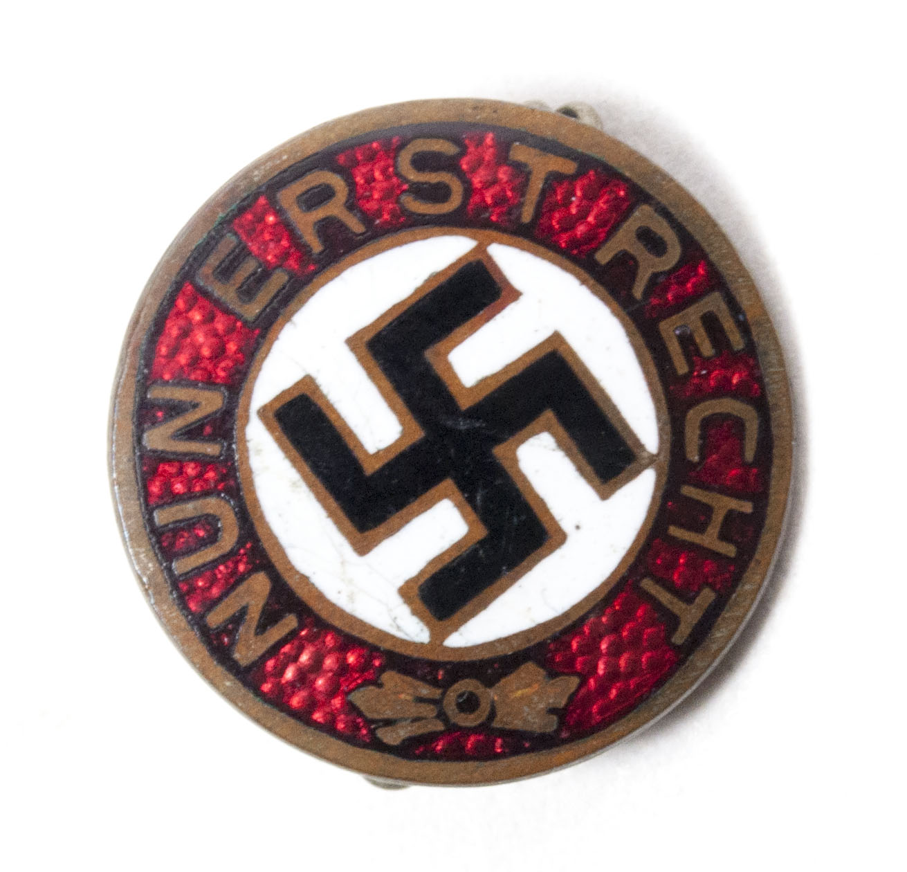 (Slogan) Small NSDAP “Nun Erst Recht” badge.