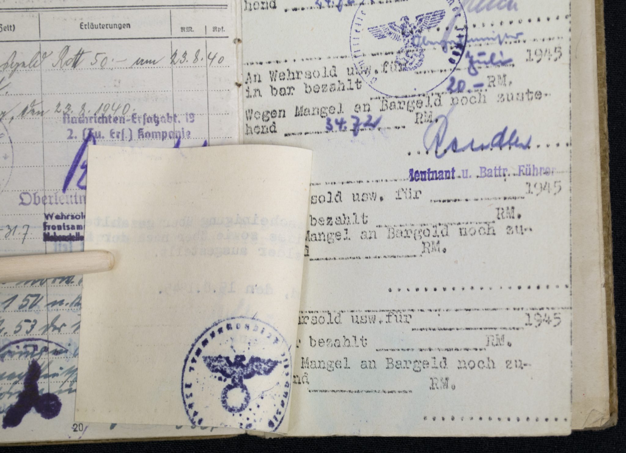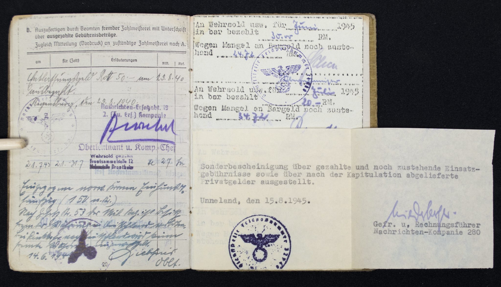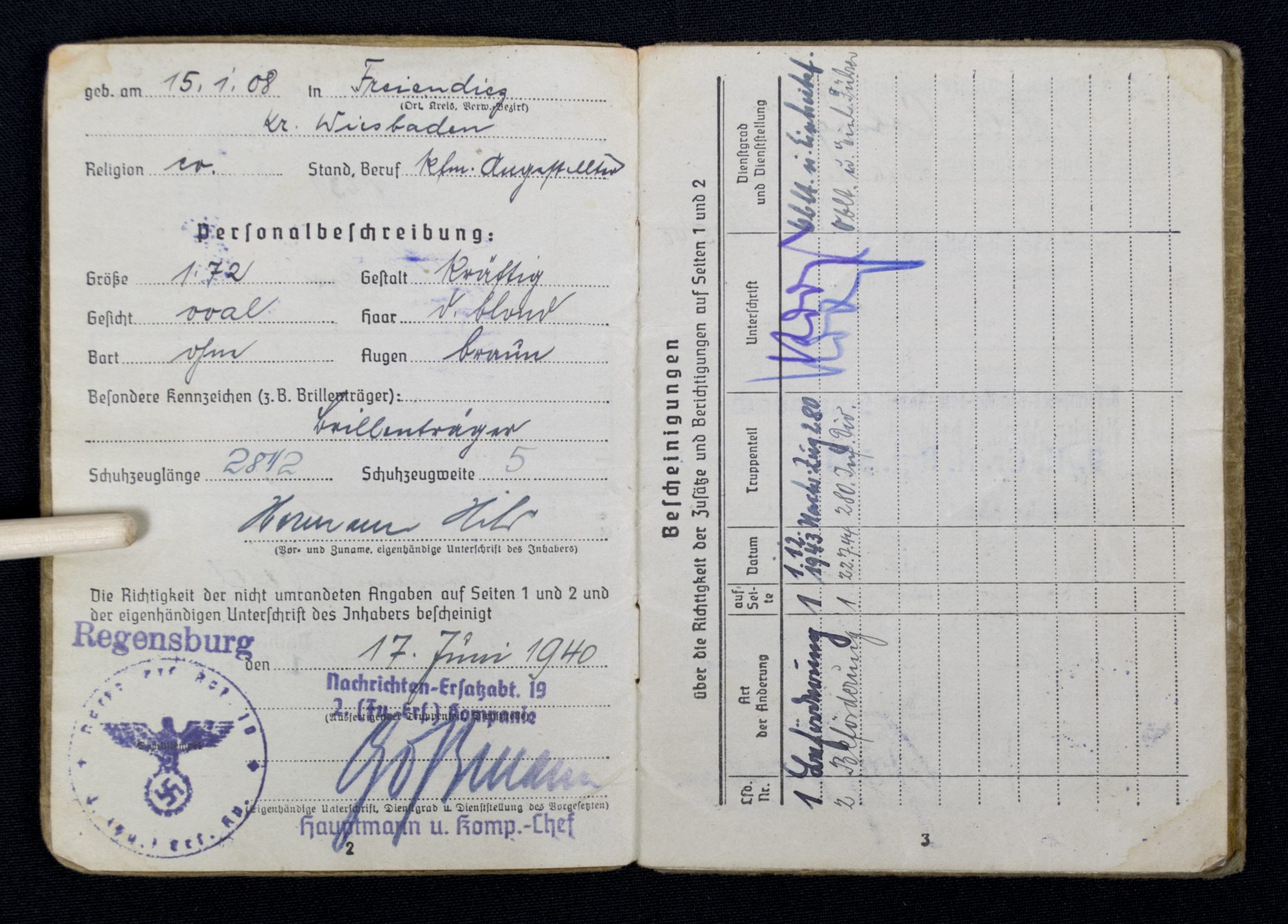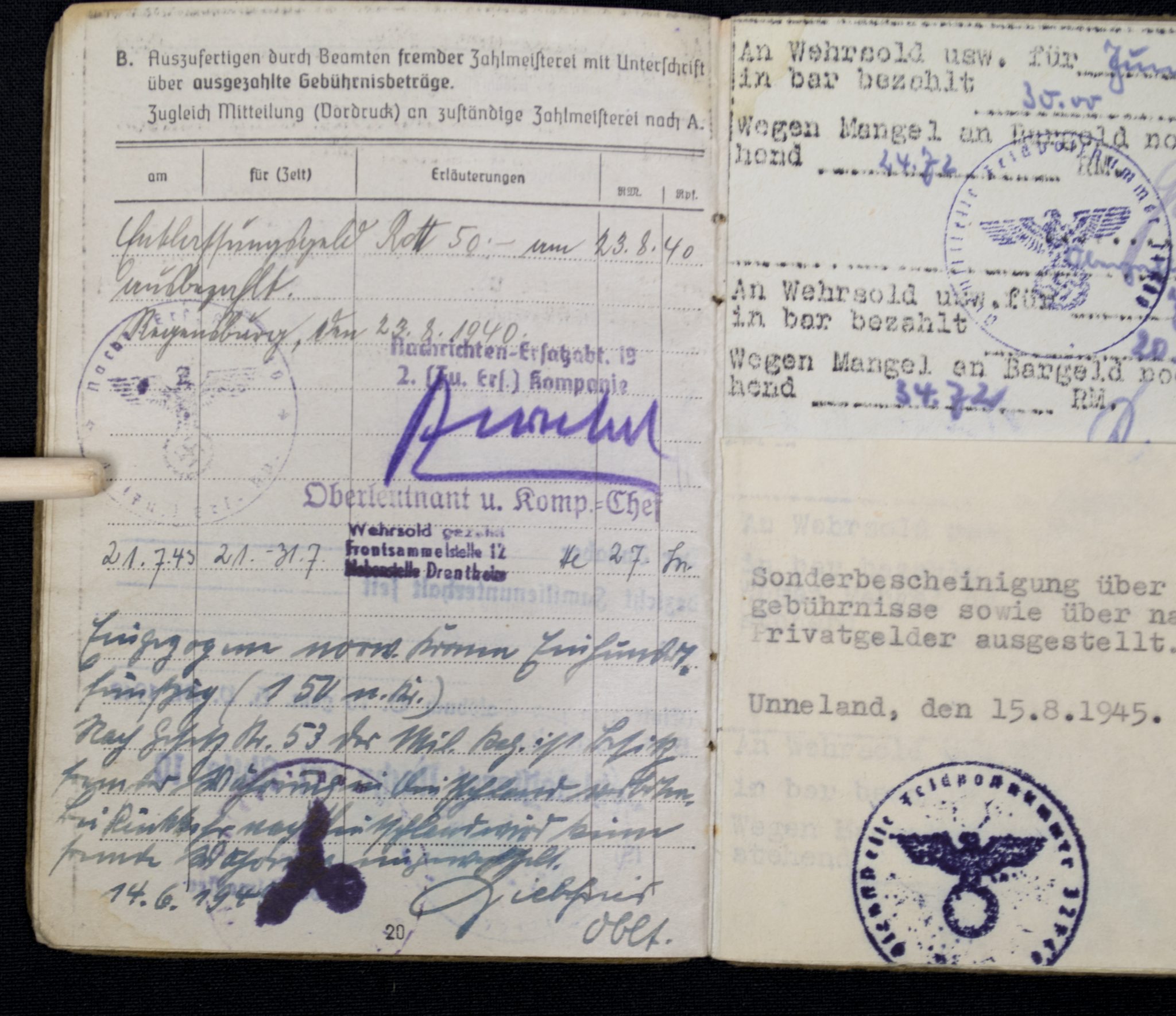 (Soldbuch) Nachrichten Ersatzabteilung. 19 (1940).