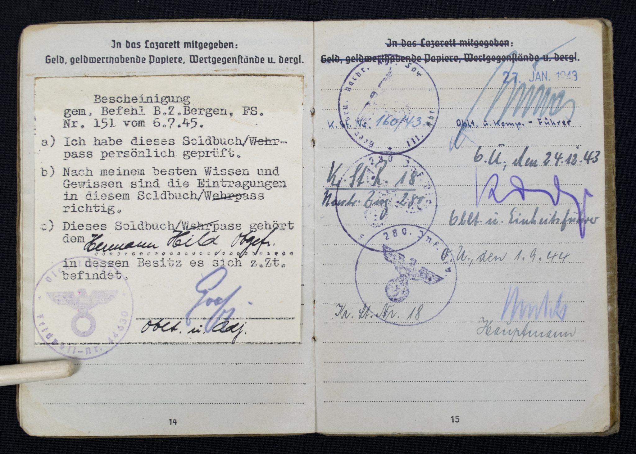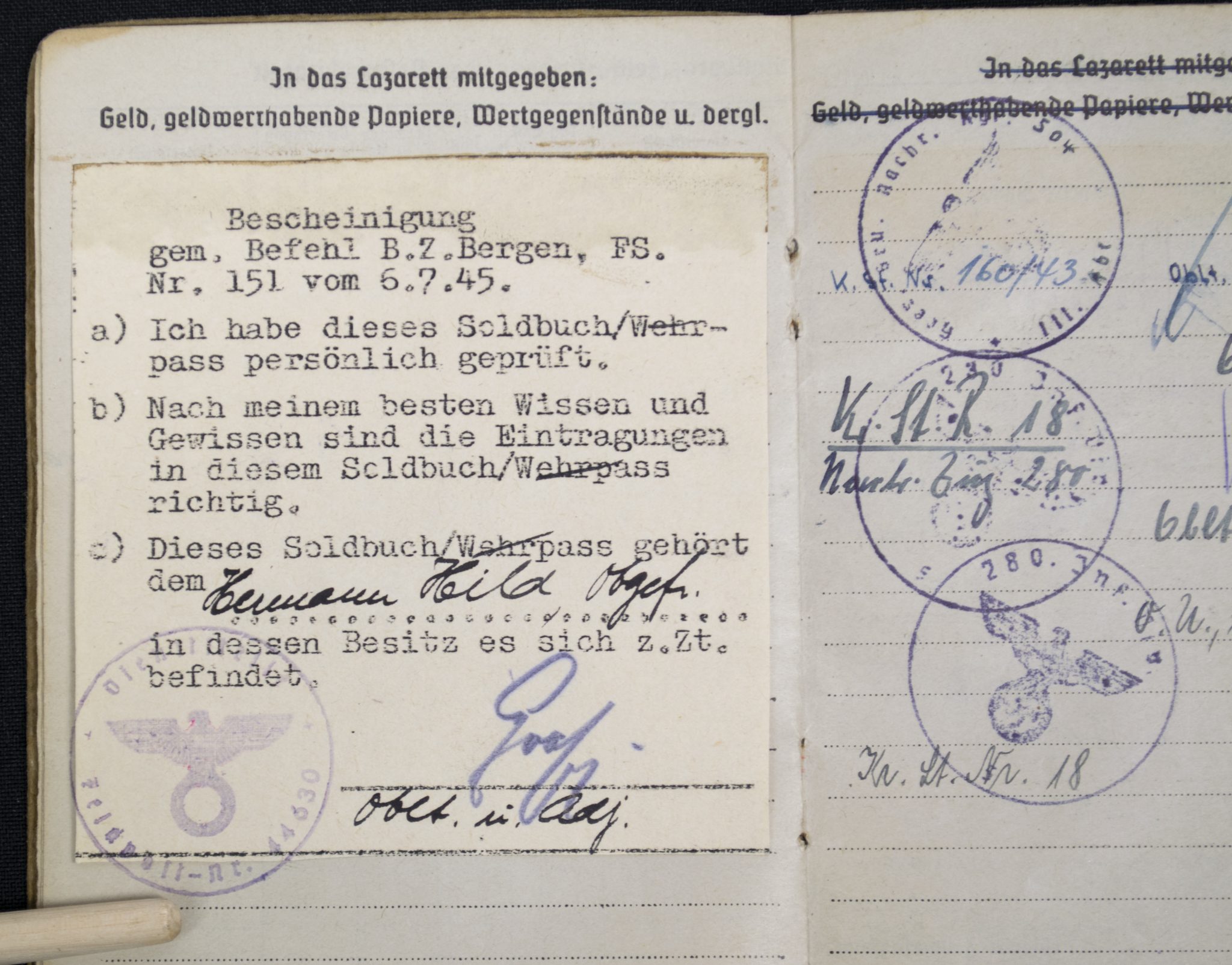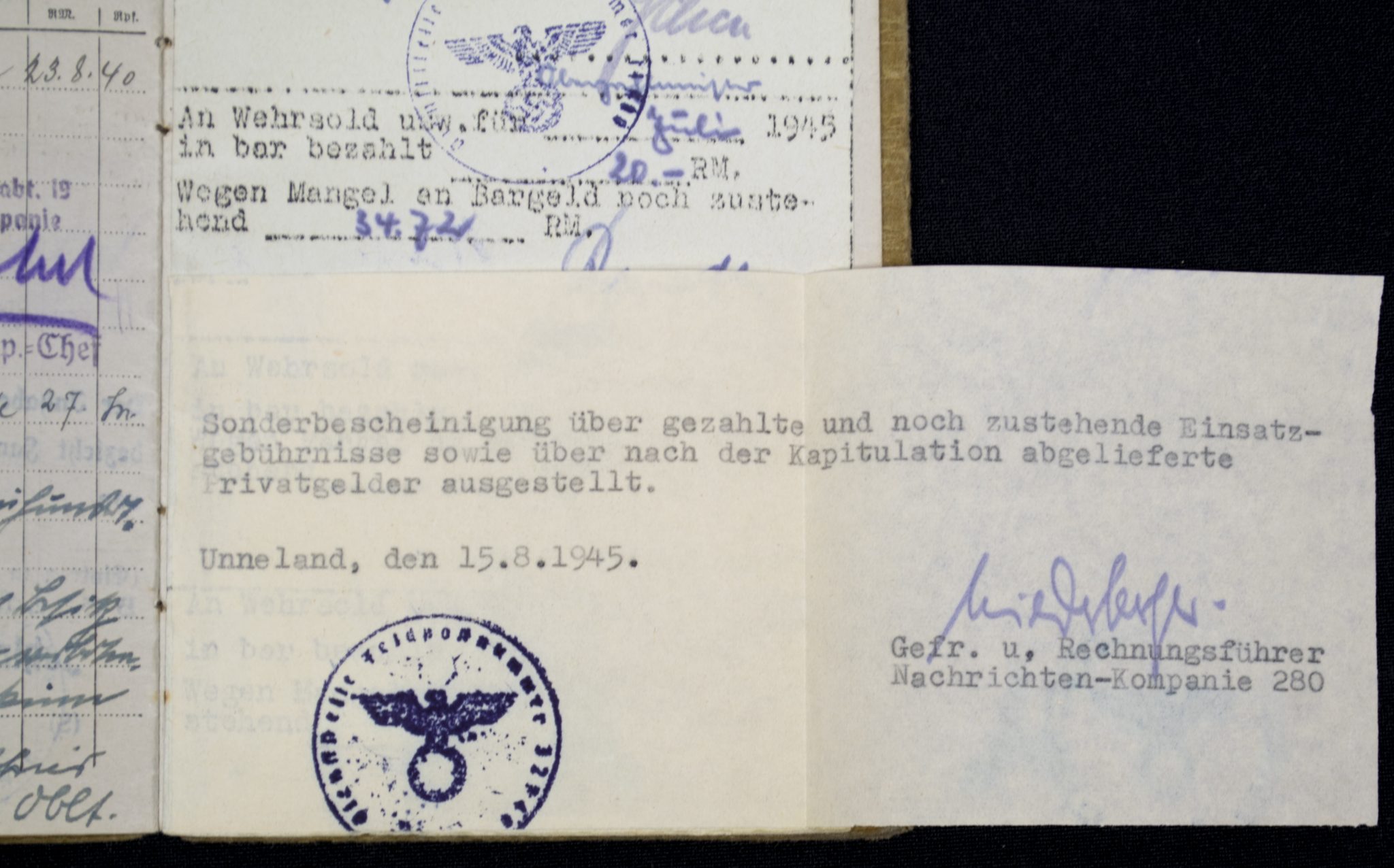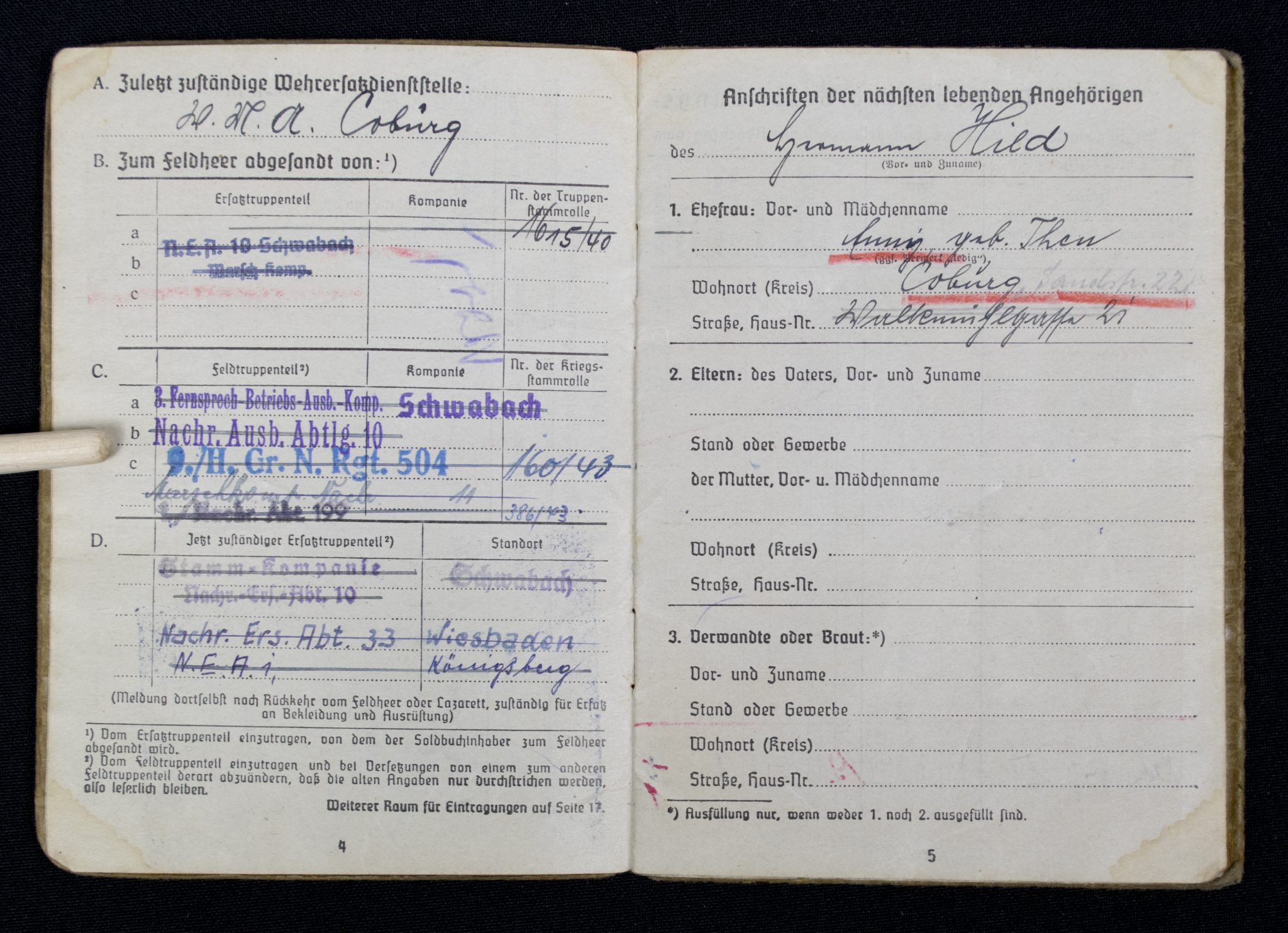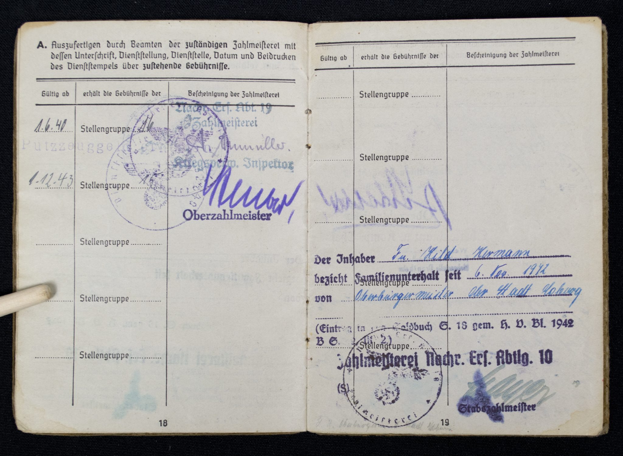 (Soldbuch) Nachrichten Ersatzabteilung. 19 (1940).