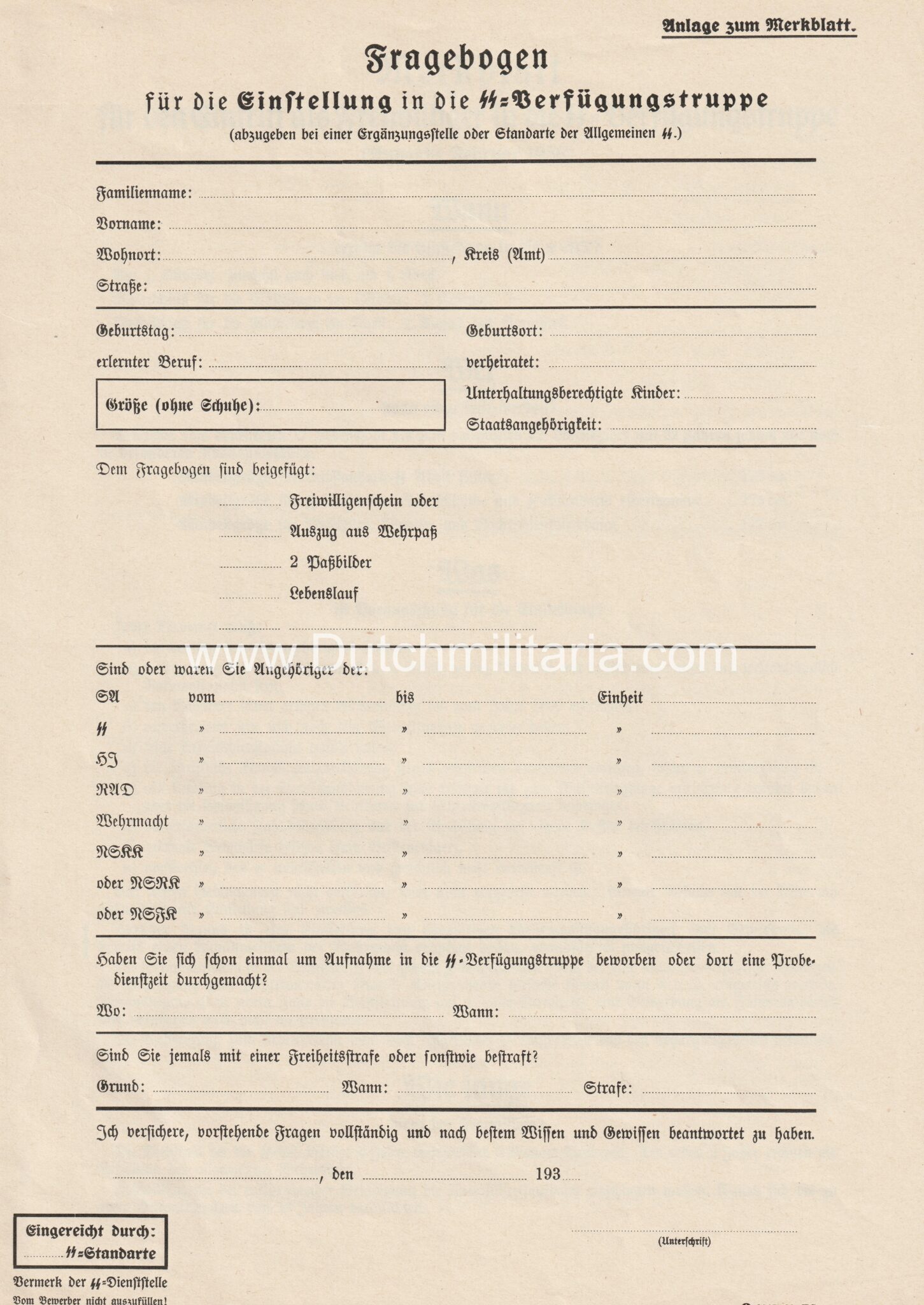 (SS recruitment form) Fragebogen für die Einstellung in die SS-Verfügungstruppe.