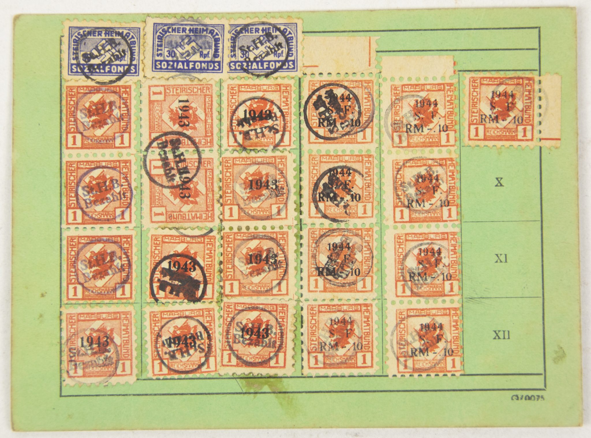 These are hard to find and much rarer as the regular pink colored NSDAP membership cards.
